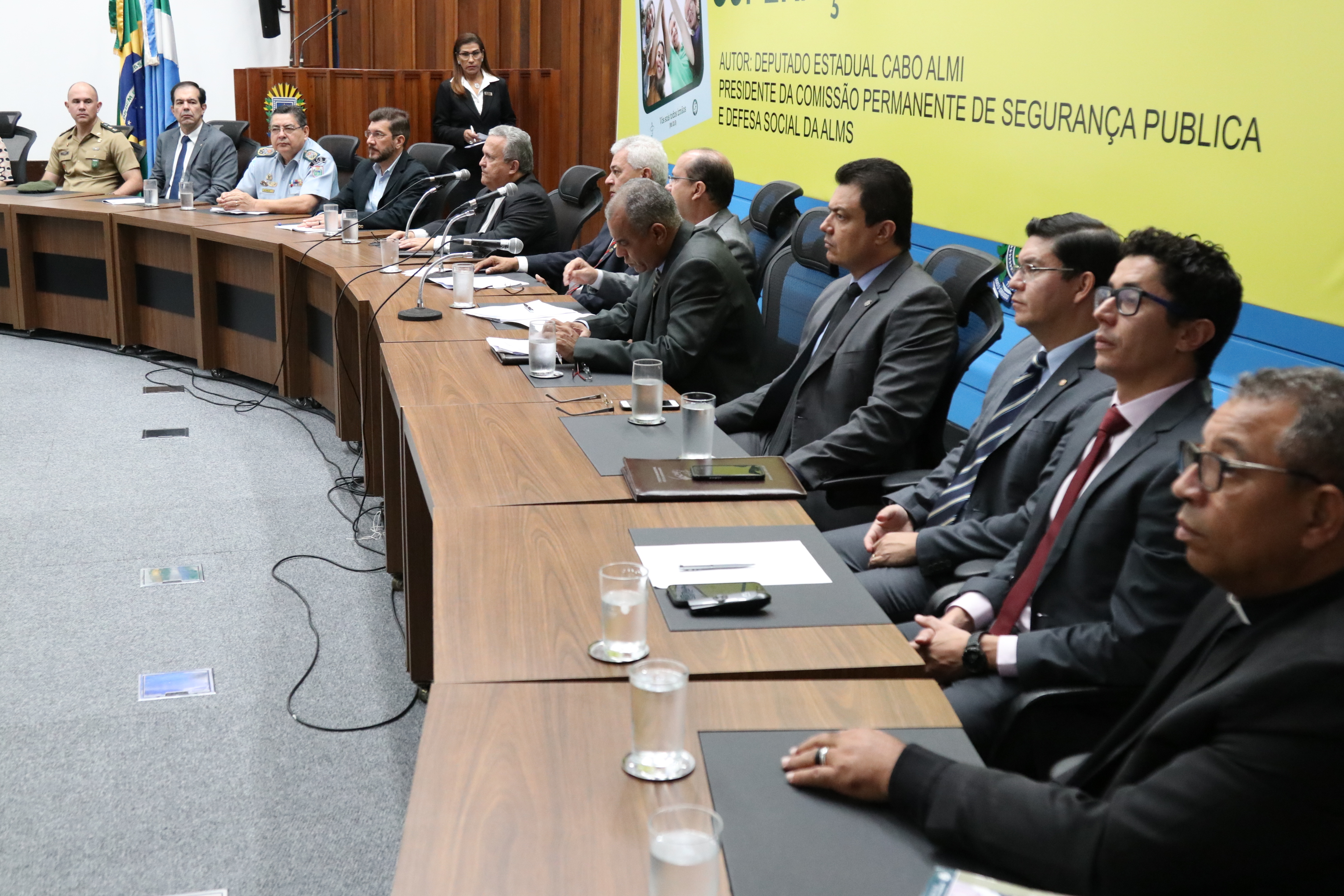 A Audiência Pública foi promovida pelo Presidente da Comissão Permanente de Segurança Pública e de Defesa Social, Deputado Estadual Cabo Almi, em conjunto com o Arcebispo da Arquidiocese de Campo Grande, Dom Dimas Lara Barbosa, que contou com a presença de várias autoridades dentre elas o Deputado Estadual Antônio Carlos Barbosa – Barbosinha, o comandante do Batalhão de Trânsito BPMTran, tenente-coronel PM Franco Alan da Silva Amorim, o Presidente da Associação dos Oficiais da PMMS, coronel PM Alírio Vilassanti, o sub-comadante do Comando de Policiamento Metropolitano – CPM, tenente-coronel Ademir de Oliveira e o Superintendente Regional da Polícia Rodoviária Federal, Luiz Alexandre Gomes da Silva.