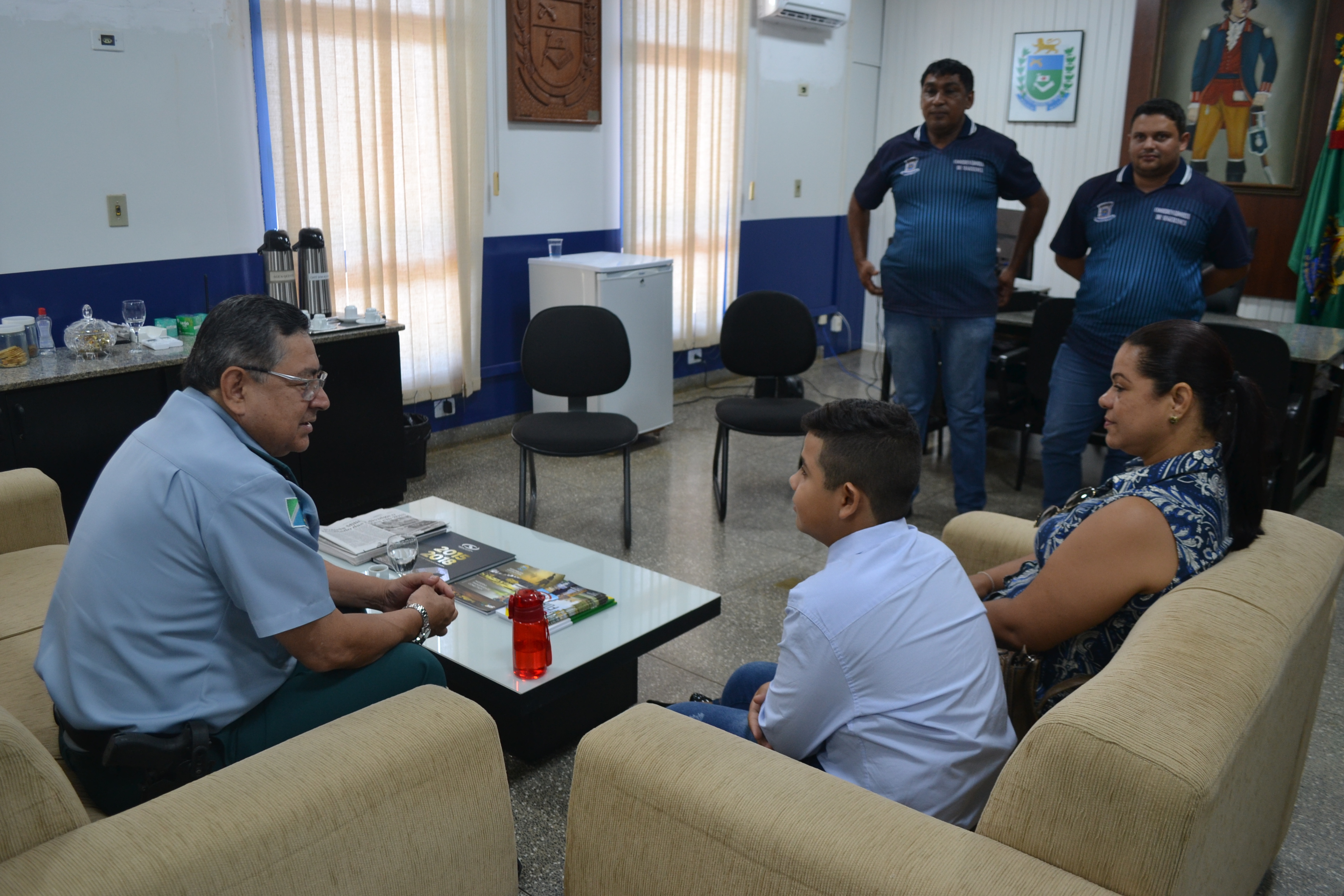Campo Grande (MS) – Na manhã dessa quinta-feira (17), o Comandante-Geral da PMMS, Coronel PM Waldir Ribeiro Acosta recebeu a mãe Shirlei Lima de Amaral e seu filho Edson Otavio de 12 anos que tinha o sonho de conhecer o Quartel do Comando Geral e seu Comandante. Na visita, ele conheceu a unidade e um pouco mais da rotina policial.