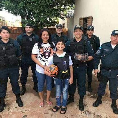 Edson já conheceu outras unidades da PM, como o Batalhão de Operações Policiais Especiais e em seu aniversário recebeu a visita da Força Tática do 10º Batalhão de Polícia Militar.