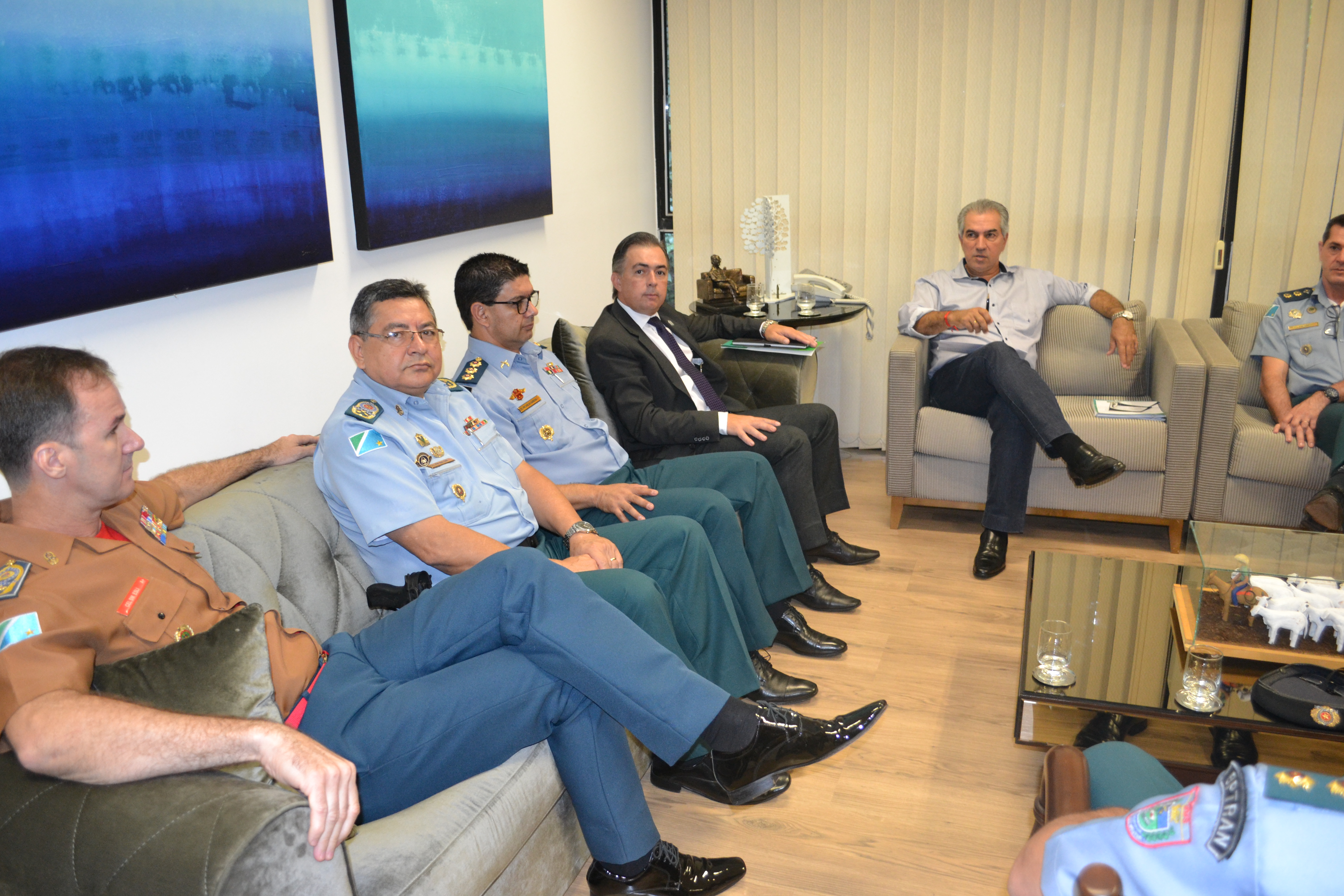 Campo Grande (MS) – O Governador do Estado de Mato Grosso do Sul, Reinaldo Azambuja, o Secretário de Estado de Justiça e Segurança Pública, Antonio Carlos Videira, e o Comandante Geral da Polícia Militar, Coronel PM Waldir Ribeiro Acosta parabenizaram os quatro oficiais superiores da corporação que foram promovidos ao último posto da carreira de oficial.