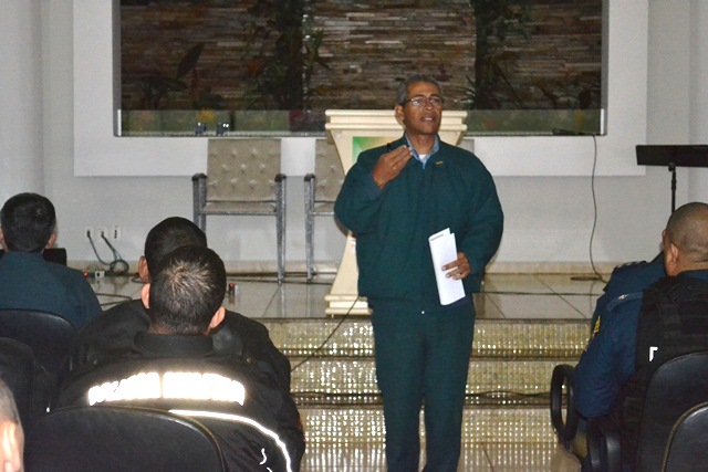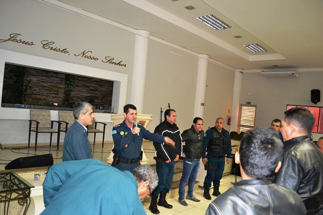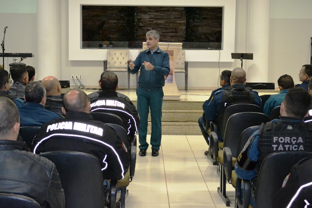 Campo Grande (MS) – O Comandante-Geral da PMMS, Coronel Waldir Ribeiro Acosta, juntamente com o Chefe do Estado Maior Geral da Polícia Militar de Mato Grosso do Sul, coronel Paulo Rogério de Carvalho Silva, continuando o projeto iniciado na primeira quinzena de maio, que tem como objetivo divulgar os trabalhos desenvolvidos por cada uma das cinco seções administrativas do Estado Maior Geral conversou na manhã de hoje (18/07), com o efetivo do 9º Batalhão de Polícia Militar na Igreja Batista Coronel Antonino, localizado na rua Presidente Dutra, bairro Cel. Antonino.