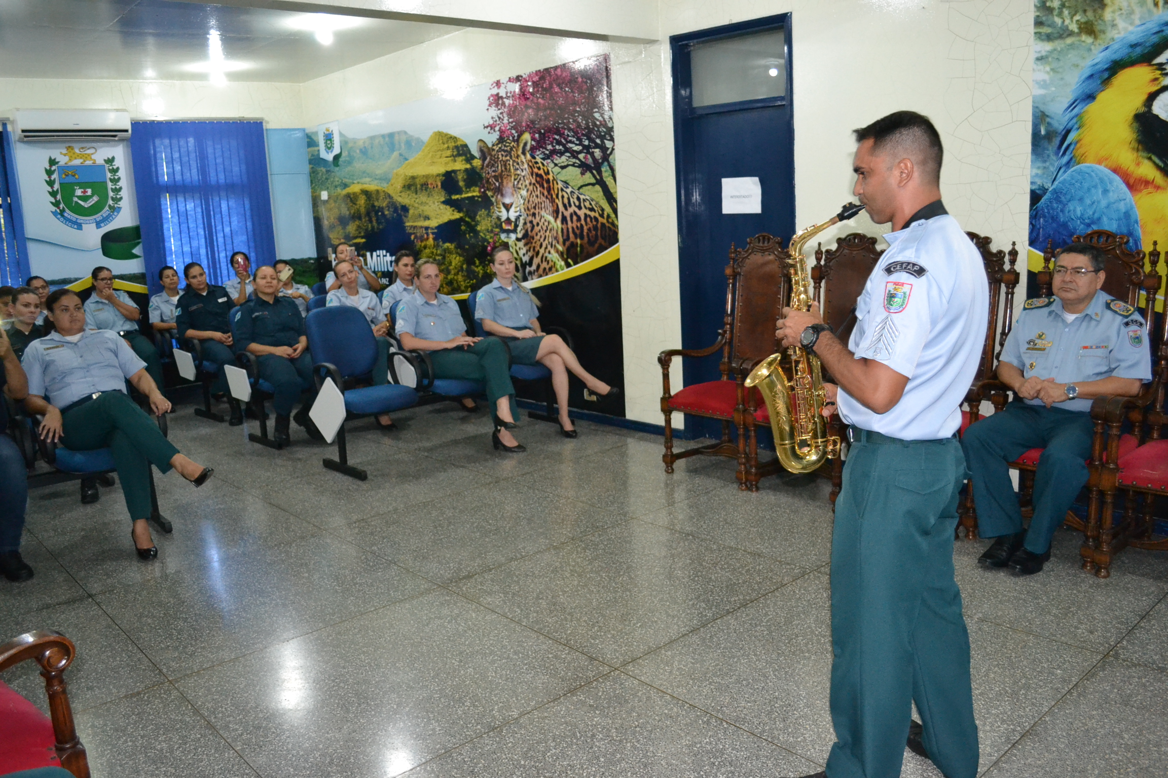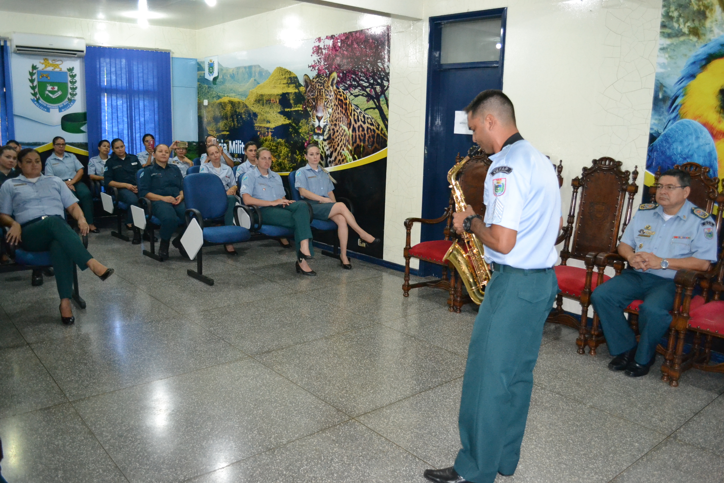 A homenagem contou com participação do sargento musico Marcelo dos Santos, que abrilhantou tocando saxofone para celebrar o dia Internacional da Mulher.