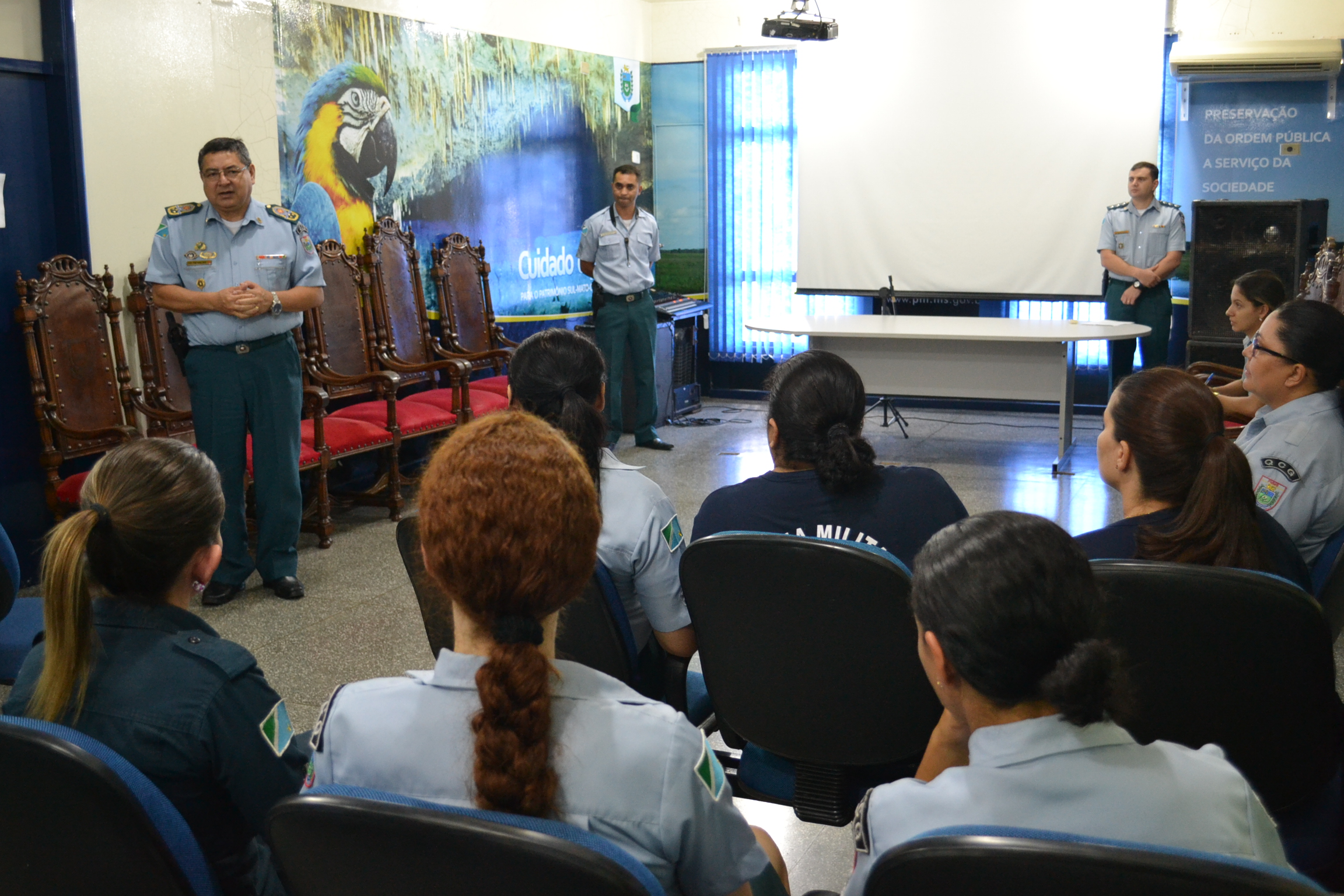 Campo Grande (MS) – O Comandante-Geral da Polícia Militar do Estado de Mato Grosso do Sul, coronel Waldir Ribeiro Acosta, reuniu no final da manhã de hoje (08/03) com efetivo feminino do Comando Geral da PMMS, para prestar homenagem referente ao dia Internacional da Mulher.