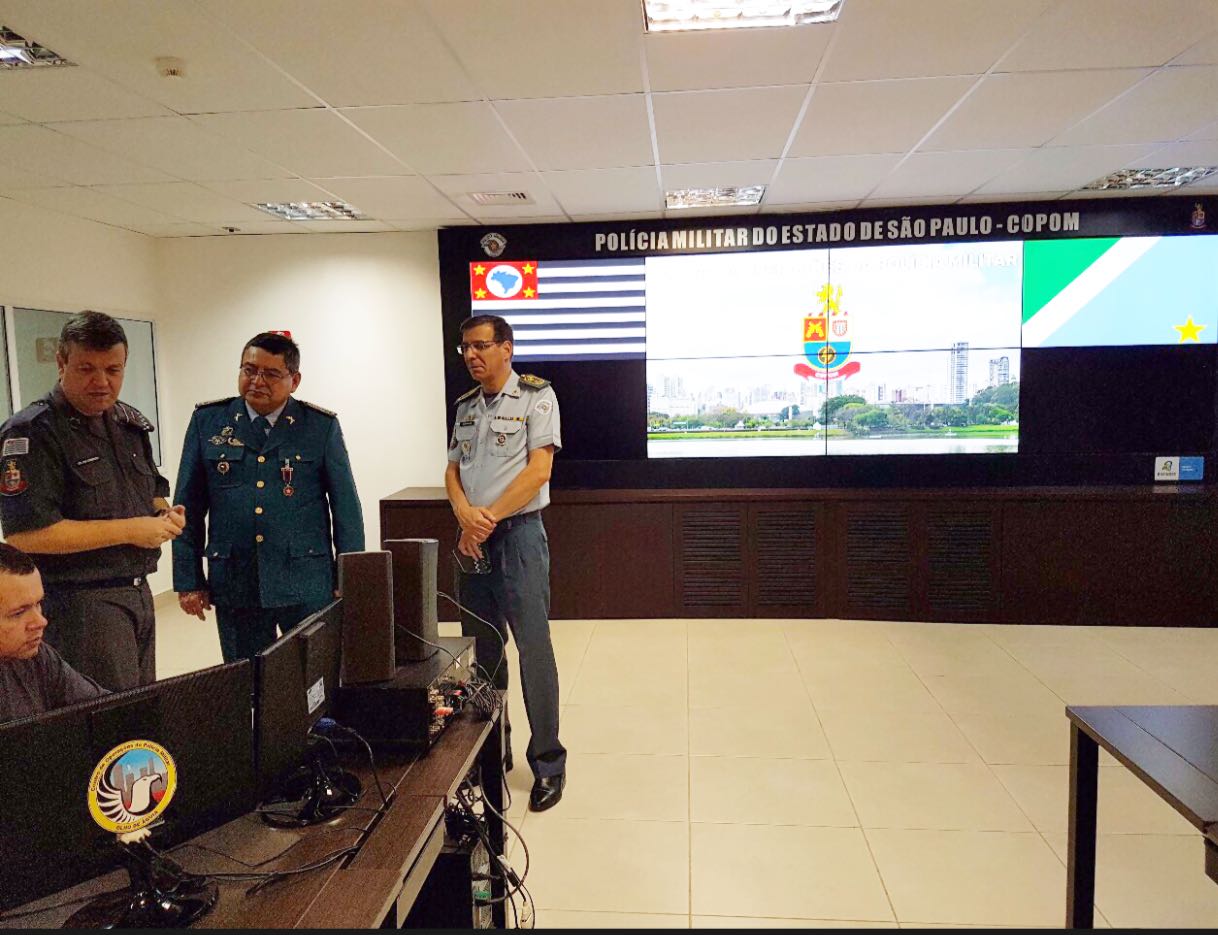 Na sequência, visitaram o Comando de Operações Especiais (COE), onde foi realizada uma oficina prática de demonstração dos novos monóculos de visão noturna. O coronel Waldir testou os equipamentos em simulação de rastreamento em matas e florestas. A equipe também visitou o COPOM (Centro de Operações da Polícia Militar) e o Gabinete de Crise.