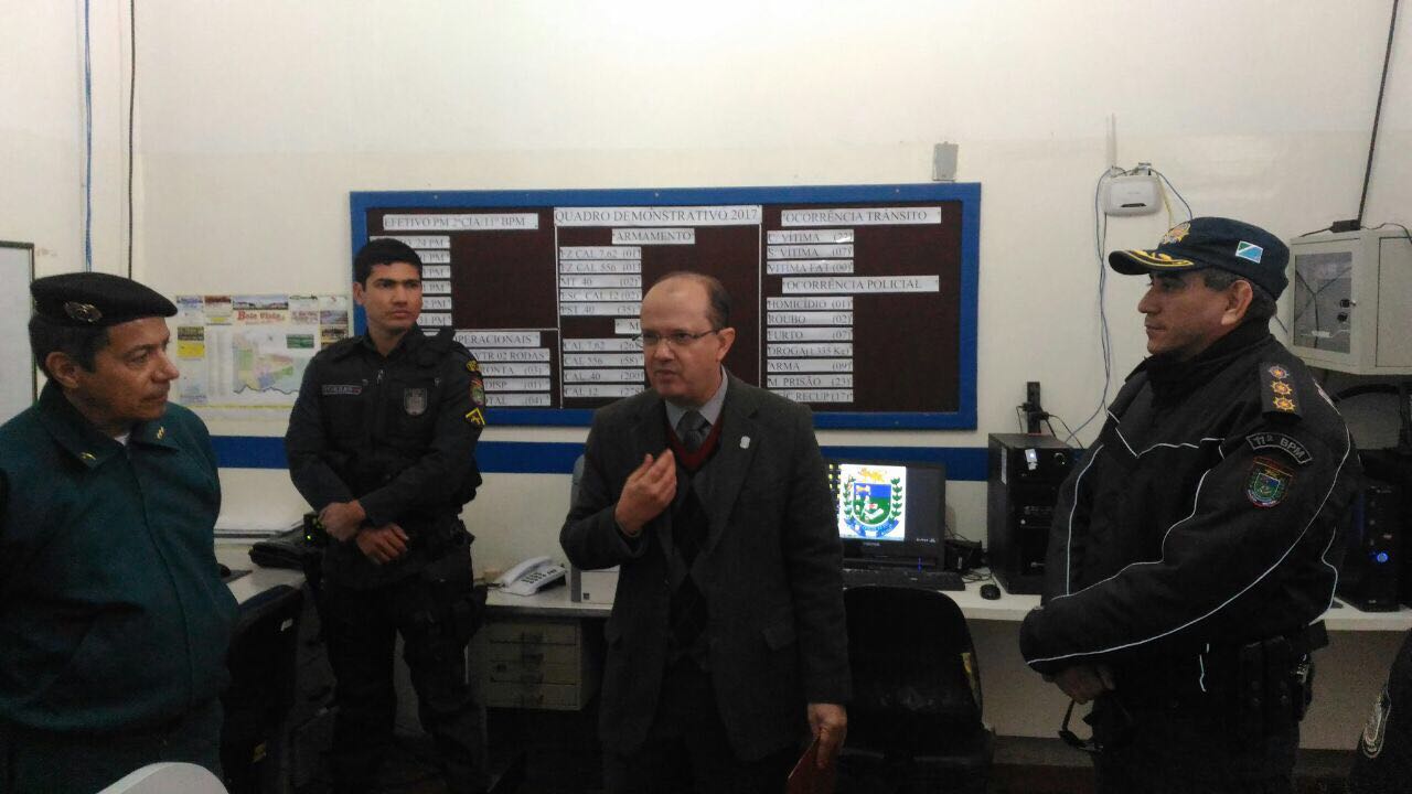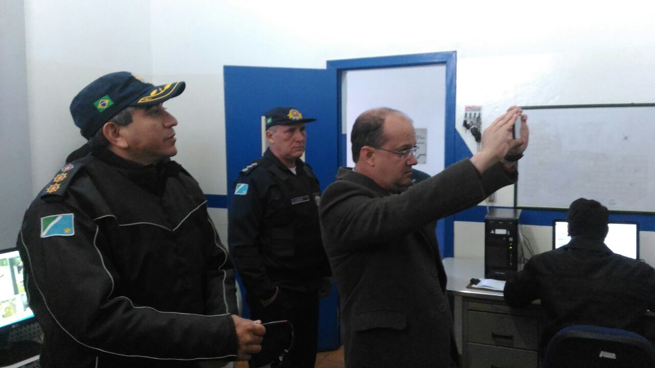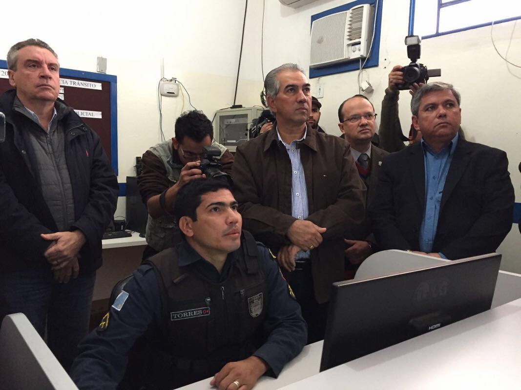 Jardim (MS) – Na manhã desta quinta-feira (20), o Governador do Estado, Reinaldo Azambuja, visitou o munícipio de Bela Vista, por ocasião de seu aniversário de 117 anos de fundação. Acompanhado do Secretário de Estado de Justiça e Segurança Pública, Deputado José Carlos Barbosa, o Governador visitou o Prédio Histórico do Quartel da Polícia Militar, onde formalizou a inauguração do Sistema de Vídeo Monitoramento.
