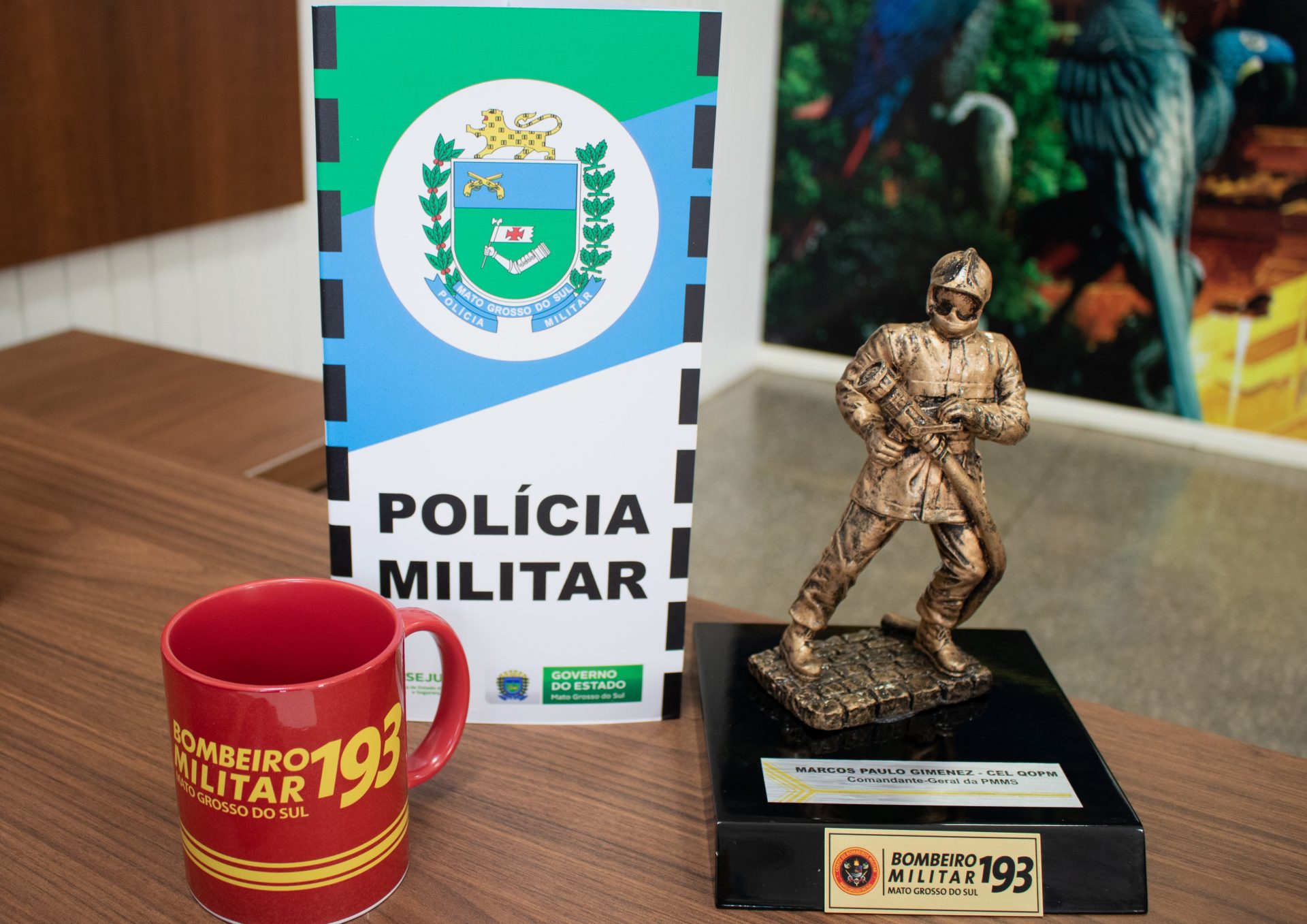 O novo Comandante-Geral da PMMS foi presenteado com uma lembrança do Comandante do CBM, que no ensejo, o parabenizou e desejou sucesso em sua missão a frente da Instituição.