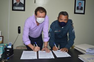 Participaram da Assinatura do Convênio o  1º Secretário, vereador Helder Carneiro, o Prefeito Municipal Dalmy Crisóstomo da Silva e o Delegado Fernando Ferreira Dantas.