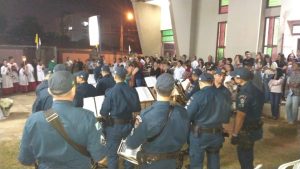 O Corpo Musical da PM participou de evento junto à comunidade do Bairro Tiradentes, na cidade de Campo Grande, na data de 28 de julho, domingo. Os policiais militares apresentaram várias canções para o público que estava presente no espaço da Paróquia Senhor Bom Jesus.