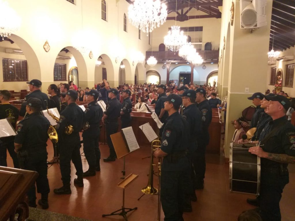Campo Grande (MS) – No último domingo (30/06), o Corpo Musical da Polícia Militar de Mato Grosso do Sul (PMMS) participou das comemorações da II Festa da Padroeira do Mato Grosso do Sul, que ocorreu no Santuário Estadual Nossa Senhora do Perpétuo Socorro, ocorrido na capital do Estado. No evento religioso, o Corpo Musical entoou o Hino Nacional Brasileiro e mais dois cânticos católicos, emocionando a comunidade local, além de posteriormente participar do encerramento das comemorações com a Tradicional Festa Junina.