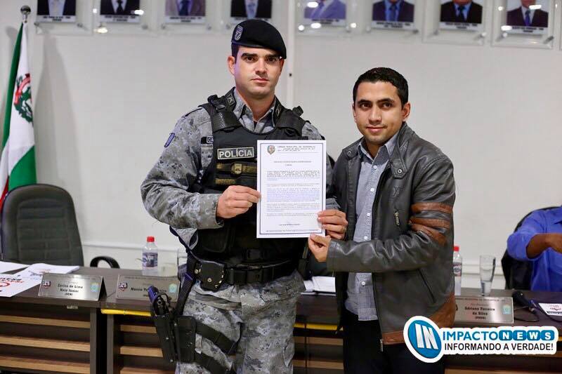 A Moção de nº 004/2017 foi assinada em novembro daquele ano pelo atual Presidente da Câmara, Vereador Márcio Teles. ”Não possível a entrega desta moção no ano passado e nós não poderíamos deixar de homenagear os nossos valorosos policiais da Força Tática que tem feito um grande trabalho no combate ao crime em nossa cidade e em toda a região. Na semana passada, mais uma boca de fumo foi fechada. Esse é o resultado de um trabalho em conjunto que visa diminuir os índices de criminalidade promovendo a segurança e a tranquilidade que a nossa população almeja!” destacou Márcio aos jornalista presentes na sessão.