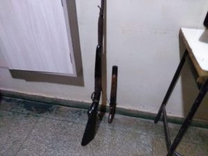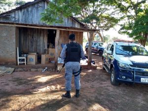 No local a equipe encontrou um homem de 48 anos que se apresentou como sendo o responsável pelo imóvel, e que após as diligências localizaram a carga de cigarros dentro de uma casa de madeira, porém não localizaram os veículos de passeio. Nas buscas, os Policias Militares encontraram ainda, duas armas de fogo, sendo uma Garrucha de dois canos, calibre 16 e espingarda Cal. 12.
