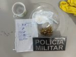 Na outra ação onde após denuncias de trafico de drogas a guarnição policial abordou um homem de 24 anos que estava com objeto suspeito nas mãos. Após a abordagem e checagem no sistema descobriu que o mesmo era foragido da justiça do sistema prisional por descumprimento das medidas impostas judicialmente pelo sistema aberto. Ao revistar a residência foi descoberto no quintal da casa uma embalagem com aproximadamente 26,6 gramas de uma substância branca análoga a cocaína, tentando ser dispensado pela mulher de 20 anos proprietária da casa. Todos os envolvidos foram encaminhados,