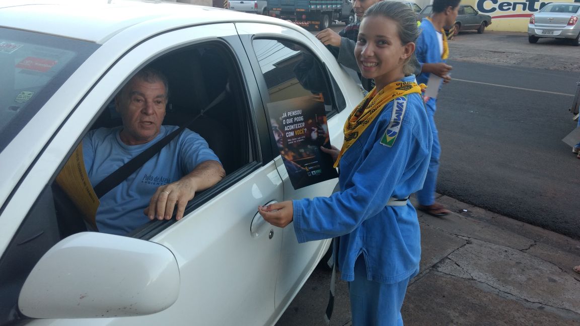 Os alunos do projeto Reação tiveram instruções prévias sobre a proposta, objetivo e ações do movimento e em seguida participaram da blitz educativa que o ocorreu na área central da cidade. Na ação preventiva policiais militares acompanharam os alunos na entrega de panfletos, colagem de adesivos e orientações aos condutores com dicas importantes sobre a segurança no trânsito. O movimento contou ainda com a presença de profissionais do Departamento Municipal de Trânsito e do vice-prefeito de Paranaíba, Nelson Elson César Garcia.