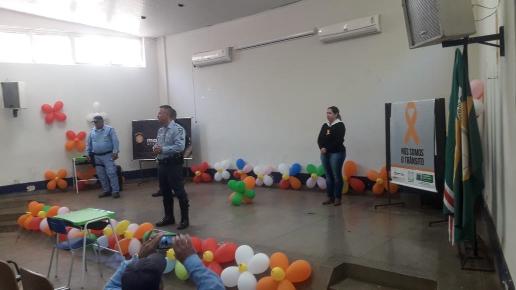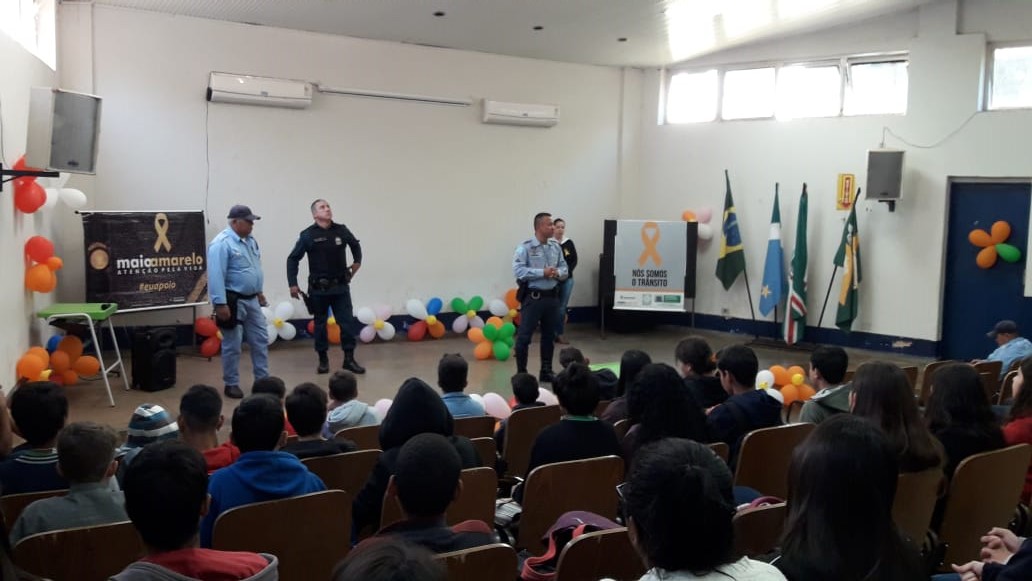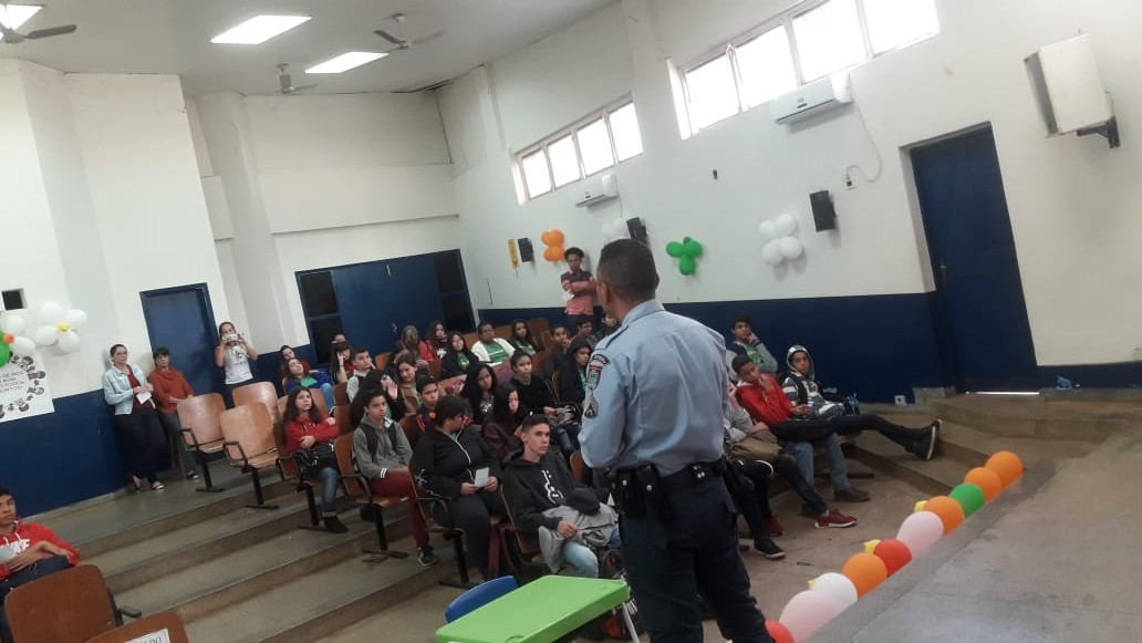 A palestra com o tema “Conscientização e Orientação do Trânsito Local” foi ministrada pelo Sargento PM Marco Antônio Benites (pertencente a PRE) e contou com a colaboração do sargento PM Walter Ferro, do soldado PM Pedro Ricardo Moneiro da Rocha e de agentes do Demutran. Foram contemplados alunos de diversas faixas etárias que receberam informações importantes sobre educação no trânsito e sobre a prevenção dos acidentes. Os alunos demonstraram interesse, participaram com várias perguntas e receberam informações importantes que fomentam a conscientização para que no futuro possam ser condutores éticos e responsáveis.