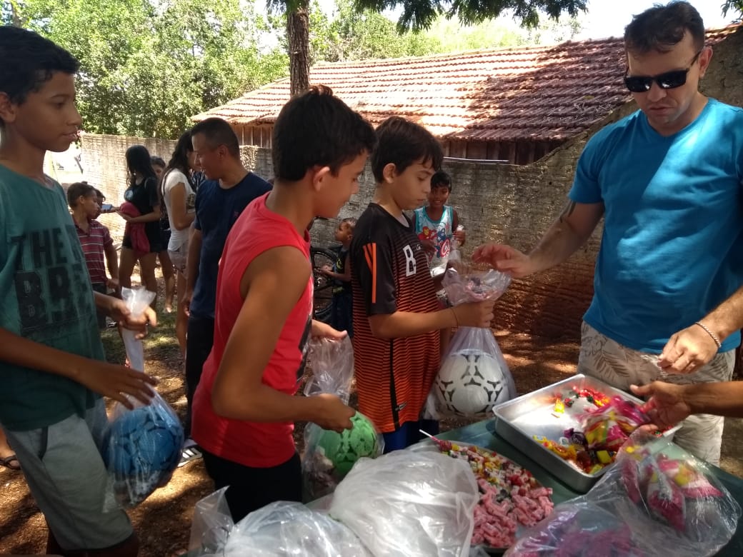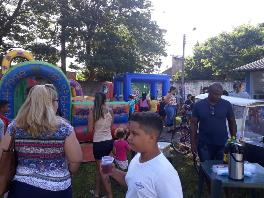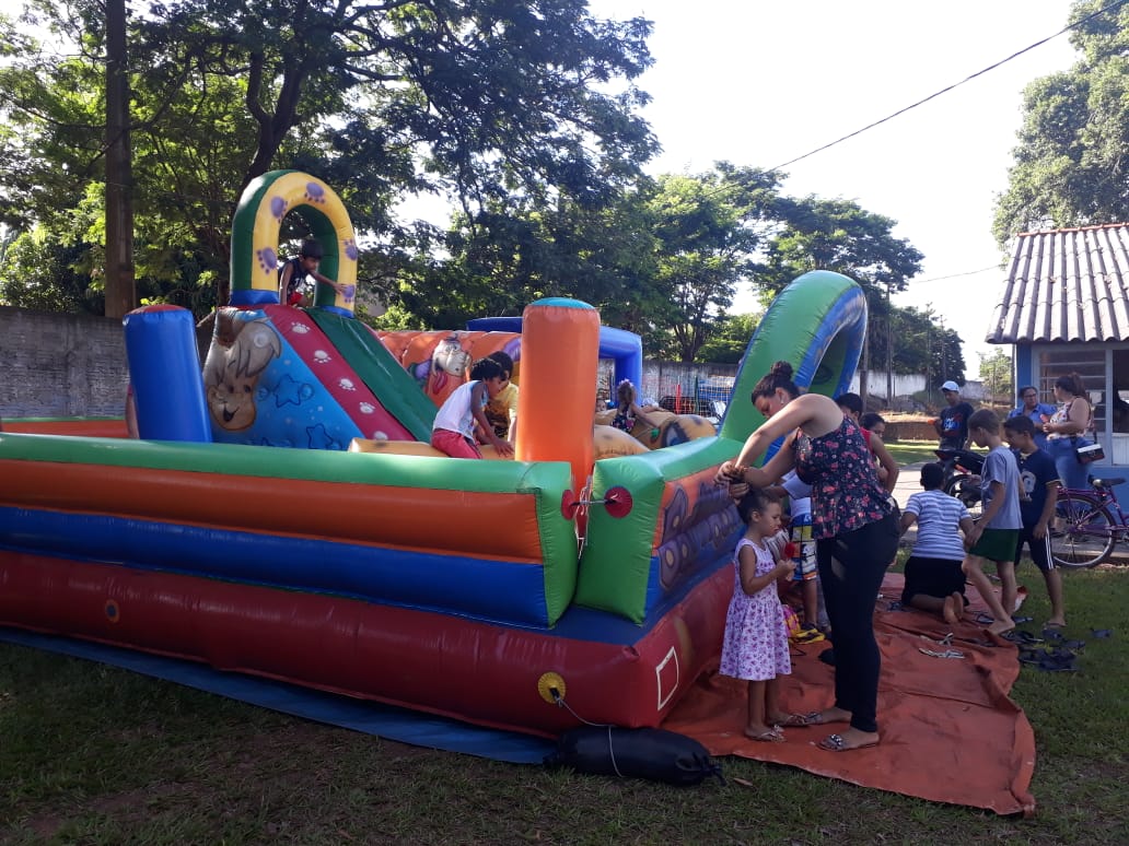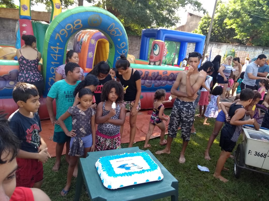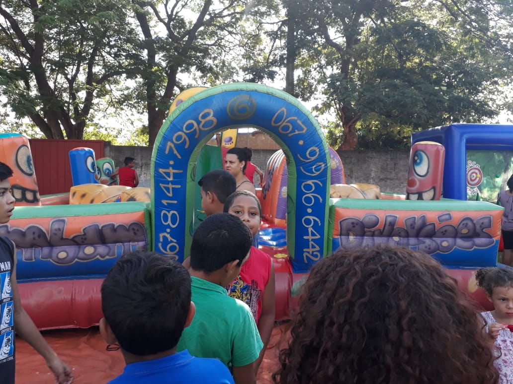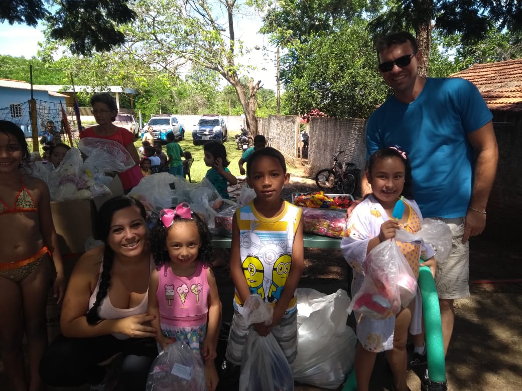 Paranaíba (MS) – Na manhã dessa sexta-feira (21/12), a Polícia Militar de Paranaíba, sede do 13º Batalhão de Polícia Militar – CPA-2, proporcionou um dia de festa para crianças carentes do projeto Reação, projeto Tribo da Luta, filhos de policiais e crianças do bairro Jardim Karina. O evento ocorreu no Clube da ACS, localizado no Jardim Karina ao lado da APAE, e contou com banho de piscina, pula-pulas, brincados infláveis, jogo de bola, comida e presentes de natal. A ação solidária contou com o apoio da ONG Fazer o Bem, Faz Bem.