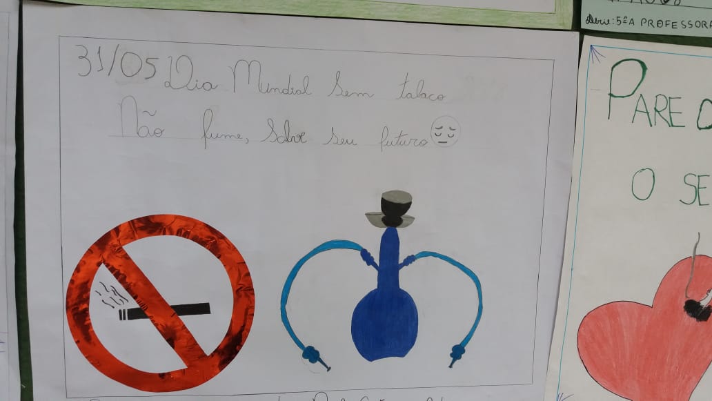 Três Lagoas (MS) – Na manhã de hoje (30/05), o 1º SGT PM Jefferson do 2º Batalhão de Polícia Militar Instrutor do PROERD em conjunto com a Professora Cristiana do 5º ano da Escola Estadual Dom Aquino Corrêa, estimularam os alunos a desenvolverem cartazes de advertência em combate ao fumo de uma forma geral incluindo o narguilé que tem sido uma prática entre os jovens da região.
