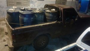 A equipe estava em patrulhamento ostensivo pela estrada vicinal paralela a BR 262 na altura do Km 140 quando avistaram um veículo, FORD F1000 de Água Clara – MS, que transportava de forma irregular 07 galões com óleo diesel, totalizando 1400 litros.