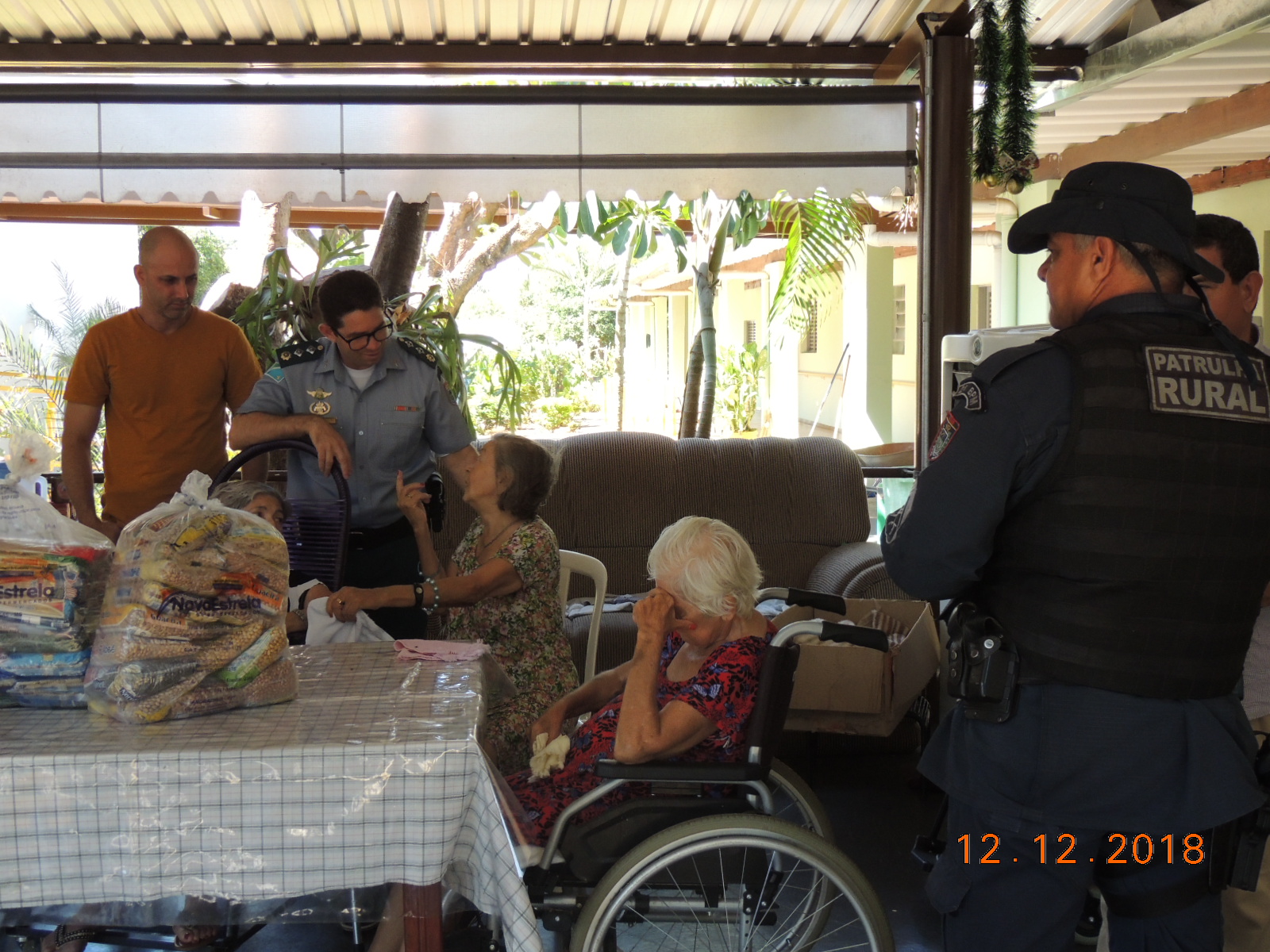 Três Lagoas (MS) – Na manhã de ontem (12), o Comandante do 2° BPM Major Ênio e o Sgt PM Gildo instrutor do projeto Chute Forte entregaram os alimentos arrecadados durante o 2° Torneio do Chute Forte no Lar dos Idosos Euripedes Barsanulpho.