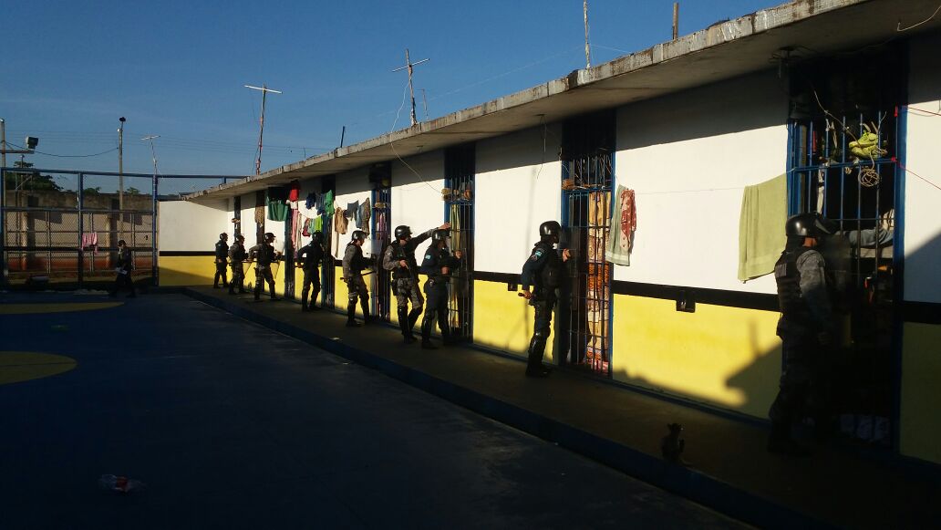 O efetivo de 46 Policiais Militares conduzidos por 03 Oficiais realizaram a extração dos internos de três pavilhões e realizaram buscas nas celas, visando a garantia da segurança de todos os envolvidos.