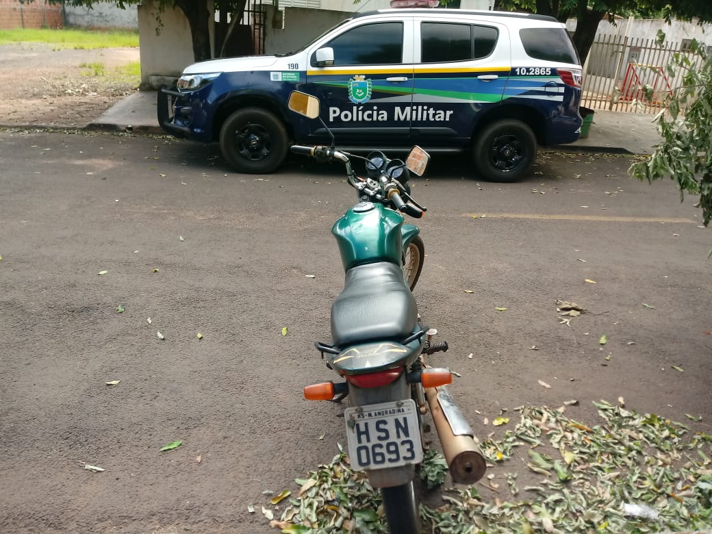 O segundo veículo recuperado trata-se de uma motocicleta Honda CG com placa de Nova Andradina. O proprietário da motocicleta procurou a equipe e relatou que seu veículo havia sido furtado. A guarnição intensificou as rondas e logrou êxito em localizar o veículo no Jd. Acapulco. O veículo foi encaminhado a DP para providências.