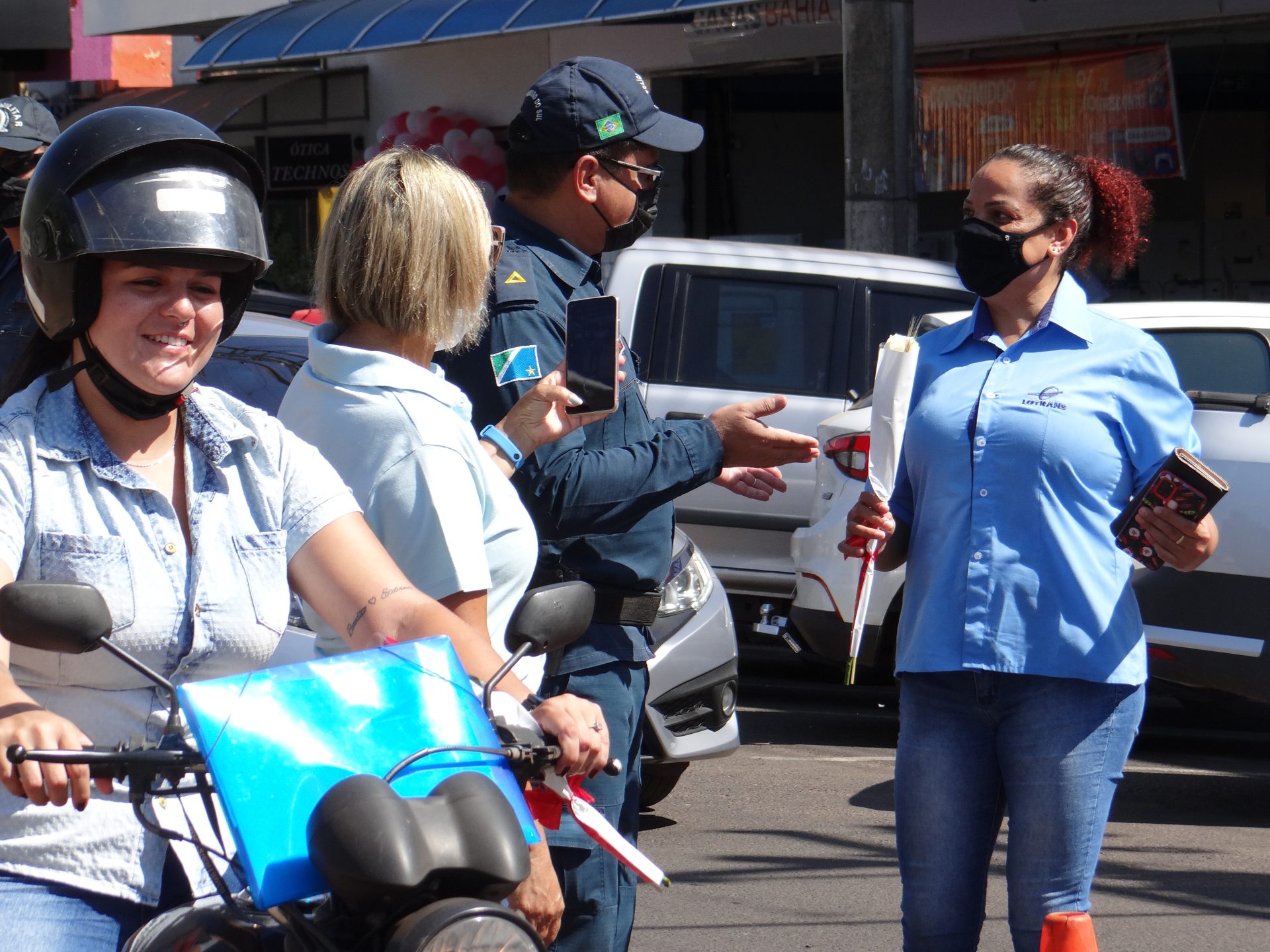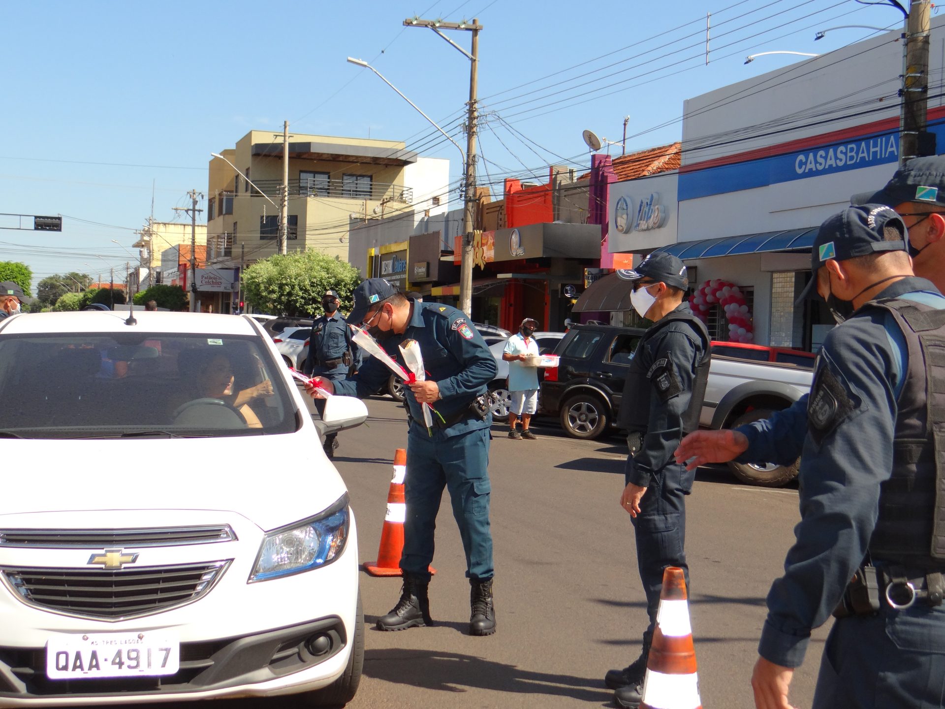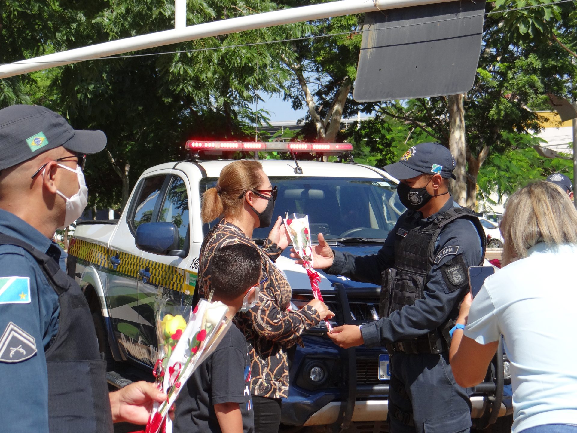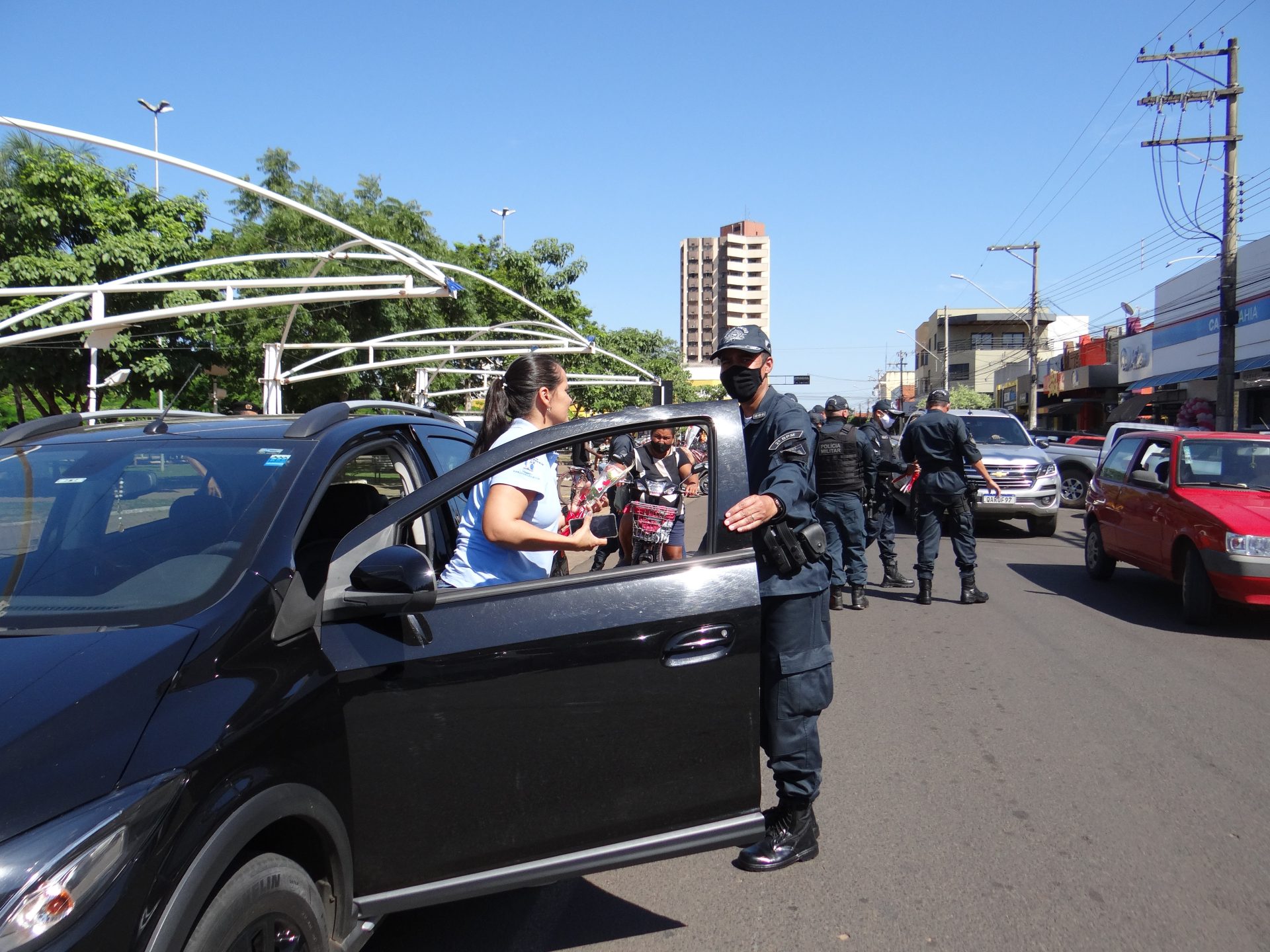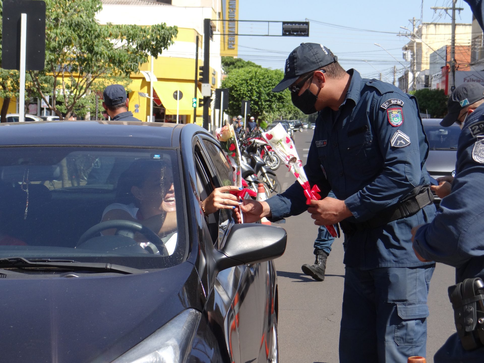 A “blitz” aconteceu na manhã desta terça-feira na Rua Paranaíba, ao lado da praça Ramez Tebet, onde diversos veículos foram parados pelos militares, porém, ao invés de uma abordagem padrão, os policiais entregaram um botão de rosa para as mulheres, além de palavras de carinho, gratidão e respeito.