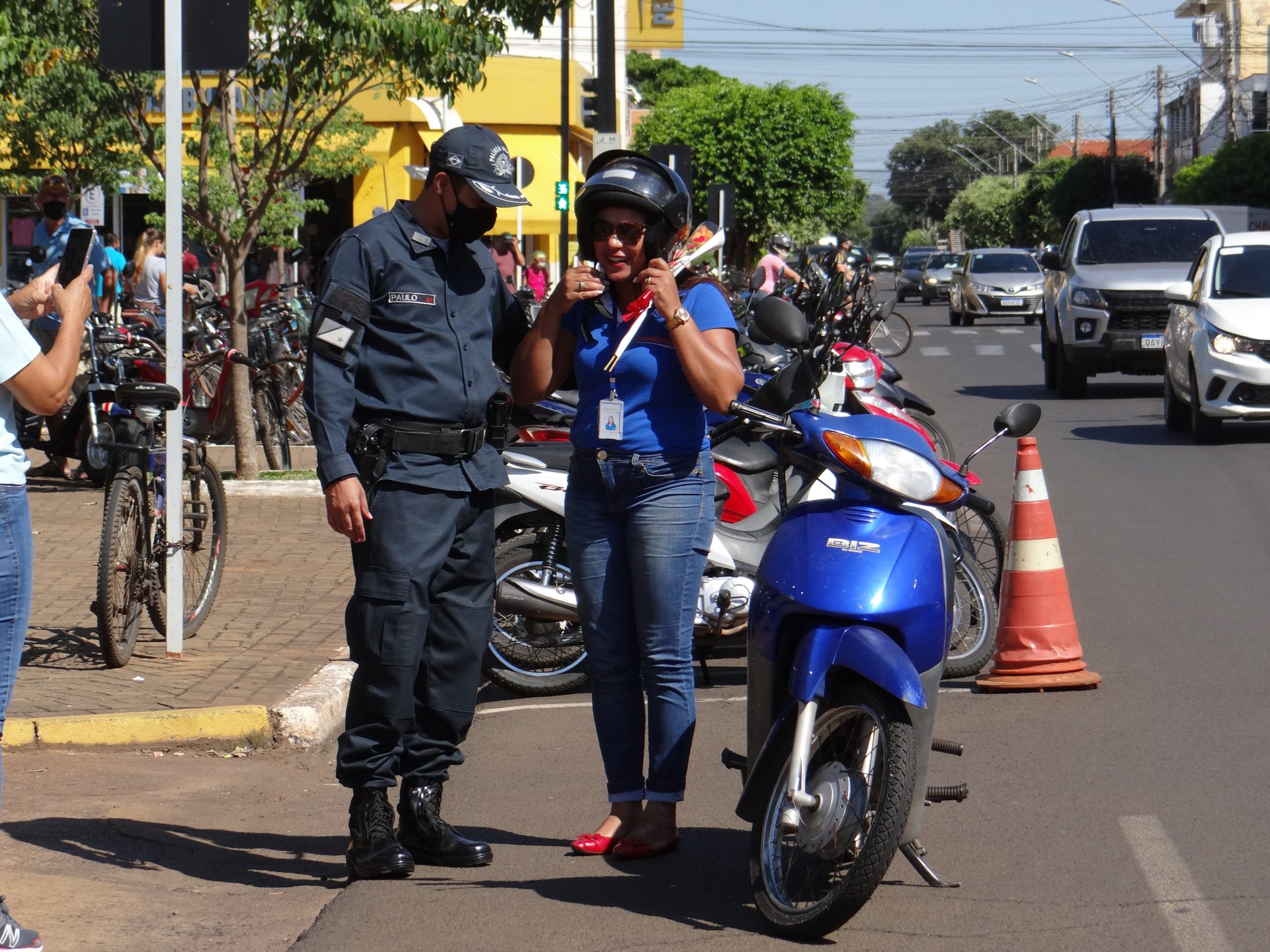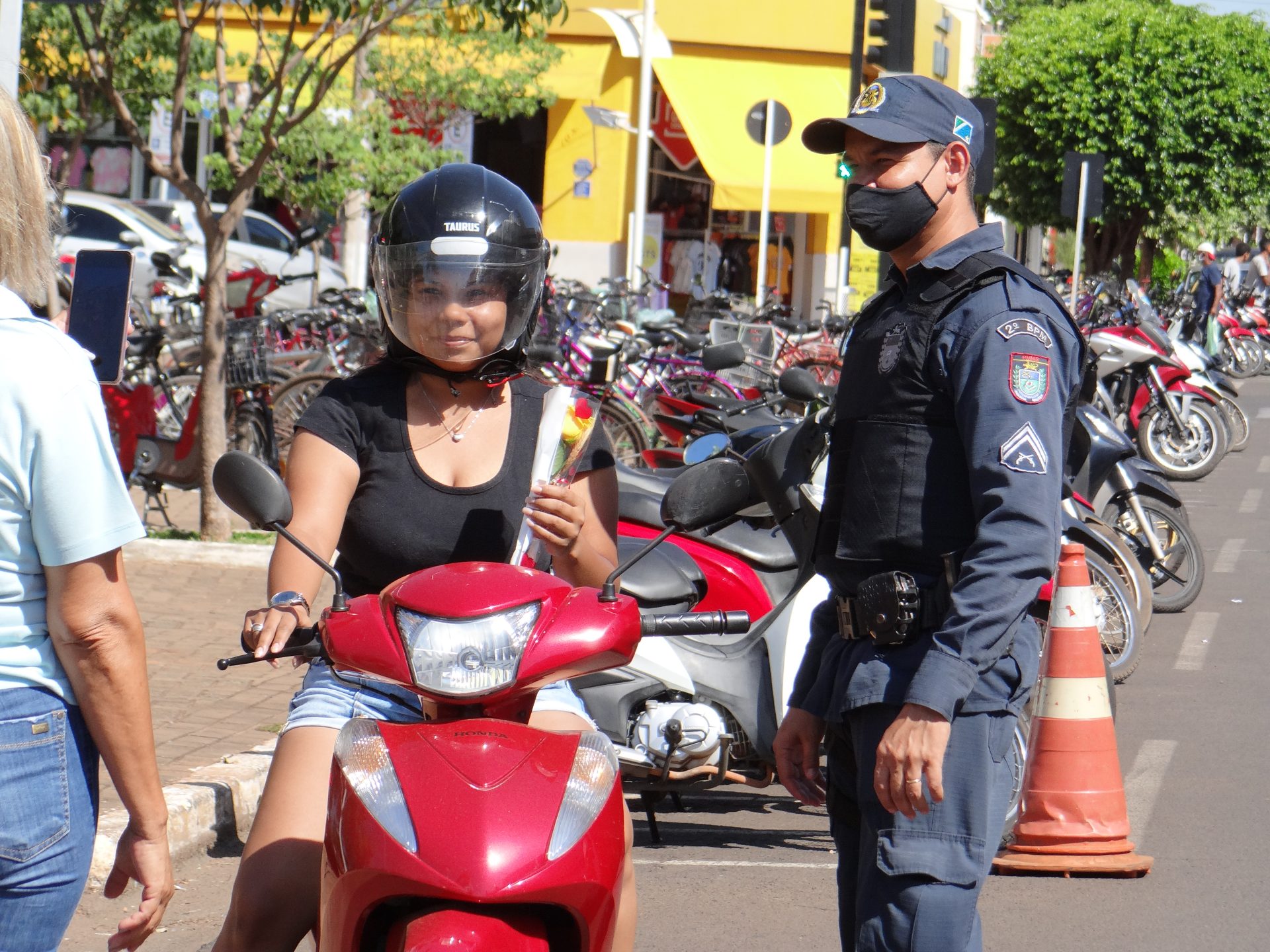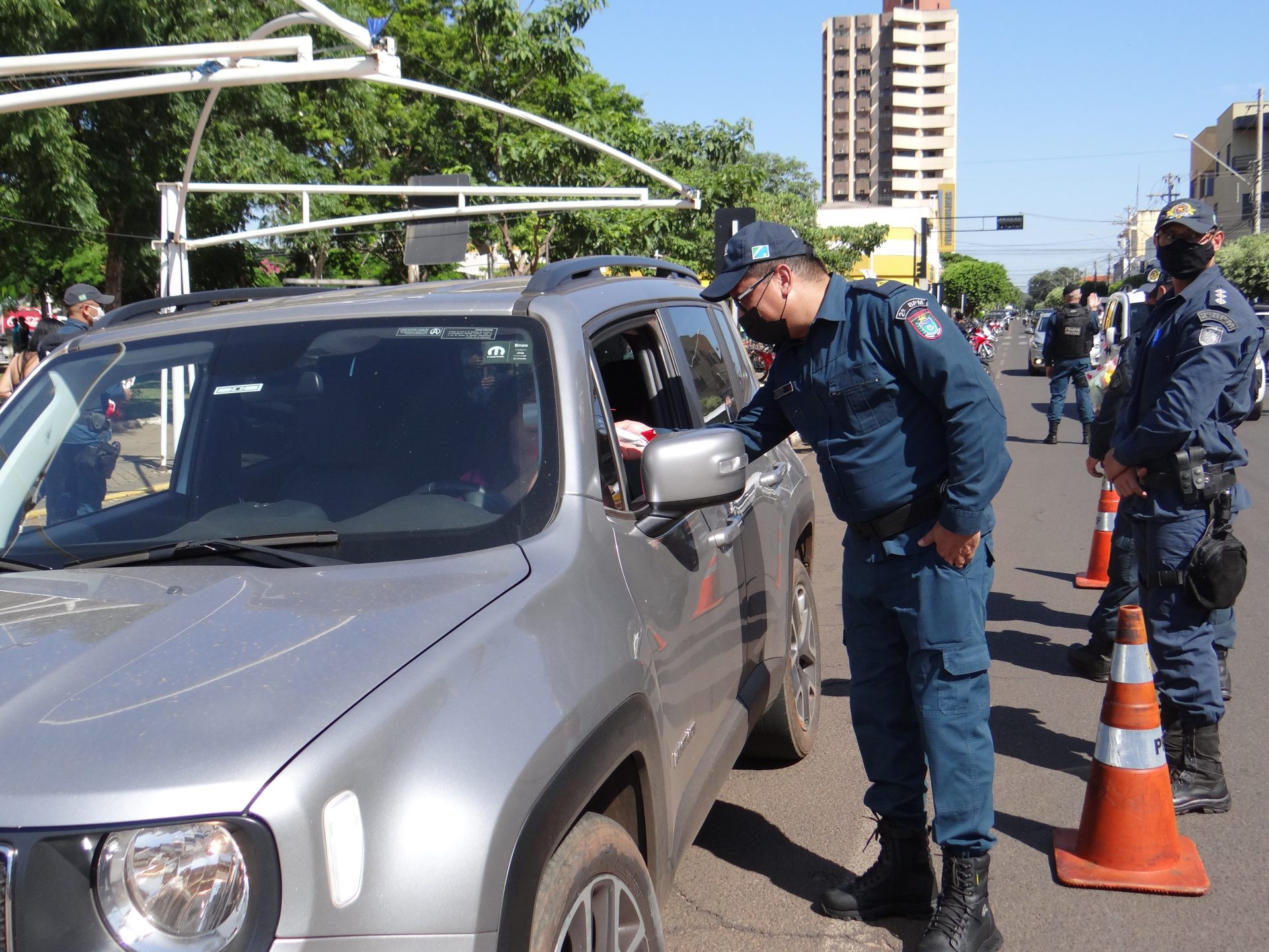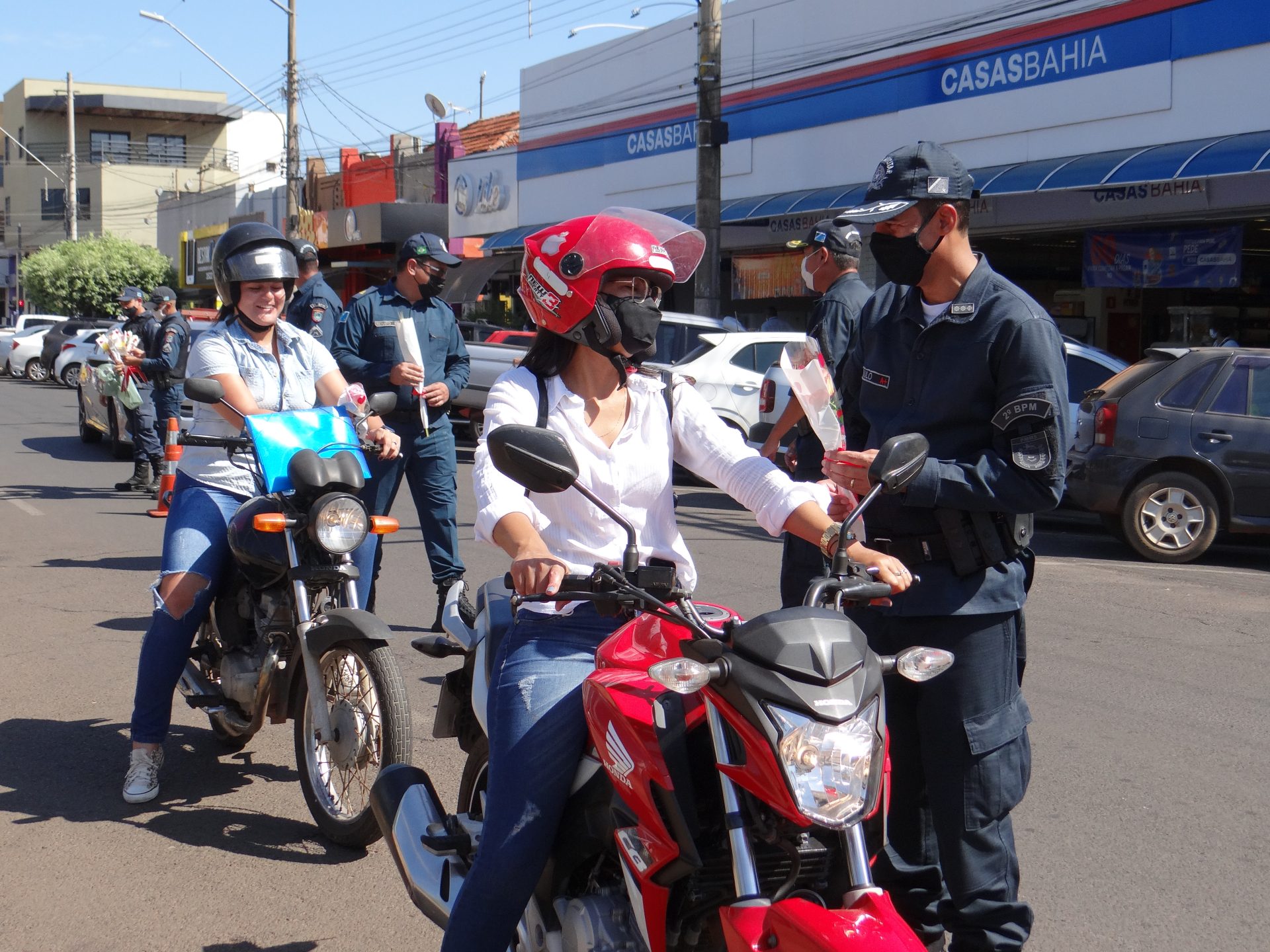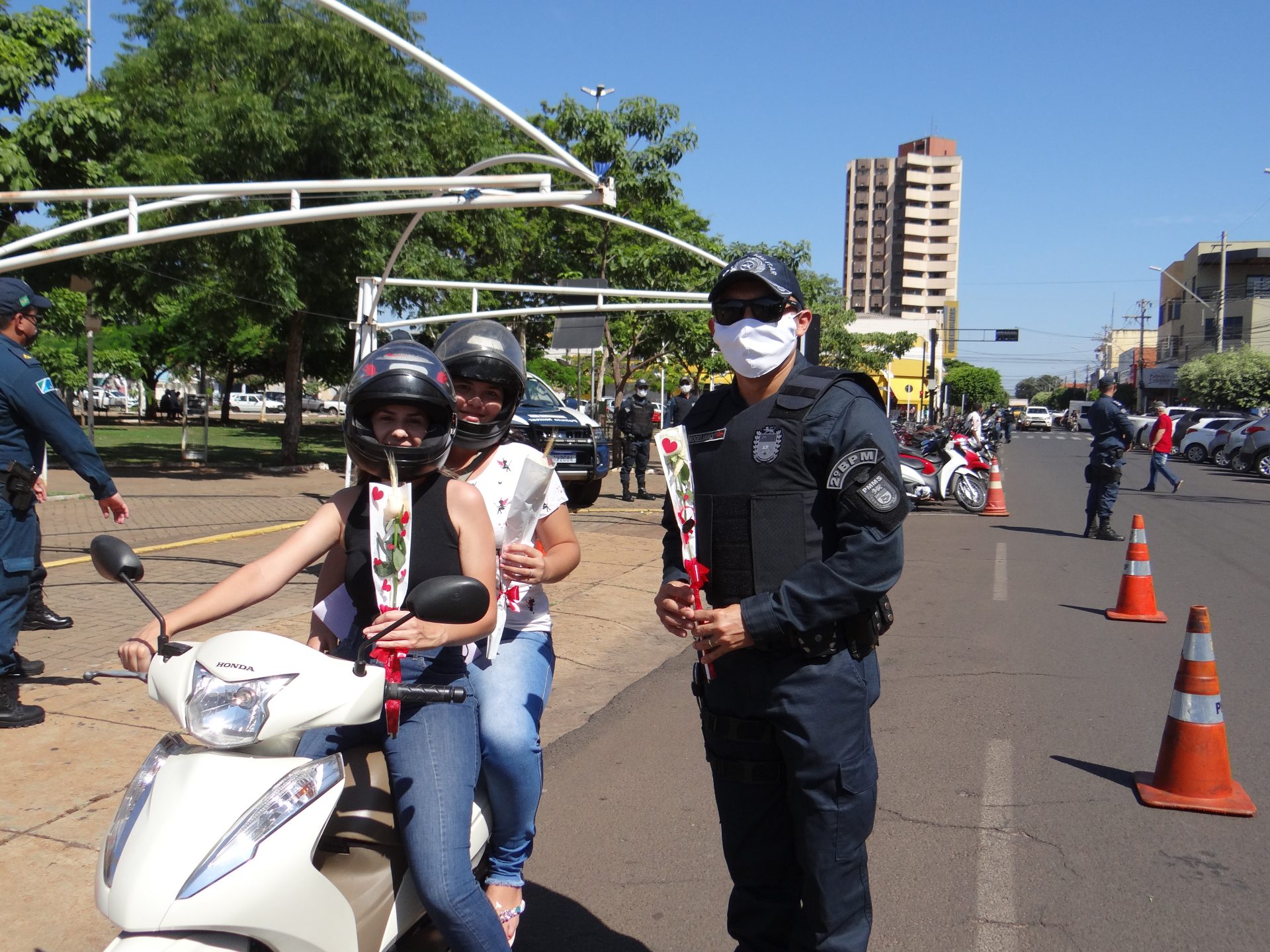 A “blitz” aconteceu na manhã desta terça-feira na Rua Paranaíba, ao lado da praça Ramez Tebet, onde diversos veículos foram parados pelos militares, porém, ao invés de uma abordagem padrão, os policiais entregaram um botão de rosa para as mulheres, além de palavras de carinho, gratidão e respeito.