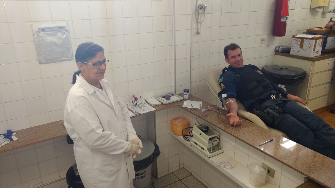 Devido a crescente demanda de sangue e com a aproximação do feriado prolongado, a unidade está precisando urgentemente de repor seus estoques. Policiais militares compareceram ao hemonúcleo e deram uma demonstração de cidadania, contribuindo com doação de sangue. Para doar sangue é preciso estar munido de um documento oficial com foto, pesar mais de 50 kg e não pode estar em jejum. Contribua você também com este simples gesto que pode salvar muitas vidas!