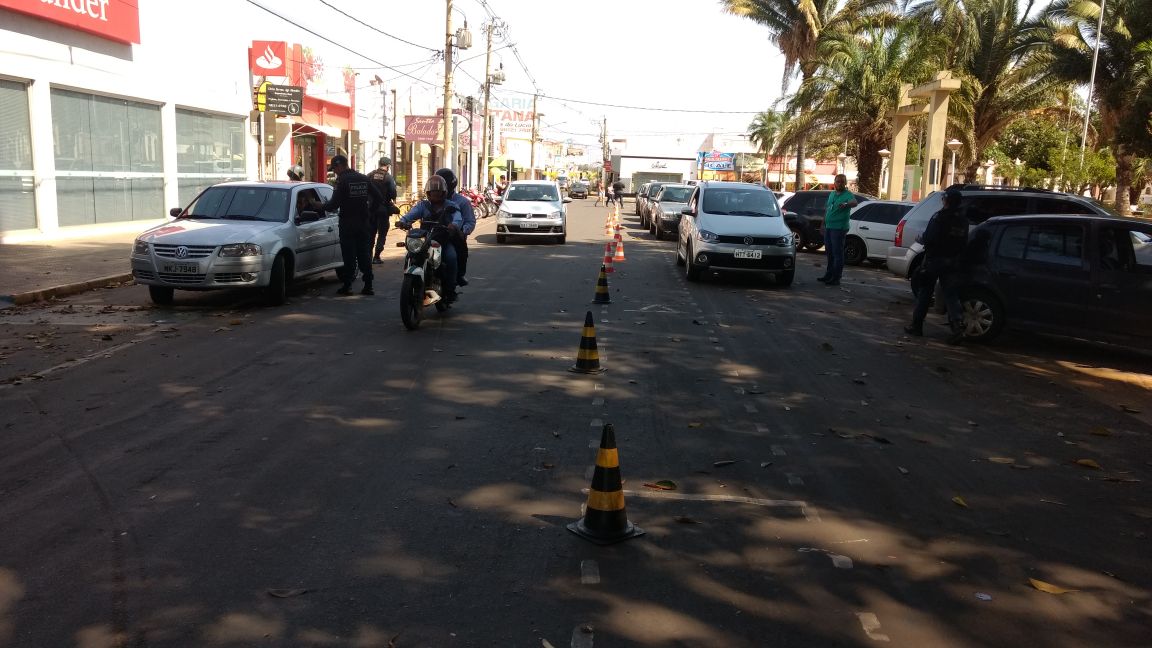 As ações foram realizadas na Rua Coronel Carlos e na Praça da República. Ao todo foram abordados 156 veículos e 161 pessoas. Foram confeccionados diversos autos de infração de trânsito.