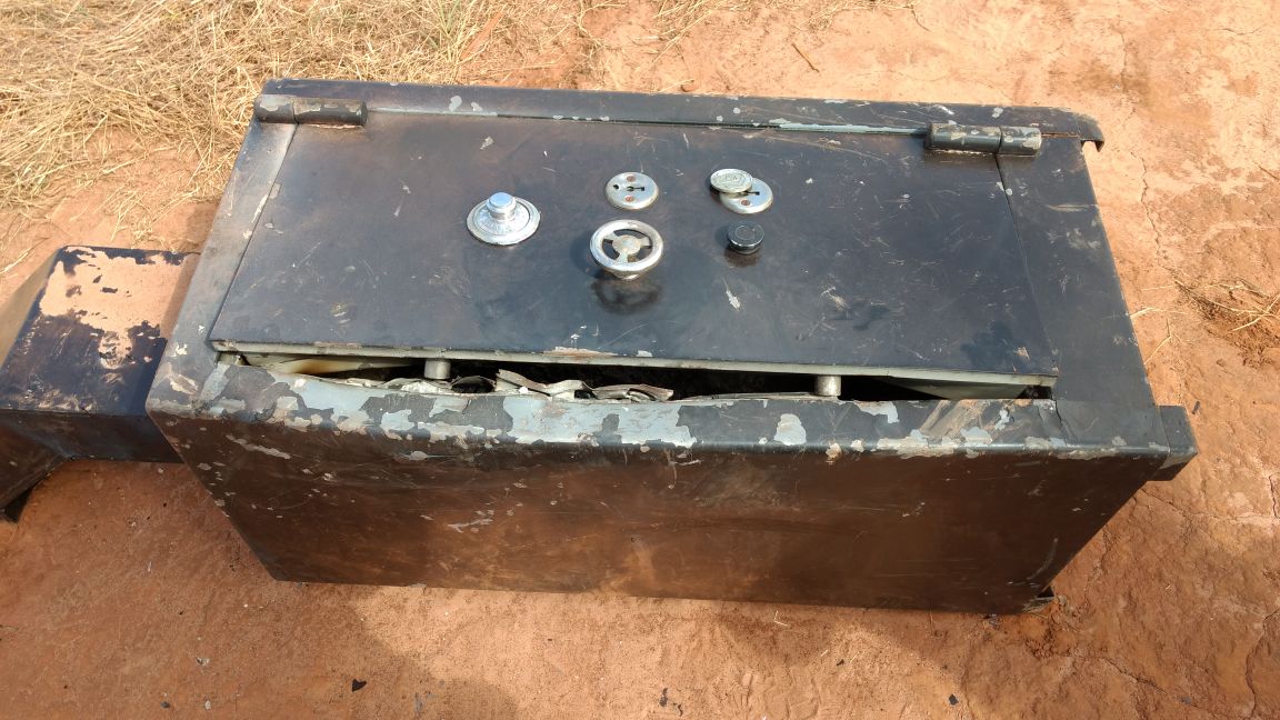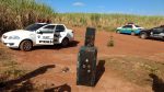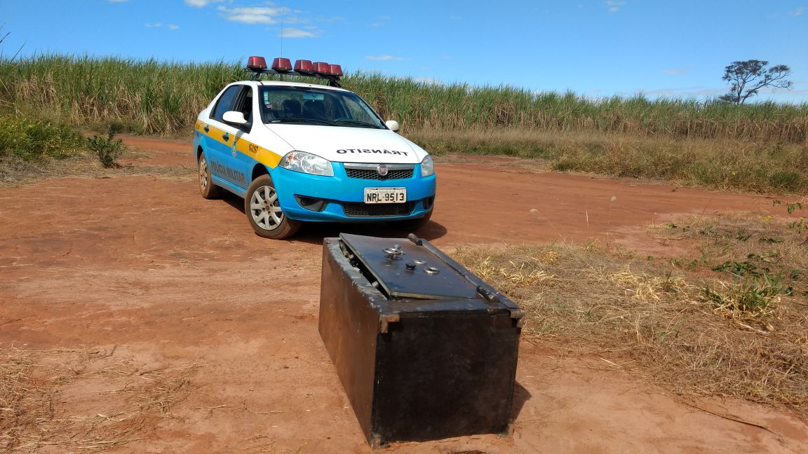 A equipe Policial Militar foi informada pela central de atendimento “190”, que conforme a colaboração de um cidadão anônimo, haveria um cofre abandonado numa estrada rural, próxima à BR 158 e a 8 quilômetros de Paranaíba. Durante as diligências os policiais encontraram um grande cofre preto, que já se encontrava arrombado e com os pertences do seu interior incinerados. Constatou-se que o objeto foi furtado na última sexta-feira em um comércio de bebidas da cidade. O cofre foi entregue no local ao delegado de Polícia Civil para prosseguimento dos trabalhos periciais e de identificação dos autores do delito.