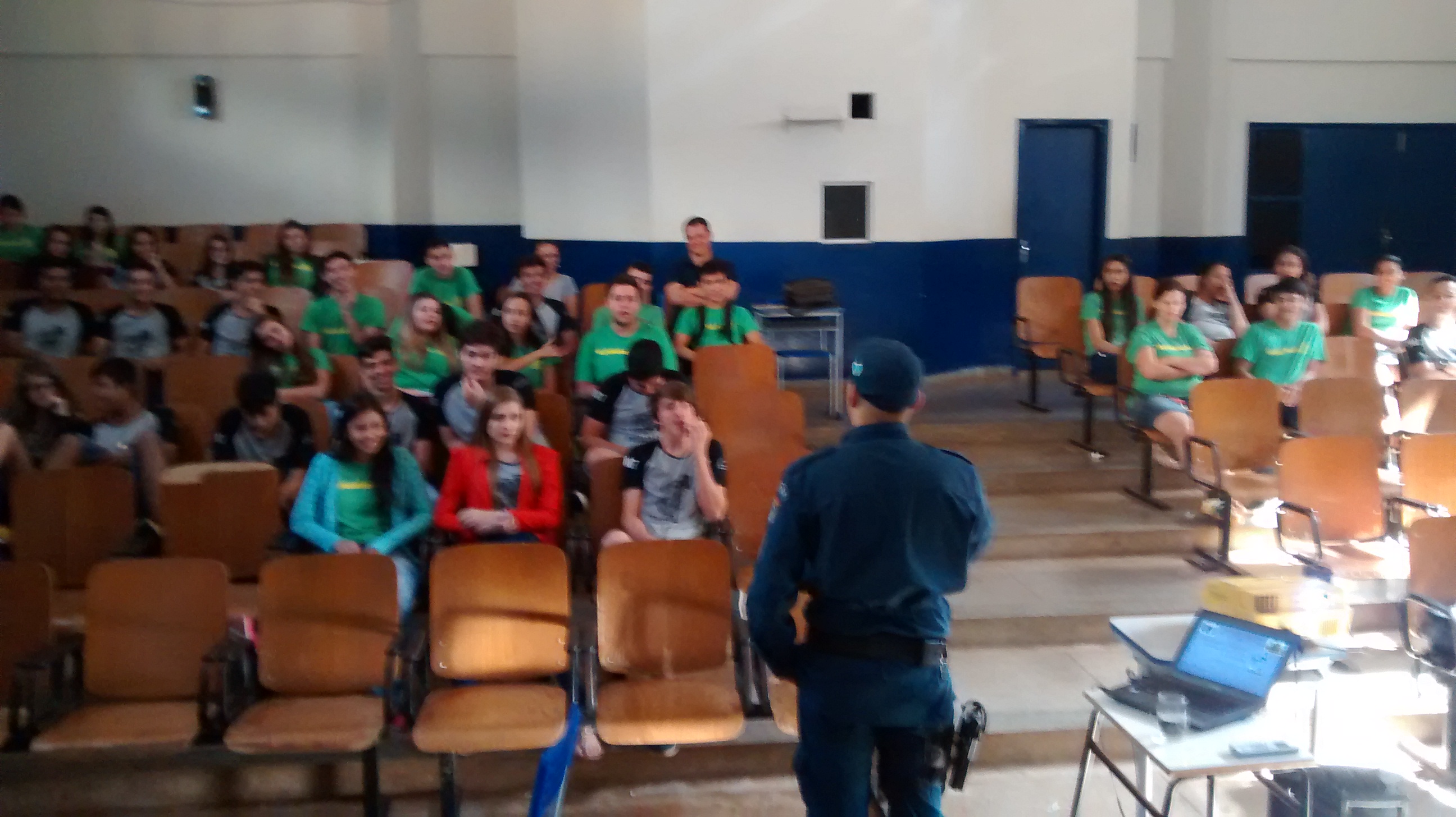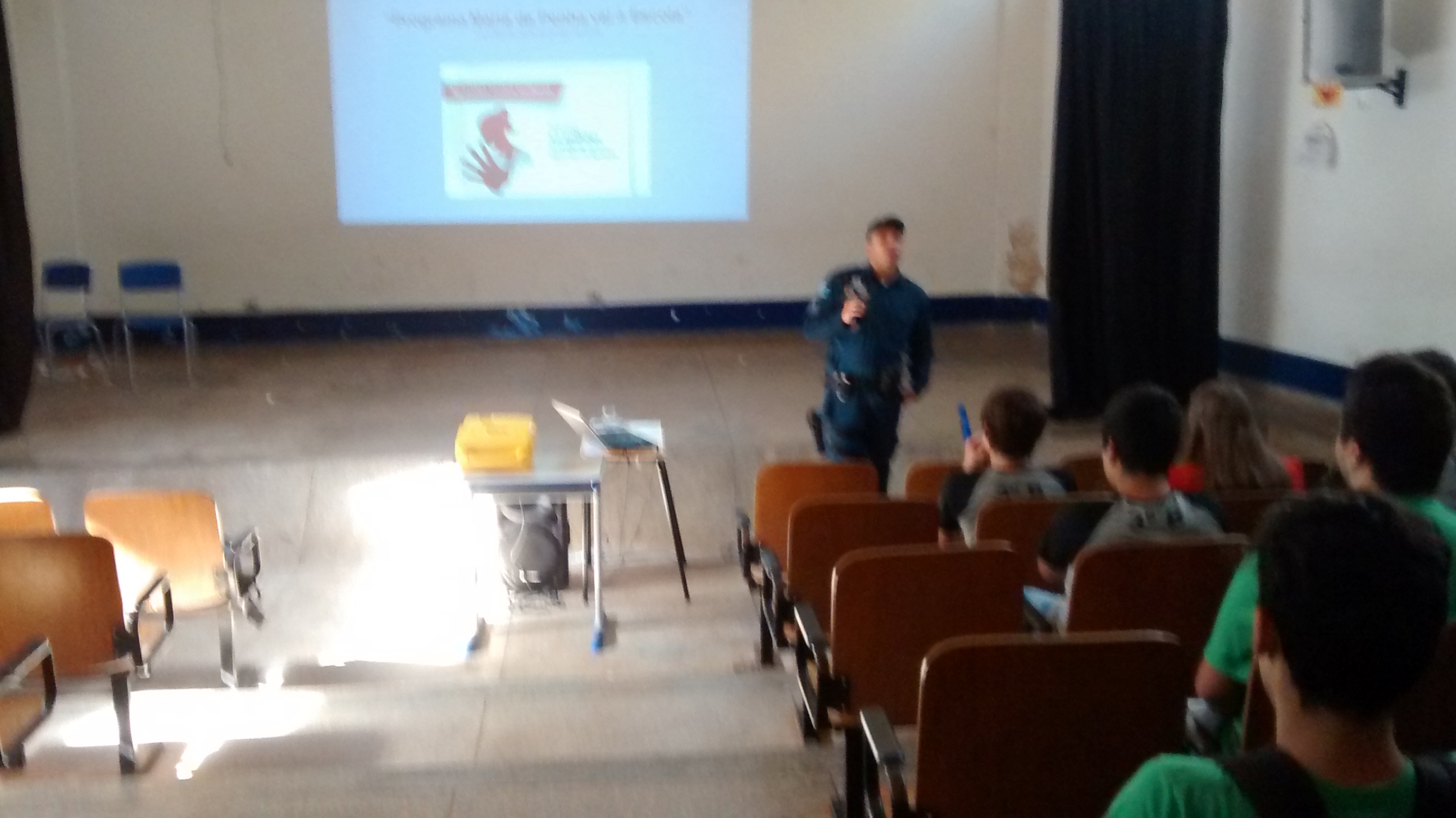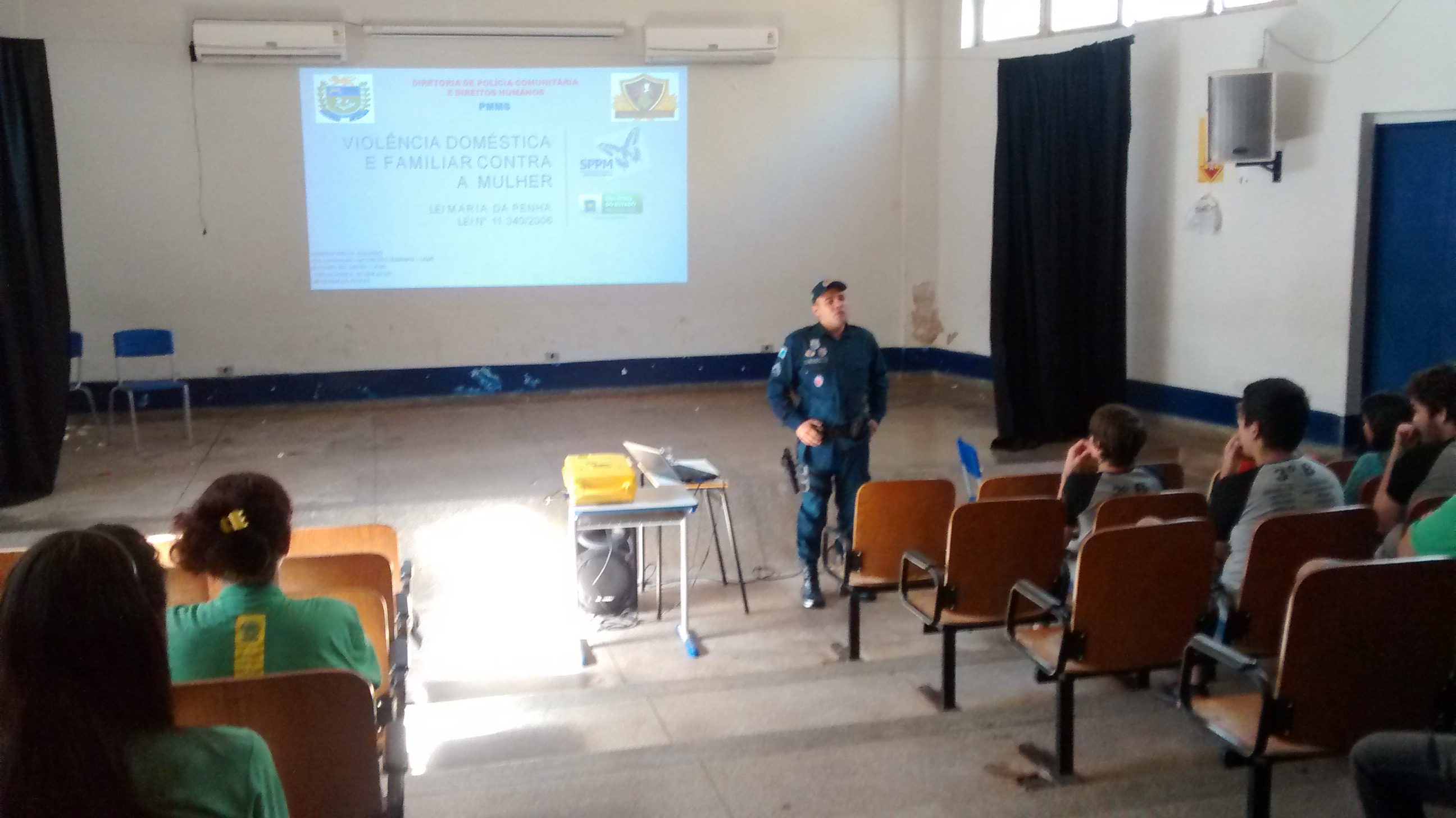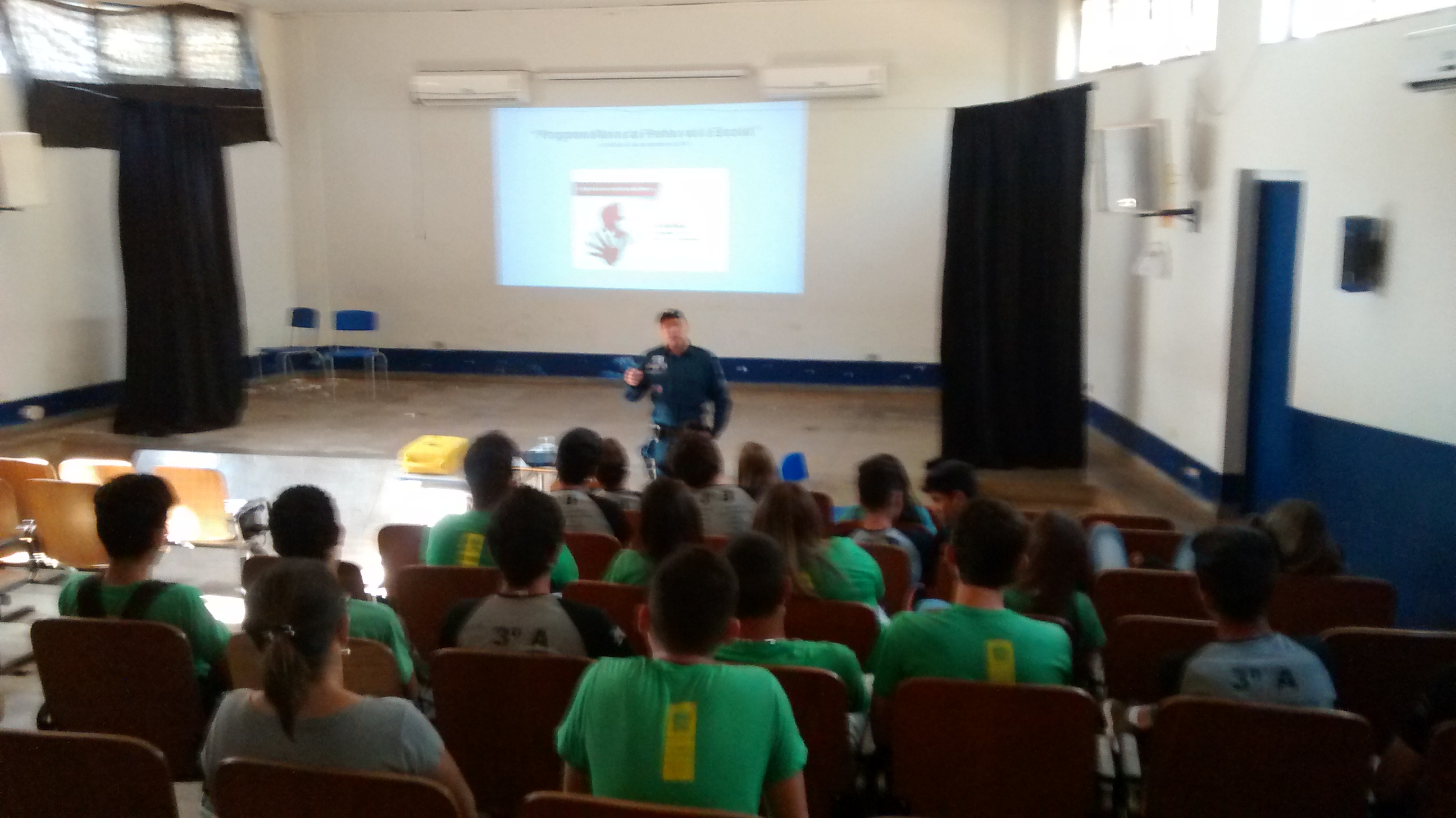 O palestrante e instrutor do PROERD, Cabo PM Machado, discorreu sobre a história da Senhora Maria da Penha Maia Fernandes (Maria da Penha), o surgimento da Lei Maria da Penha, definição do que é violência doméstica e familiar, informação acerca dos cinco tipos de violência previstos na lei Maria da Penha, onde buscar ajuda e como fazer uma denúncia. Ao todo 195 alunos assistiram as palestras, houve bastante interação durante as palestras e os alunos demonstraram interesse ao realizarem perguntas e exporem suas opiniões.