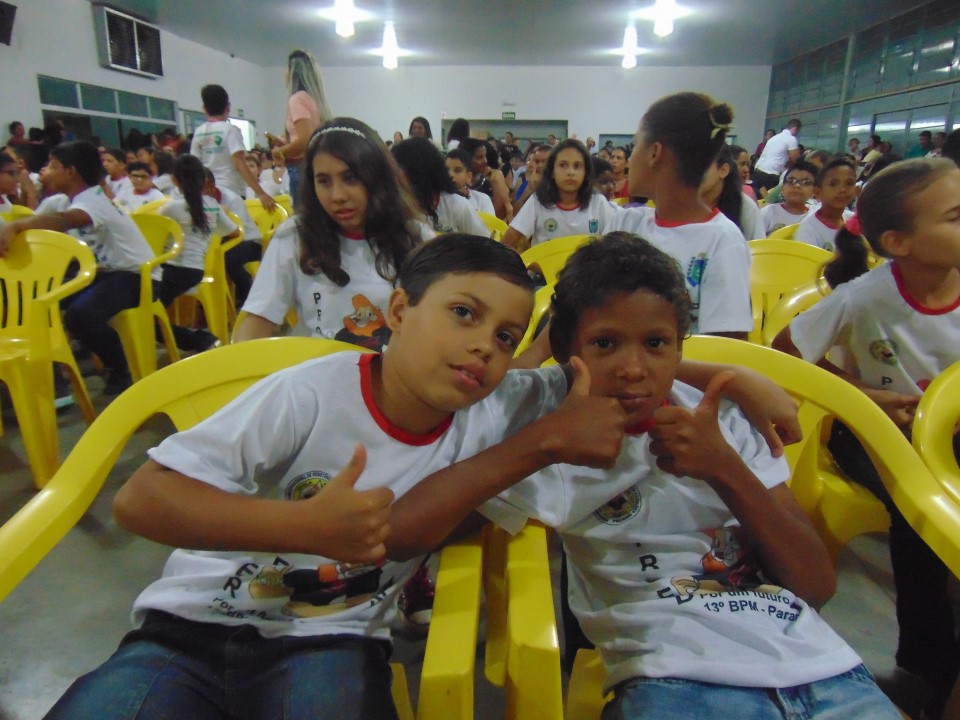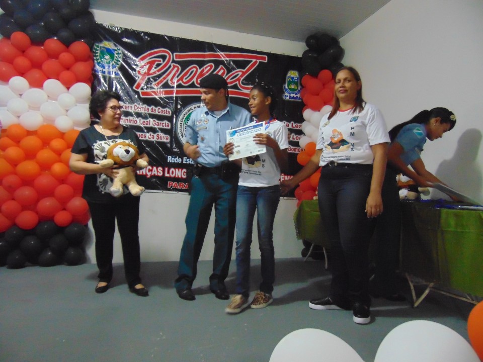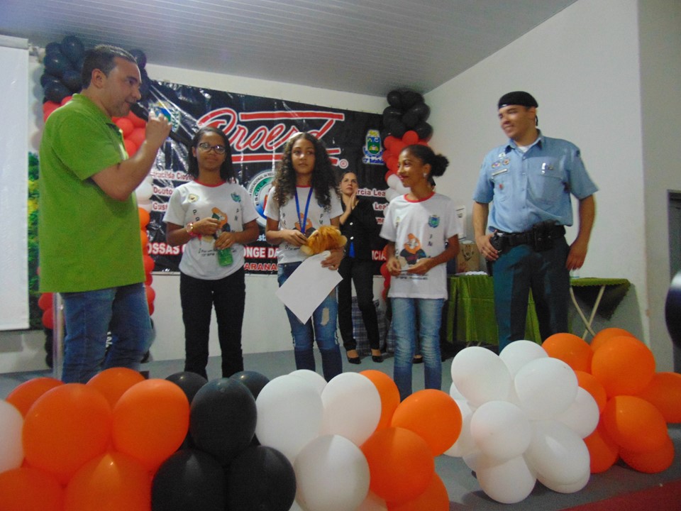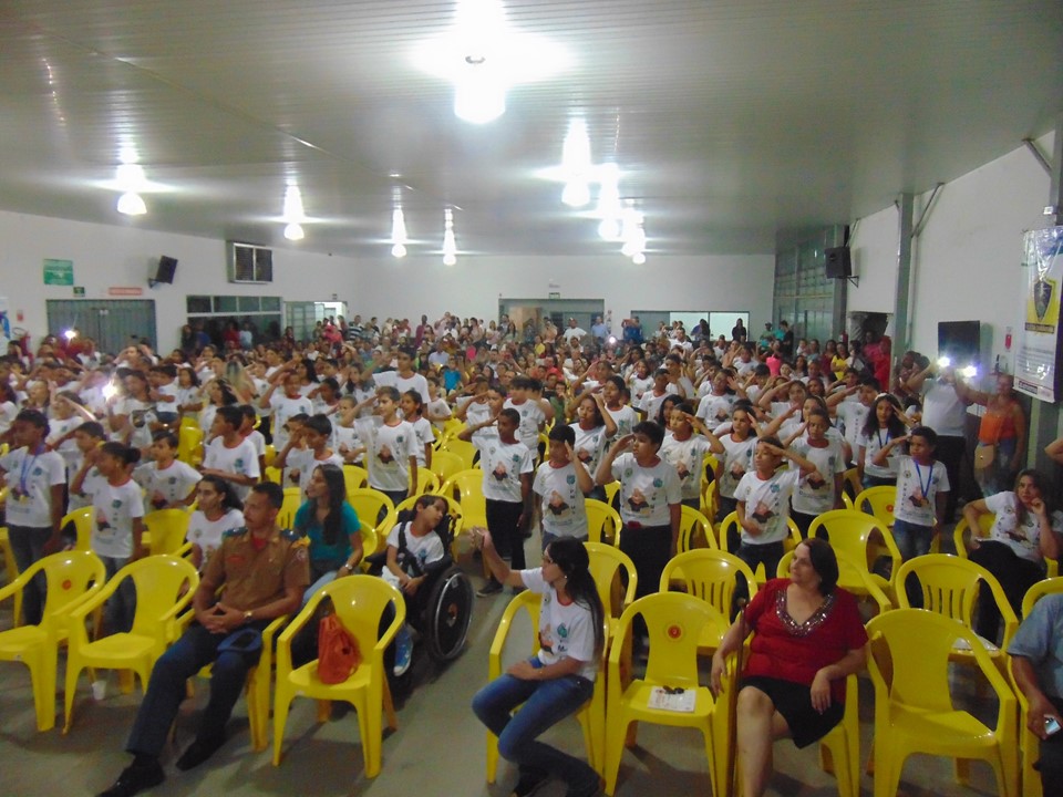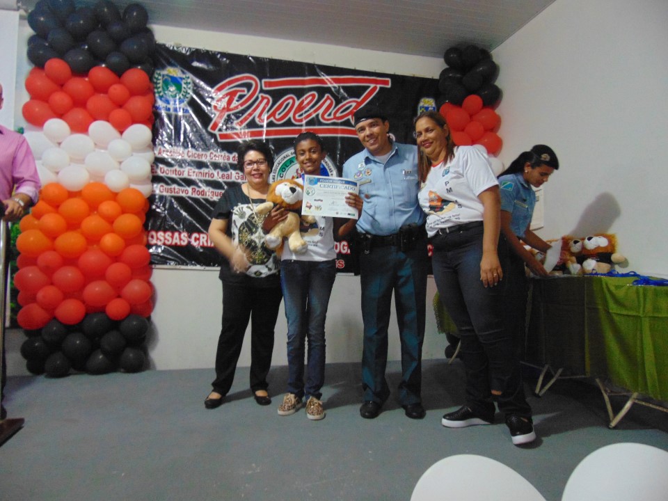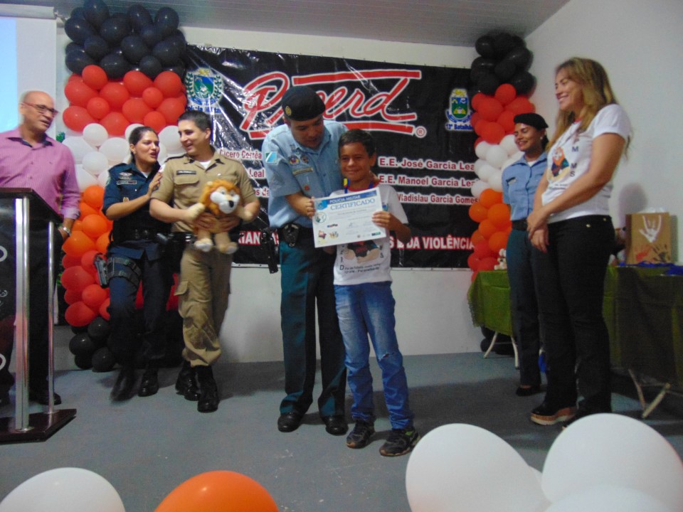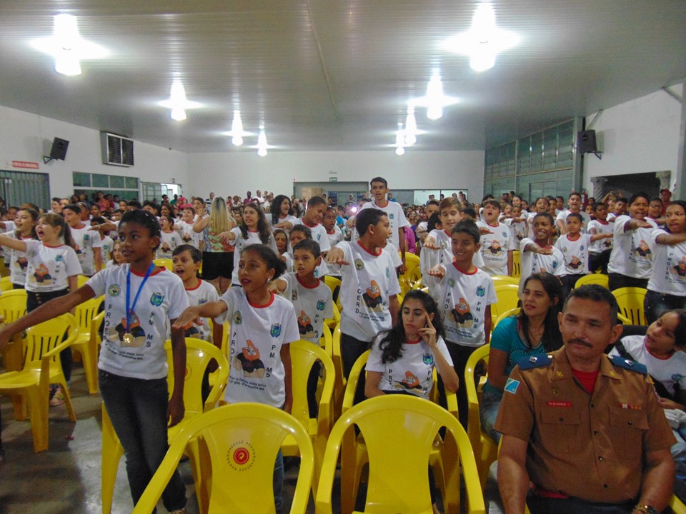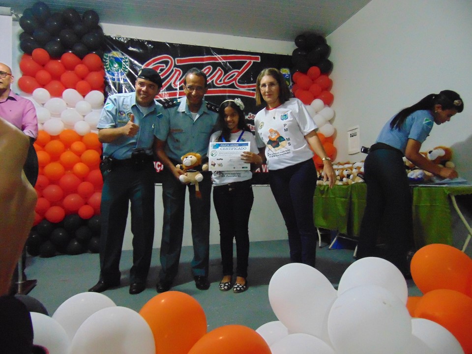 Na solenidade os alunos interagiram bastante com Cabo PM Machado, bem como os alunos agradecidos pelas redações destaque ficaram bastante emocionados quando foram convidados a receberem as premiações.