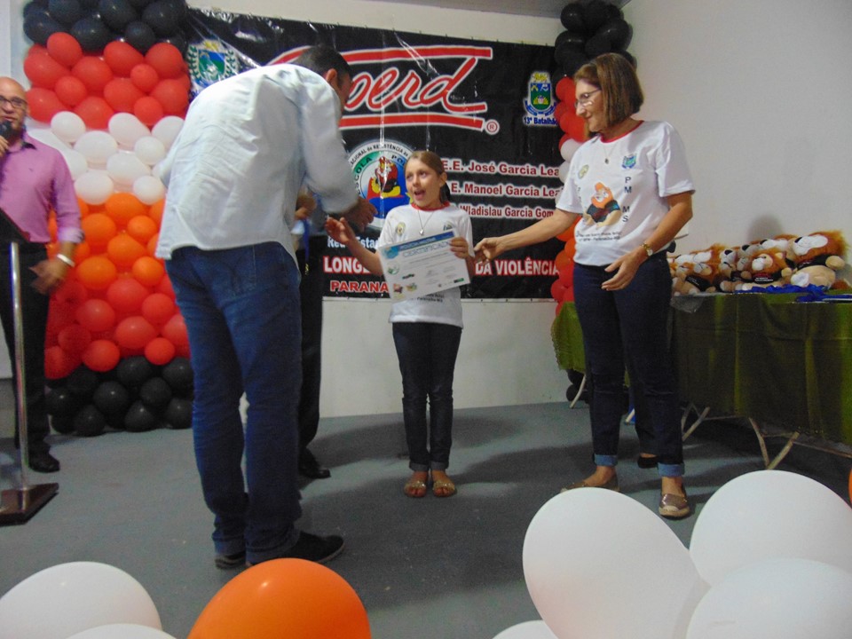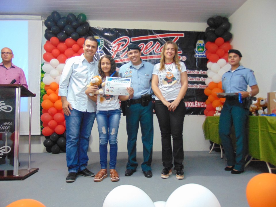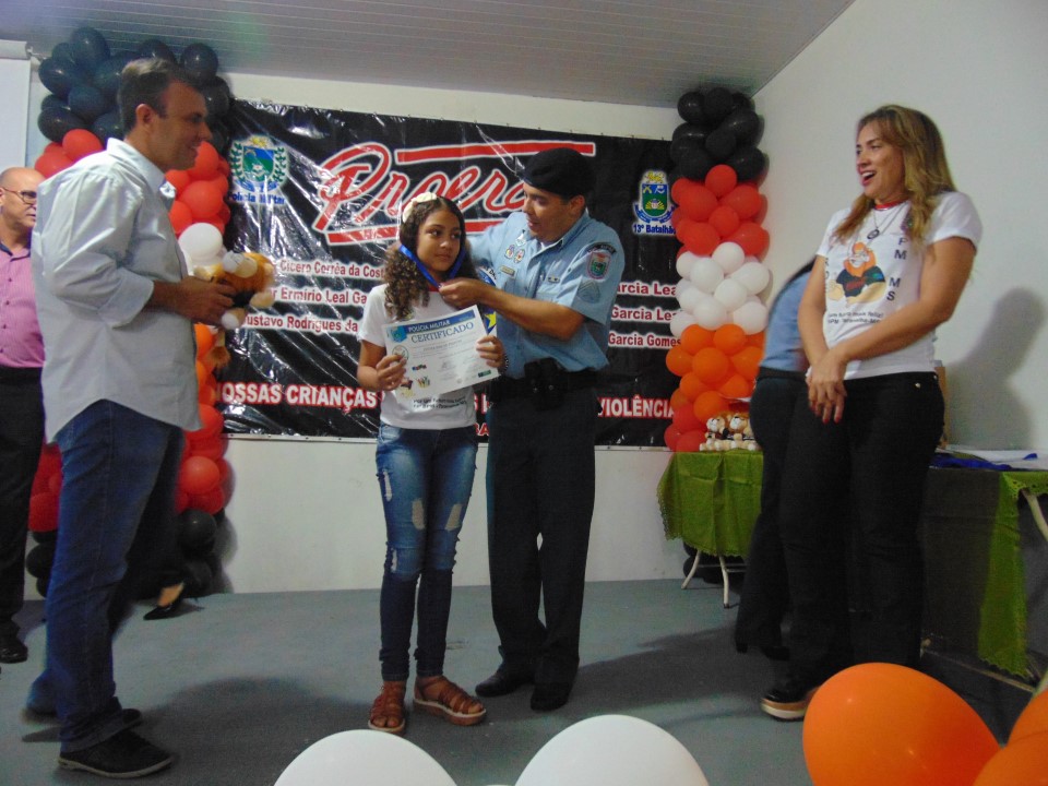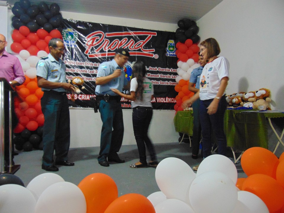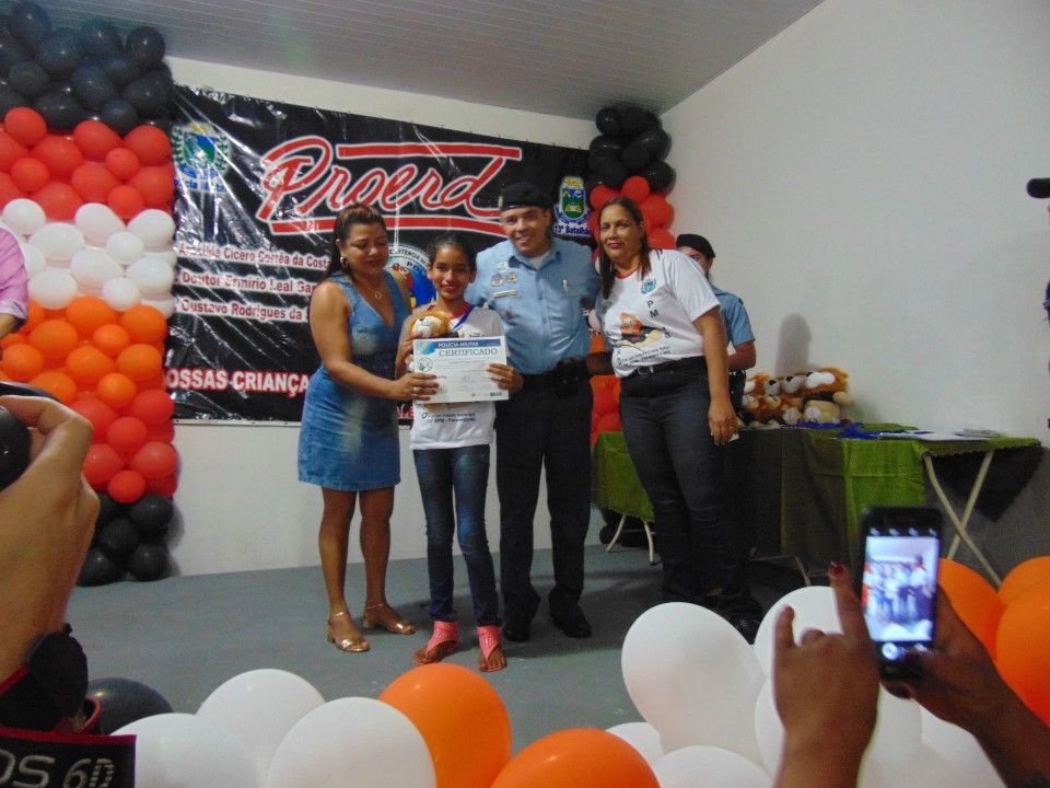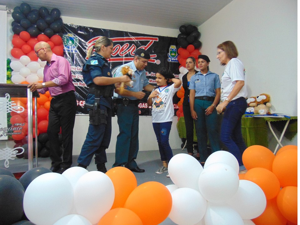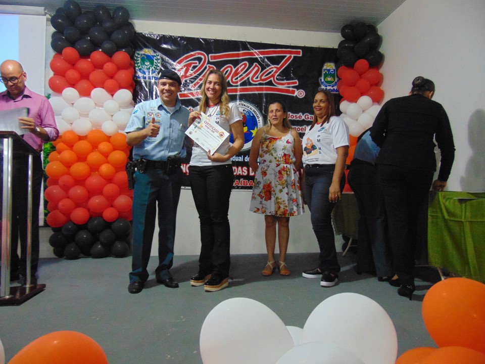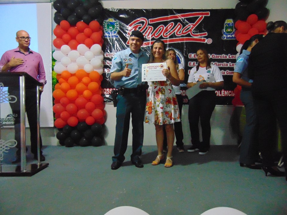 Na solenidade os alunos interagiram bastante com Cabo PM Machado, bem como os alunos agradecidos pelas redações destaque ficaram bastante emocionados quando foram convidados a receberem as premiações.