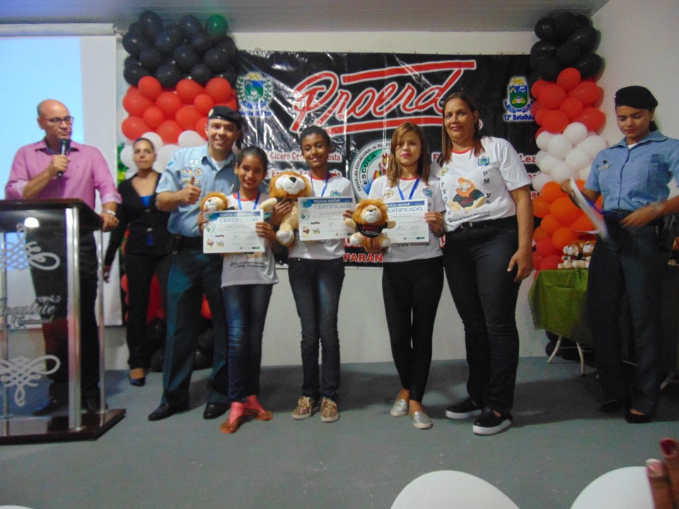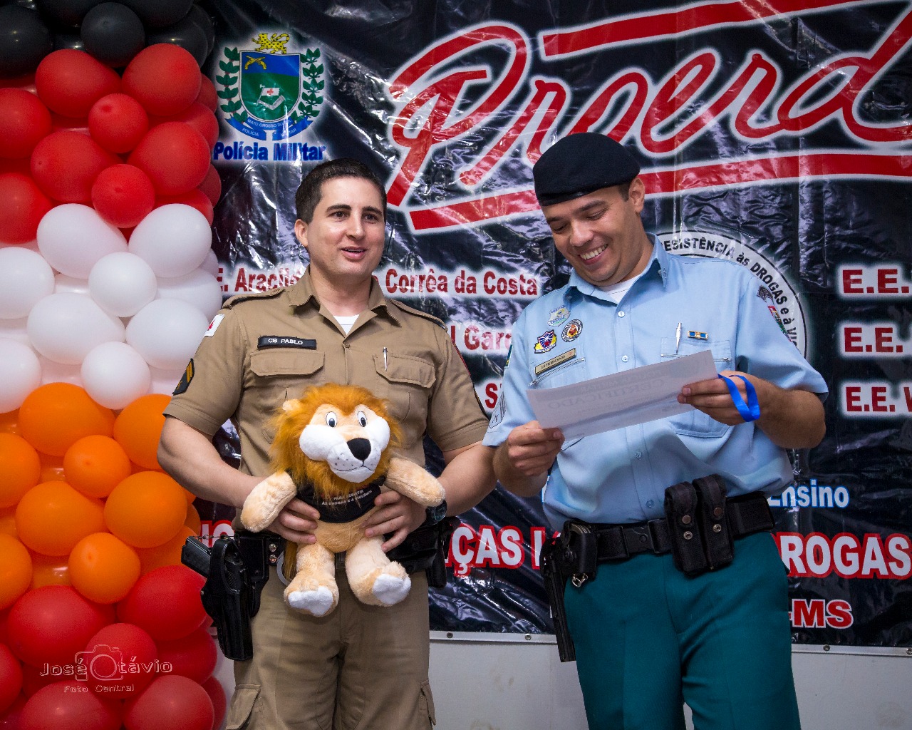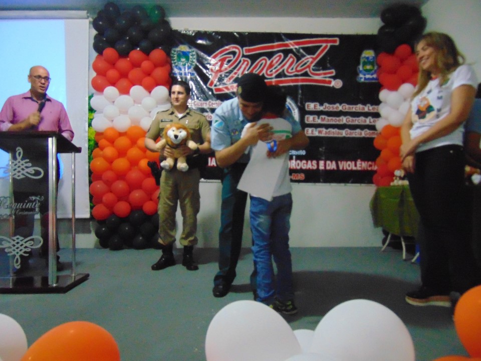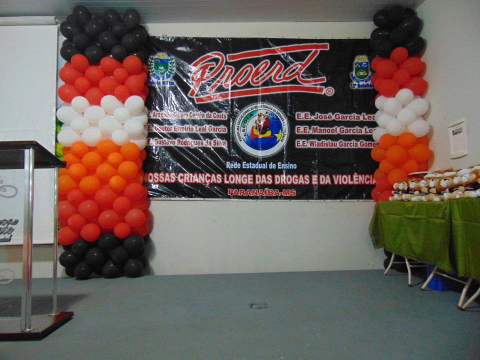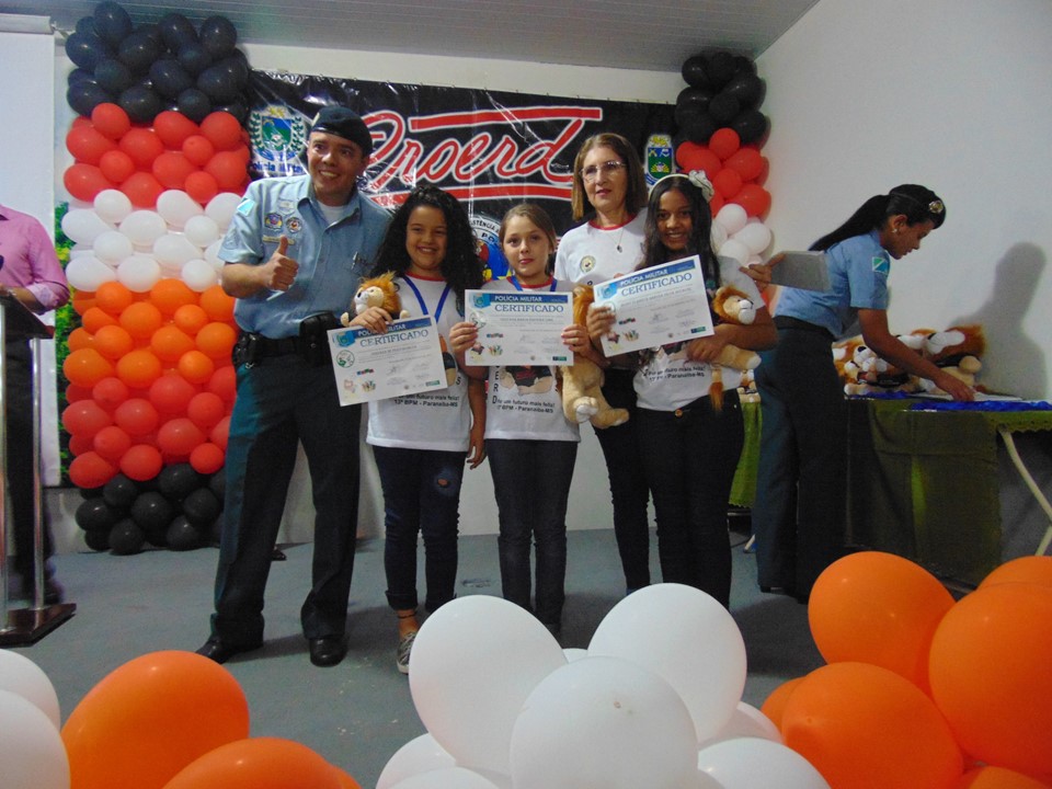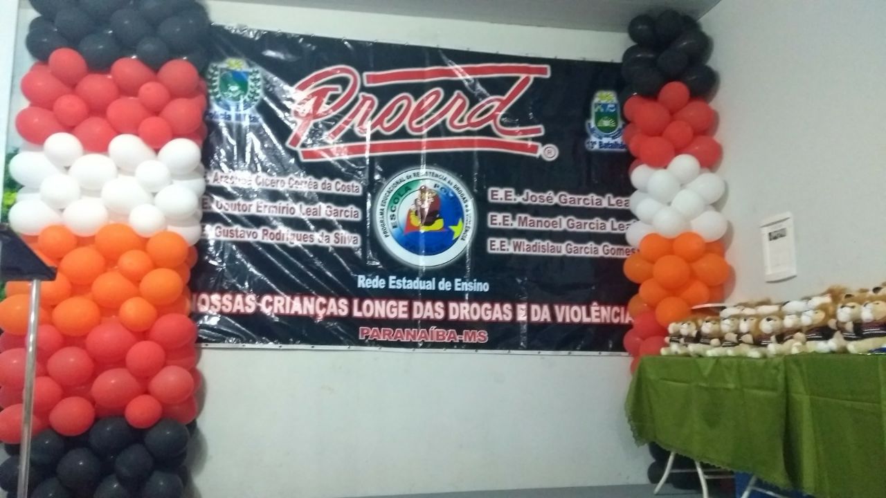 Durante o primeiro semestre do corrente ano o instrutor do Proerd, Cabo PM Marcelo Batista Machado, ministrou aulas do Programa aos alunos do 5º Ano do ensino fundamental das escolas estaduais. Nesta data foram reunidos mais de 240 (duzentos e quarenta) alunos no salão de eventos do Sindicato Municipal dos Trabalhadores em Educação de Paranaíba (SIMTED), juntamente com seus respectivos diretores, coordenadores e professores para a solenidade de formatura destes alunos.
