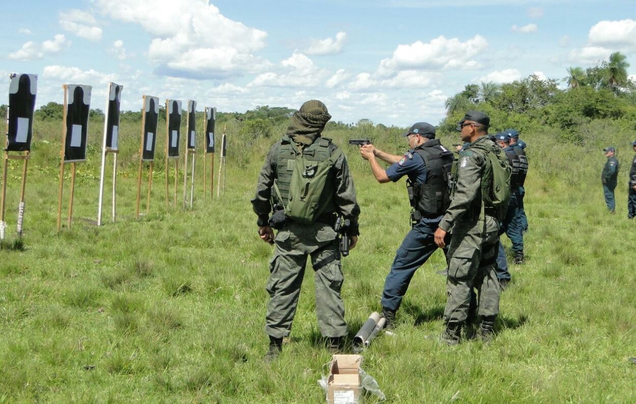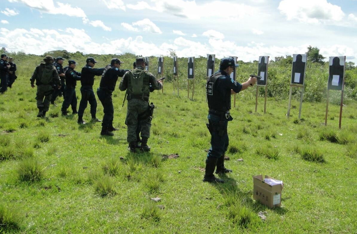 Jardim (MS) – Ontem (15), 29 Policiais Militares do 11º Batalhão de Polícia Militar (de Bela Vista, Caracol e Porto Murtinho) participaram de instrução, teórica e prática, sobre procedimentos e técnicas operacionais de segurança, uso, manejo e emprego de Pistola calibre .40. As atividades foram realizadas no Quartel do 10º Regimento de Cavalaria Mecanizada (10º R C Mec), no município de Bela Vista e ministradas pelos instrutores do BOPE (18º Batalhão de Operações Especiais), Tenente James, Sargento Sandro e Cabo Vilalba.