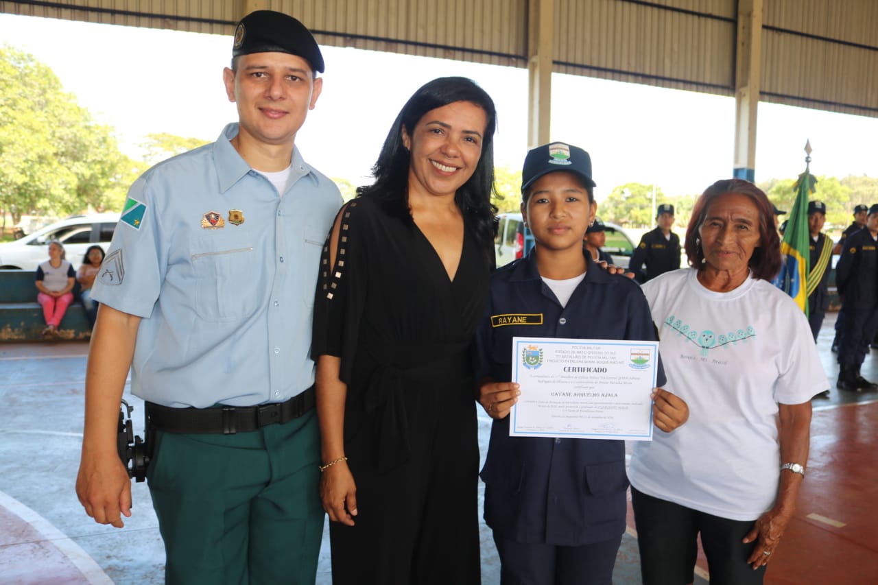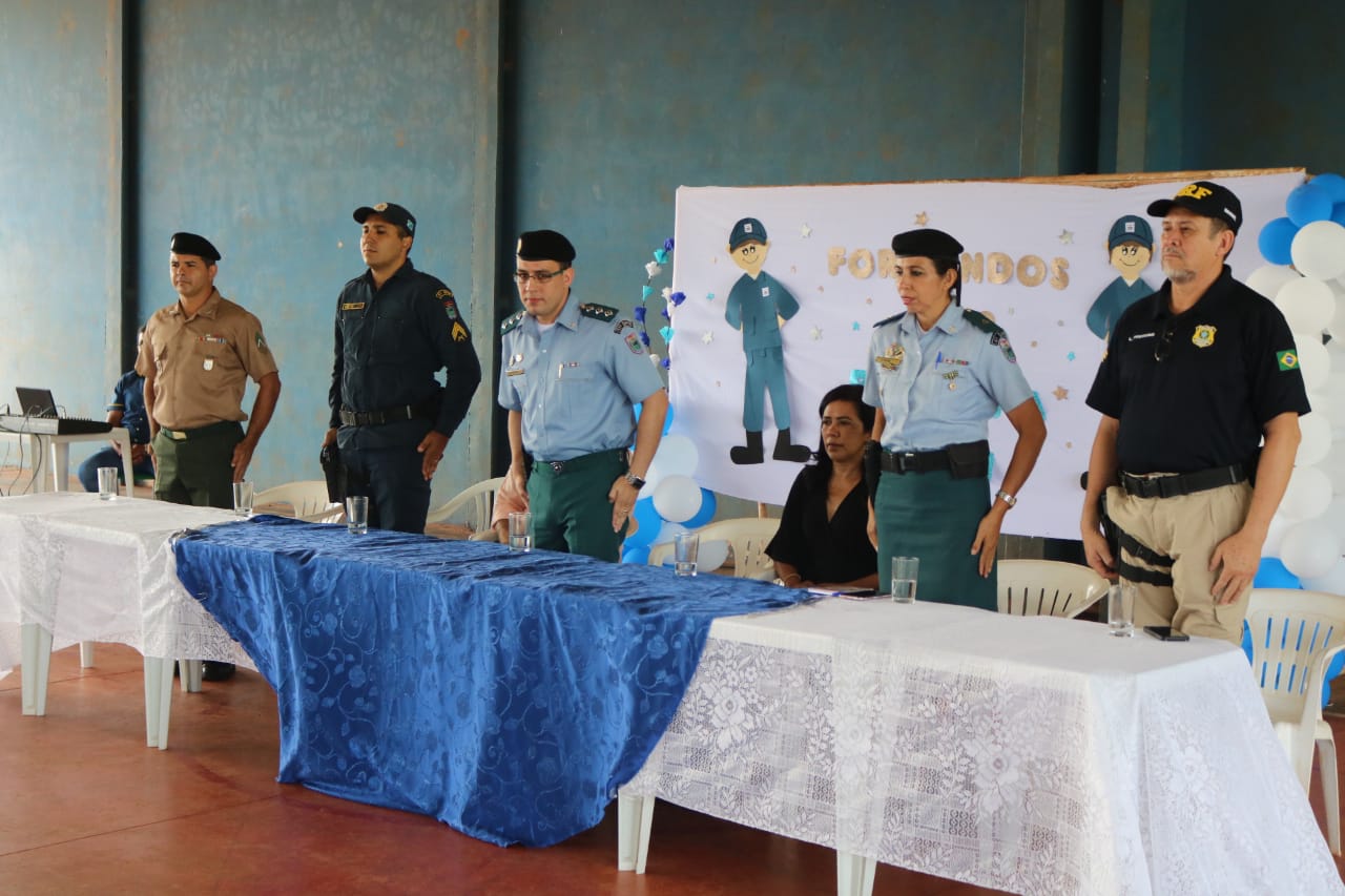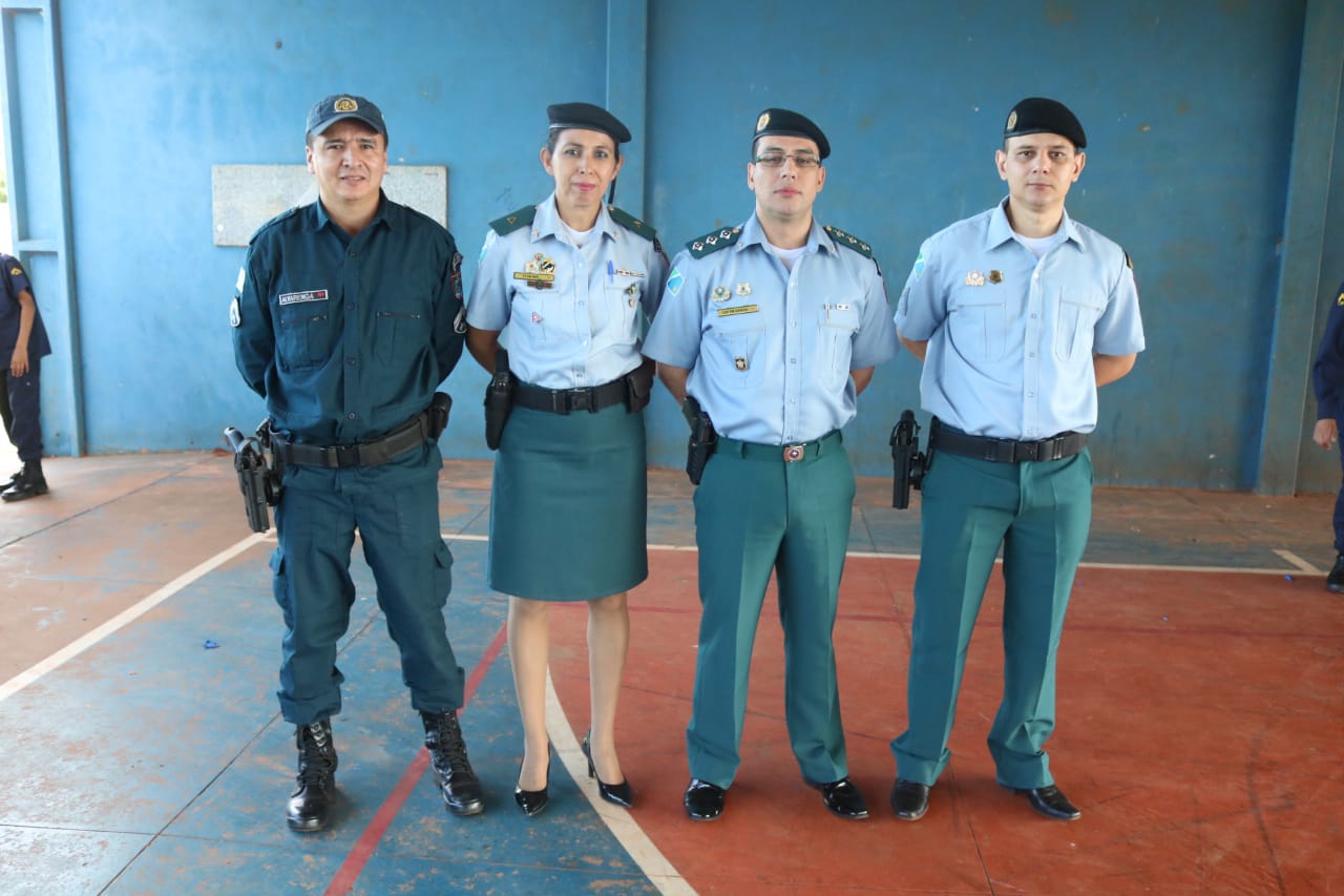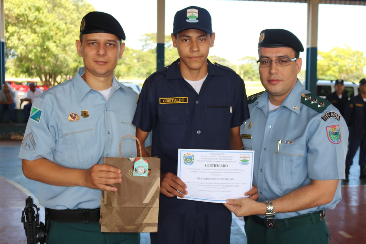 Entre as autoridades presentes estavam: o Comandante da 1ª Cia PM de Jardim, Capitão QOPM Rafael Pinheiro Garcia, representando o Comandante do 11º BPM, Tenente Coronel QOPM Adriano Rodrigues de Oliveira; o comandante do 3º GPM de Boqueirão, 3º Sargento Mario Sergio Peixoto Leite; o 2º Sargento EB Américo Carlos Soares, representando o Comandante da 4ª Cia de Eng. de Comb. Mec, Major Eng. Marcelo Hissanaga; a Coordenadora Estadual do Projeto Patrulha Mirim, Subtenente PM Fátima Inês Rodrigues de Britto; o Inspetor Chefe da 5ª Delegacia de Polícia Rodoviária Federal de Guia Lopes da Laguna, senhor Luiz Carlos Pinheiro; o Prefeito Municipal de Jardim, senhor Guilherme Alves Monteiro e a Secretária de Assistência Social, senhora Rosi Maciel.