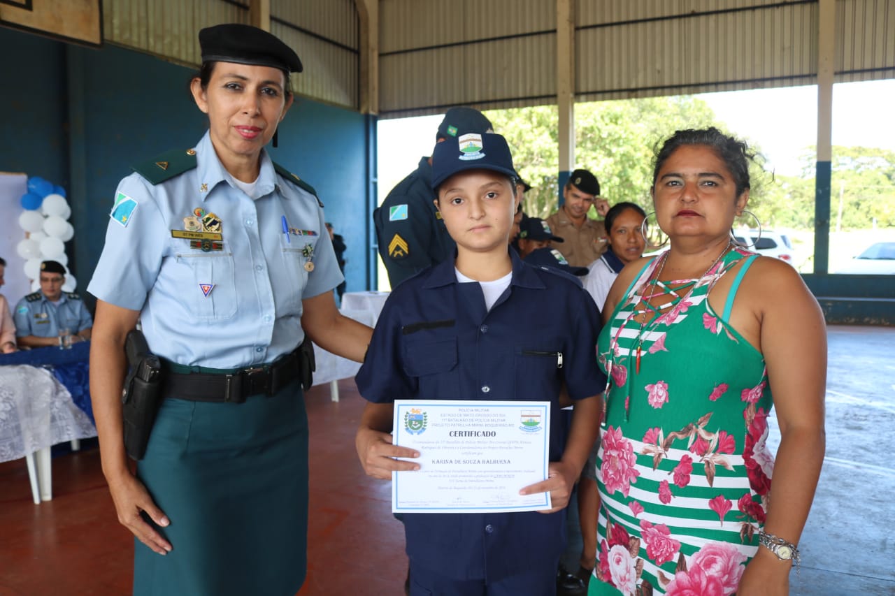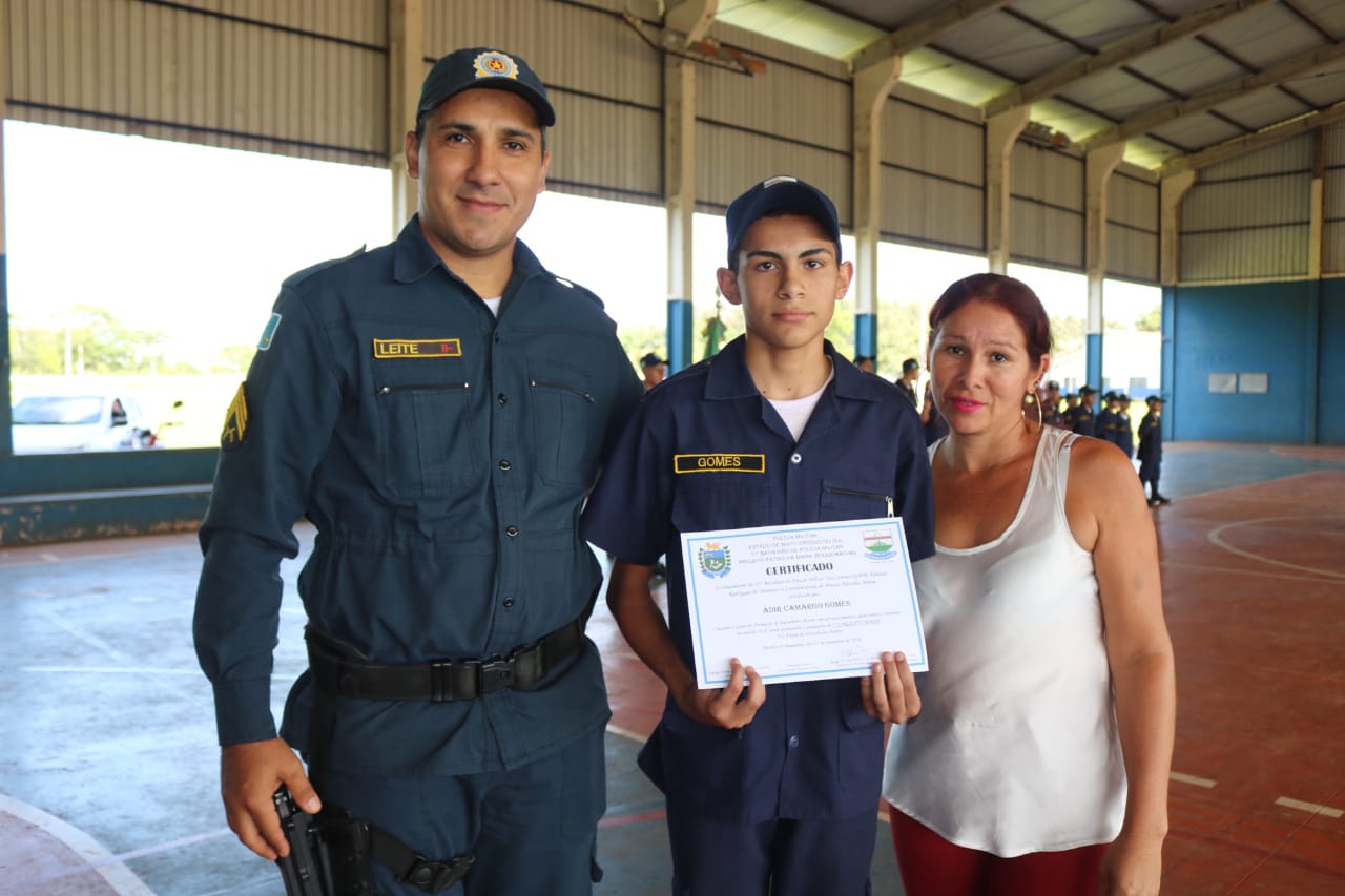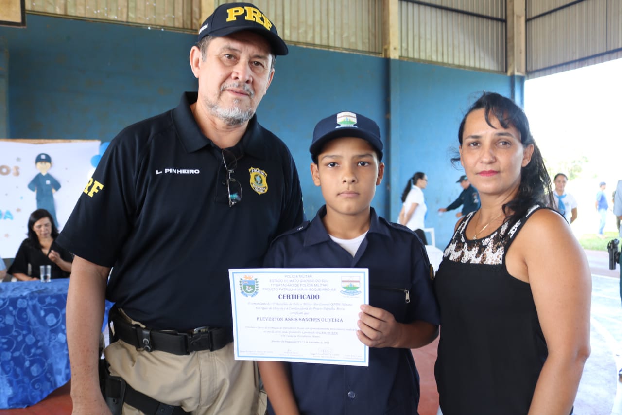 Jardim (MS) – Na manhã de ontem (21), foi realizada a Solenidade de Formatura do Projeto Patrulha Mirim do distrito de Boqueirão. O evento foi realizado na quadra poliesportiva, ao lado da Escola Estácio Cunha Martins. O projeto formou 27 crianças em Boqueirão, sob coordenação do instrutor Cabo PM Thiago Henrique Farias Peixoto e da coordenadora professora Lurdes Rojas Cuenca.