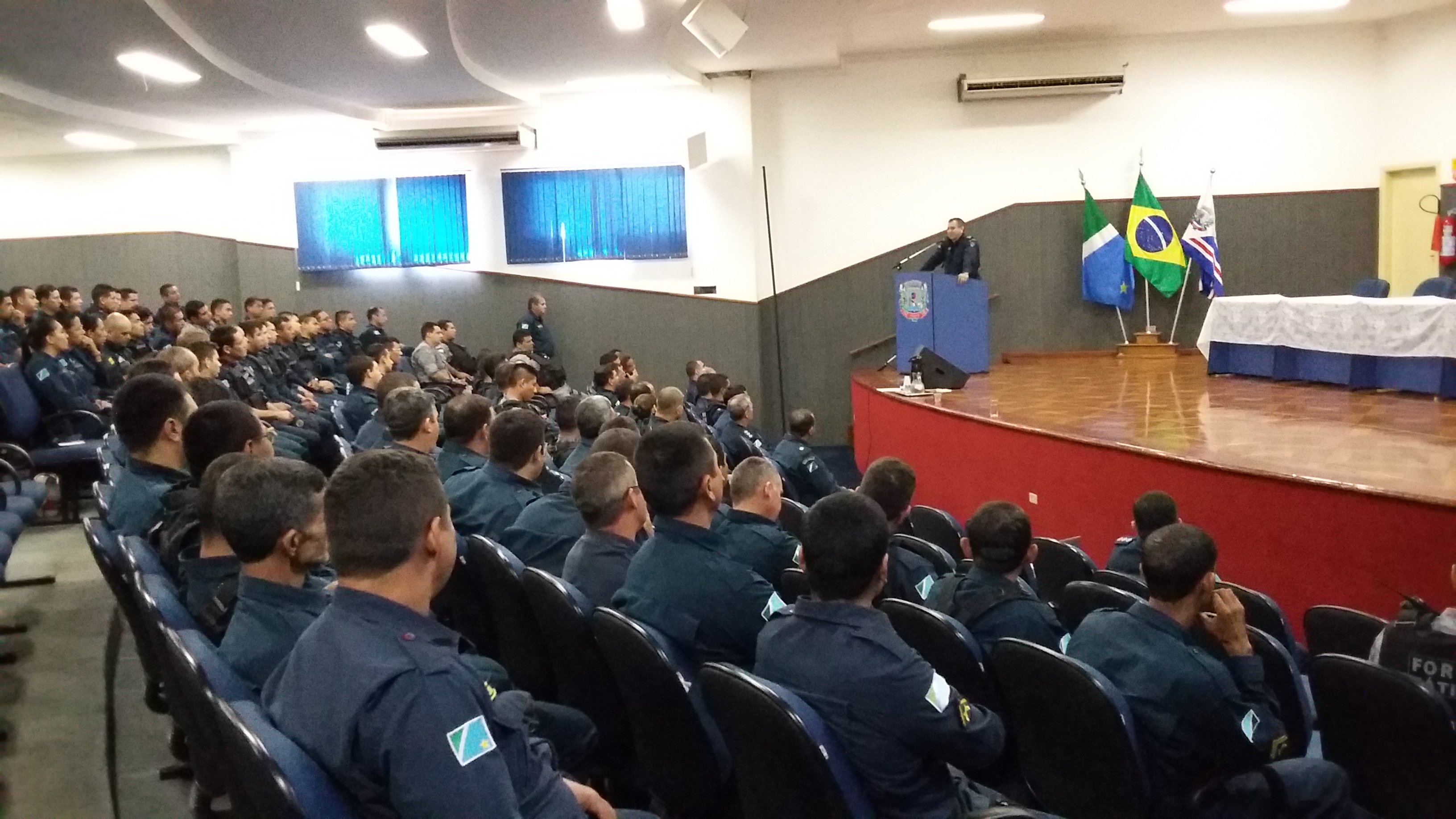 Jardim (MS) – Na manhã de ontem (07) o efetivo do 11º Batalhão de Polícia Militar participou de uma formatura geral, realizada no Centro de Convenções Osvaldo Fernandes Monteiro, em Jardim, para tratar de assuntos de interesse da classe, como as possíveis mudanças previdenciárias aos militares.