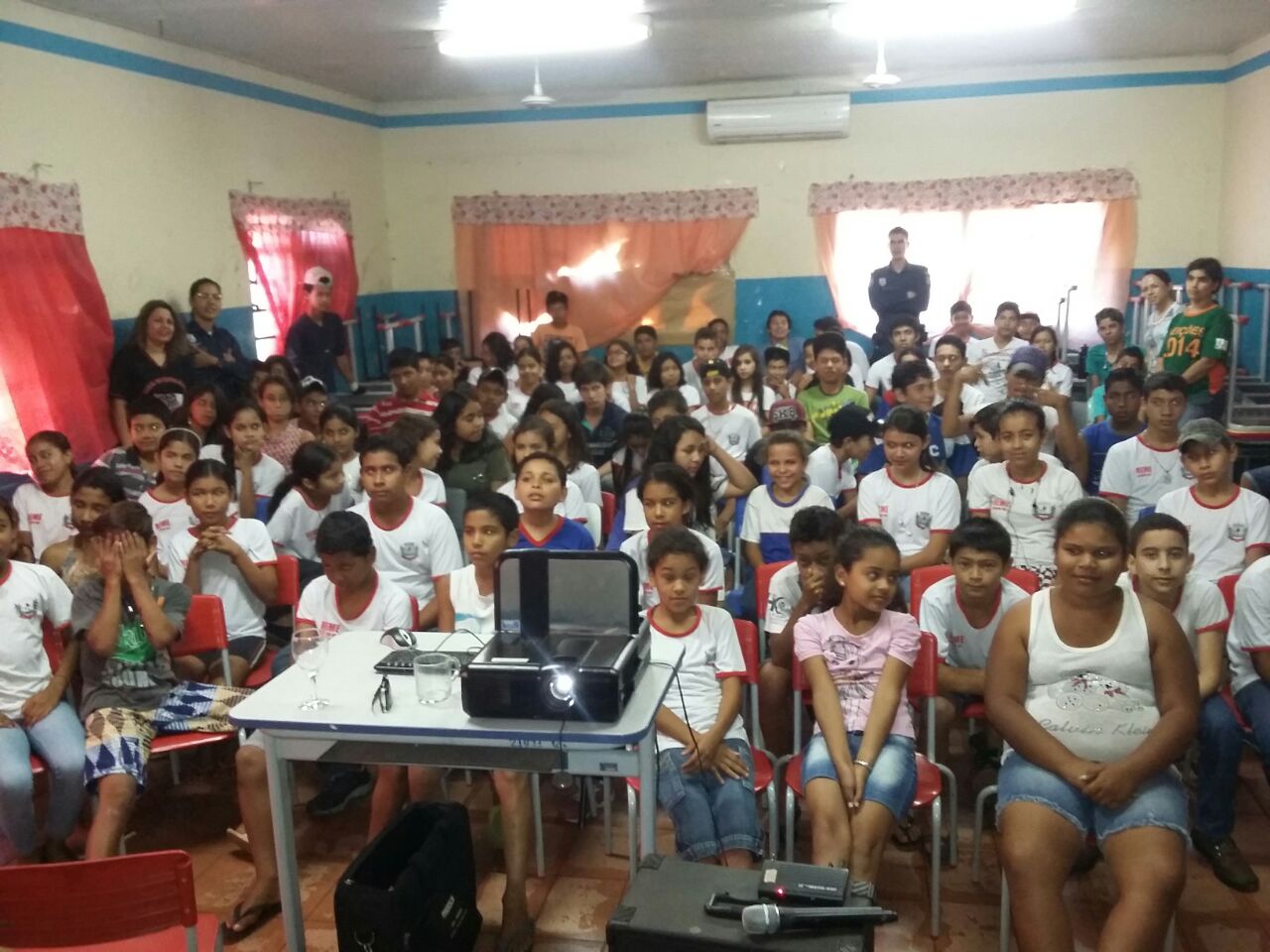 Durante a palestra, os Policiais discorreram sobre o tema “Segurança na Saída da Escola”, apresentaram vídeos e fizeram orientações sobre o assunto.