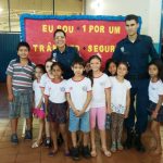 “Esses jovens, como pedestres e futuros condutores de veículos automotores, devem ser instruídos a utilizarem as vias de maneira responsável. Portanto, precisamos trabalhar em conjunto para que o convívio no Trânsito seja seguro e harmonioso” – salientou a Soldado PM Cristina, sobre o Tema abordado.