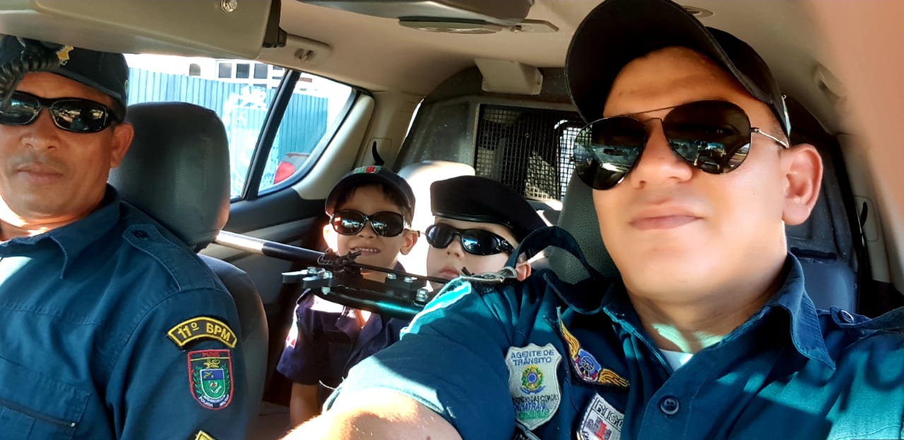Simbolicamente fardados e sob supervisão da guarnição, Luis Otávio e Miguel realizaram o tão desejado sonho, fazendo um passeio simbólico na viatura. Seus pais ficaram orgulhosos e emocionados ao verem a alegria de seus filhos.