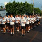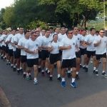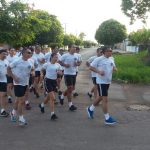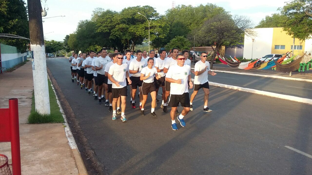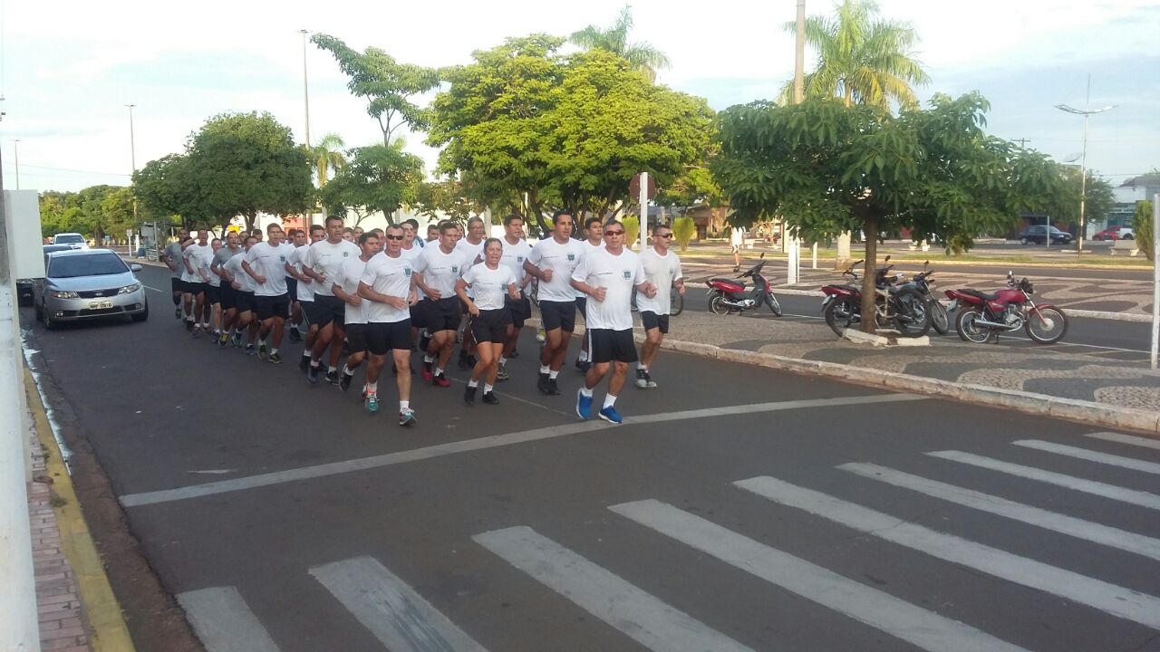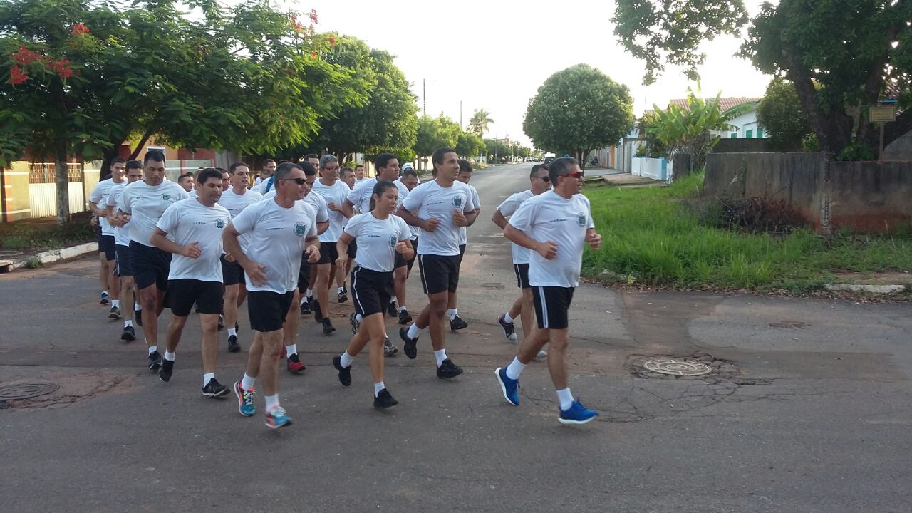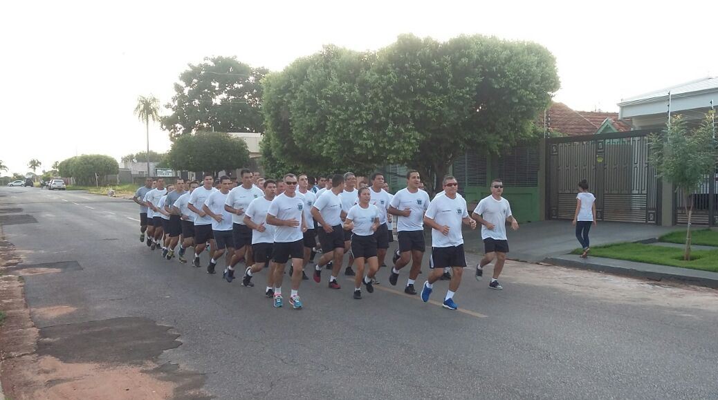Após o alongamento físico, que foi realizado na quadra de esportes localizada na Sede do Batalhão, sob orientação do Subtenente Aparecido Pereira Soares, o Tenente Coronel Admilson Cristaldo Barbosa, Comandante do 11º BPM, comandou o efetivo durante o percurso de uma corrida militar realizada pelas ruas da cidade.
