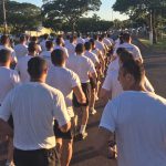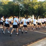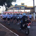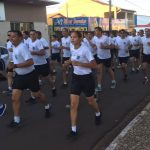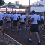 Após o alongamento físico, que foi realizado na quadra de esportes localizada na Sede do Batalhão, sob orientação do Aluno Cabo Maidana, o Tenente Coronel Admilson Cristaldo Barbosa, Comandante do 11º BPM, comandou o efetivo durante o percurso de uma corrida militar realizada pelas ruas da cidade. Durante o percurso, os Alunos Cabos: Maidana, Lorenzon, Rosane, Silvonei e Hermeson puxaram canções ao lado da tropa.