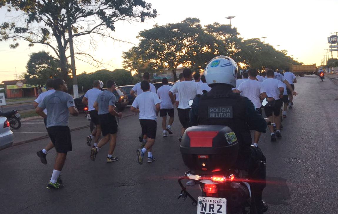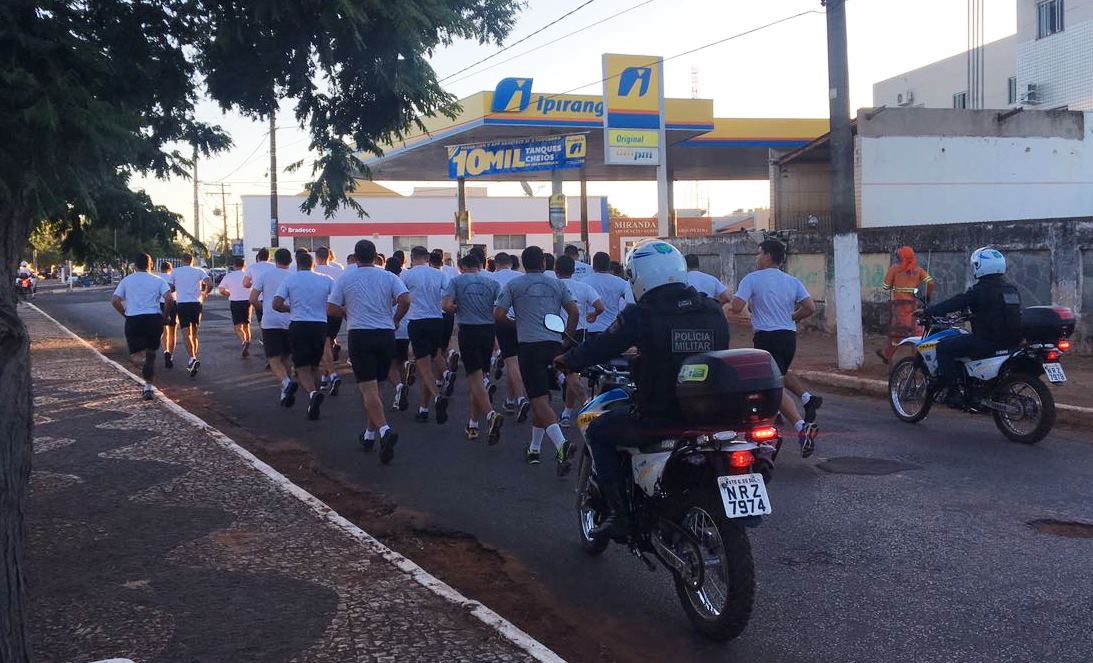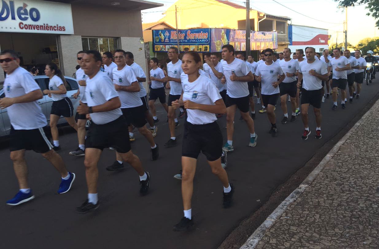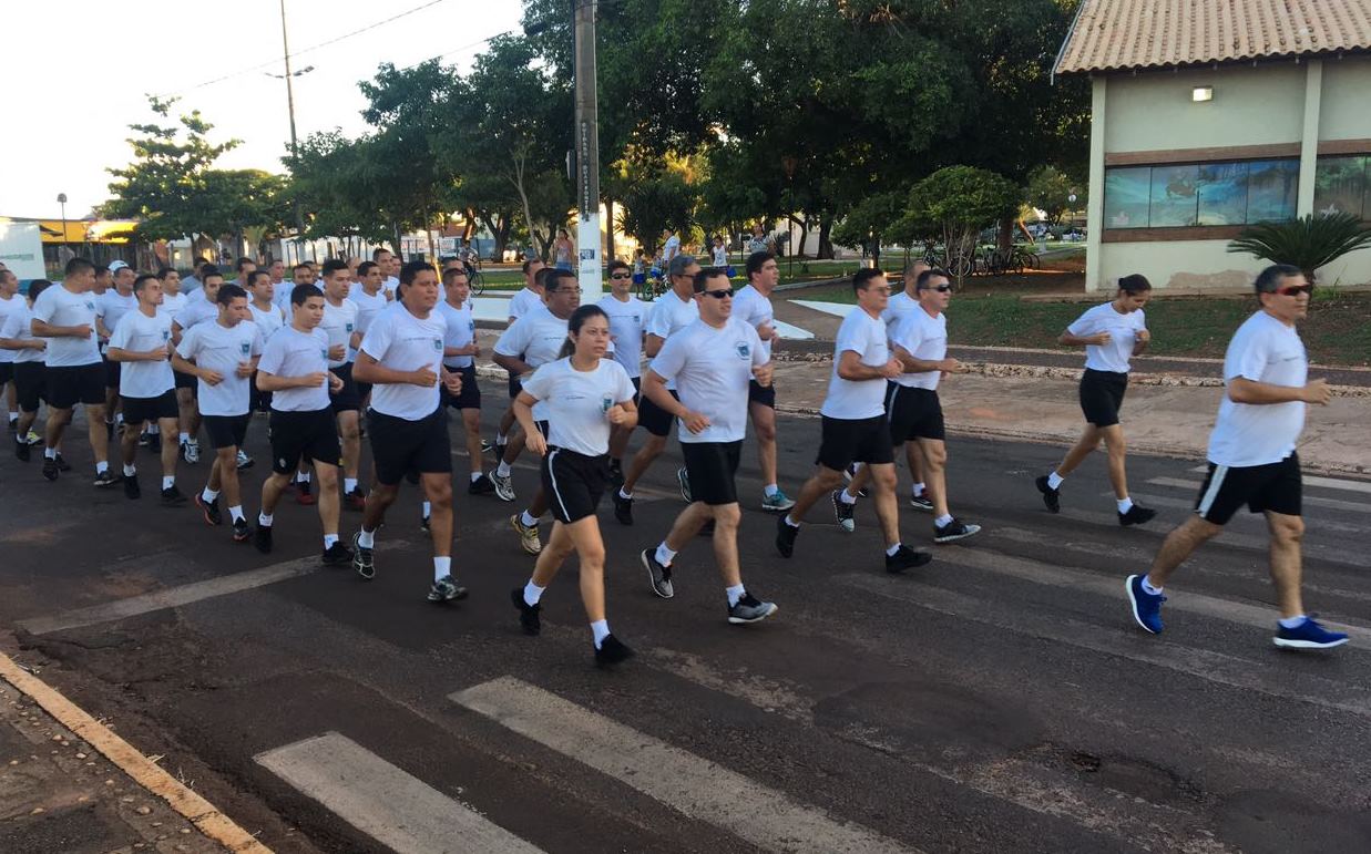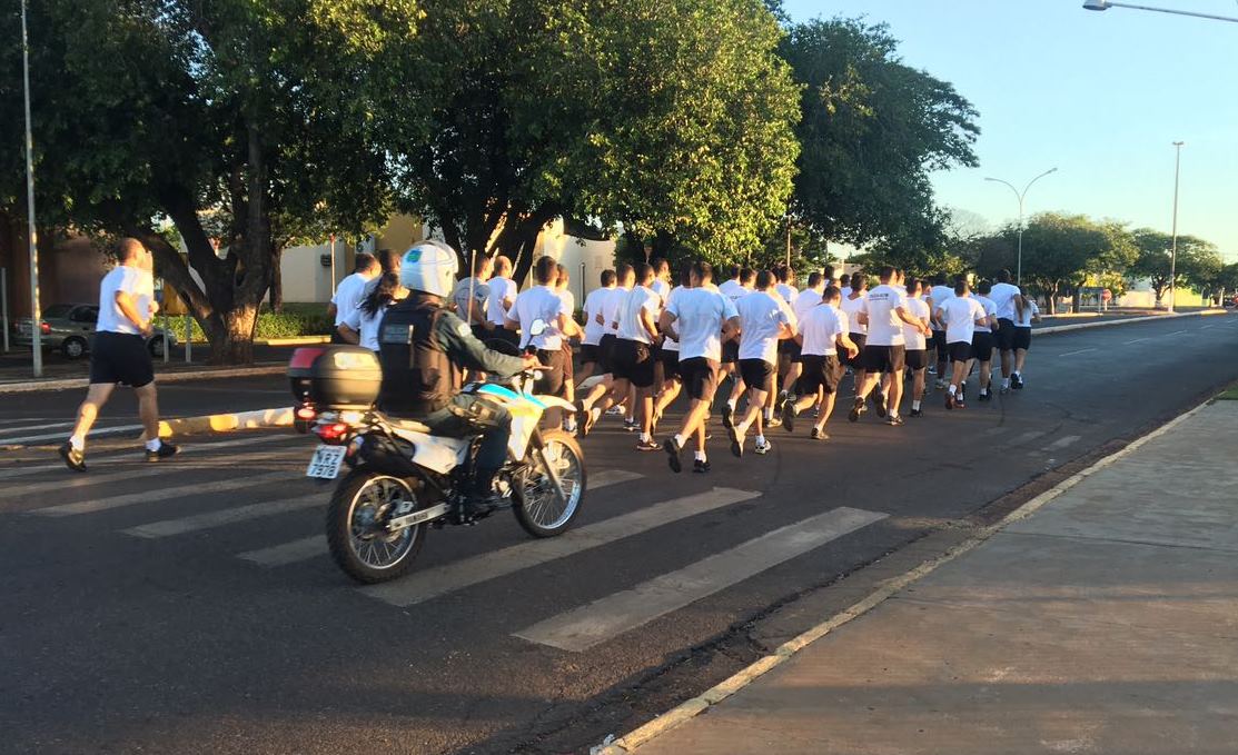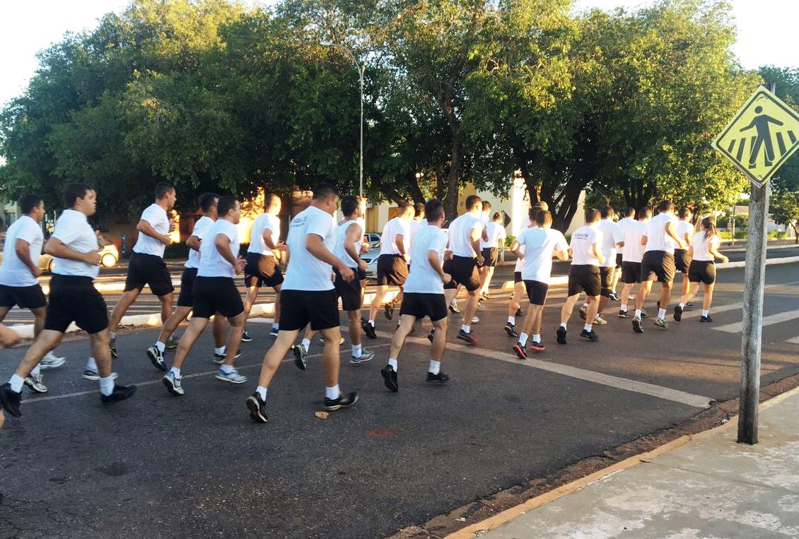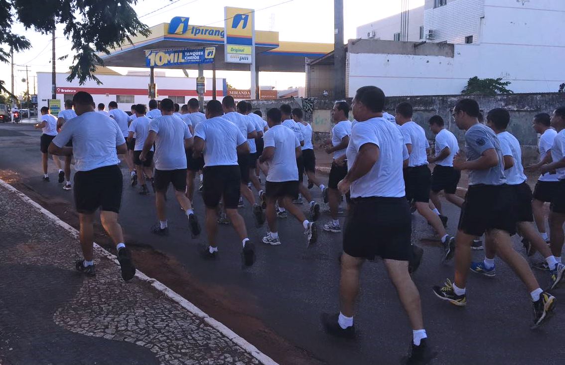 Após o alongamento físico, que foi realizado na quadra de esportes localizada na Sede do Batalhão, sob orientação do Aluno Cabo Maidana, o Tenente Coronel Admilson Cristaldo Barbosa, Comandante do 11º BPM, comandou o efetivo durante o percurso de uma corrida militar realizada pelas ruas da cidade. Durante o percurso, os Alunos Cabos: Maidana, Lorenzon, Rosane, Silvonei e Hermeson puxaram canções ao lado da tropa.