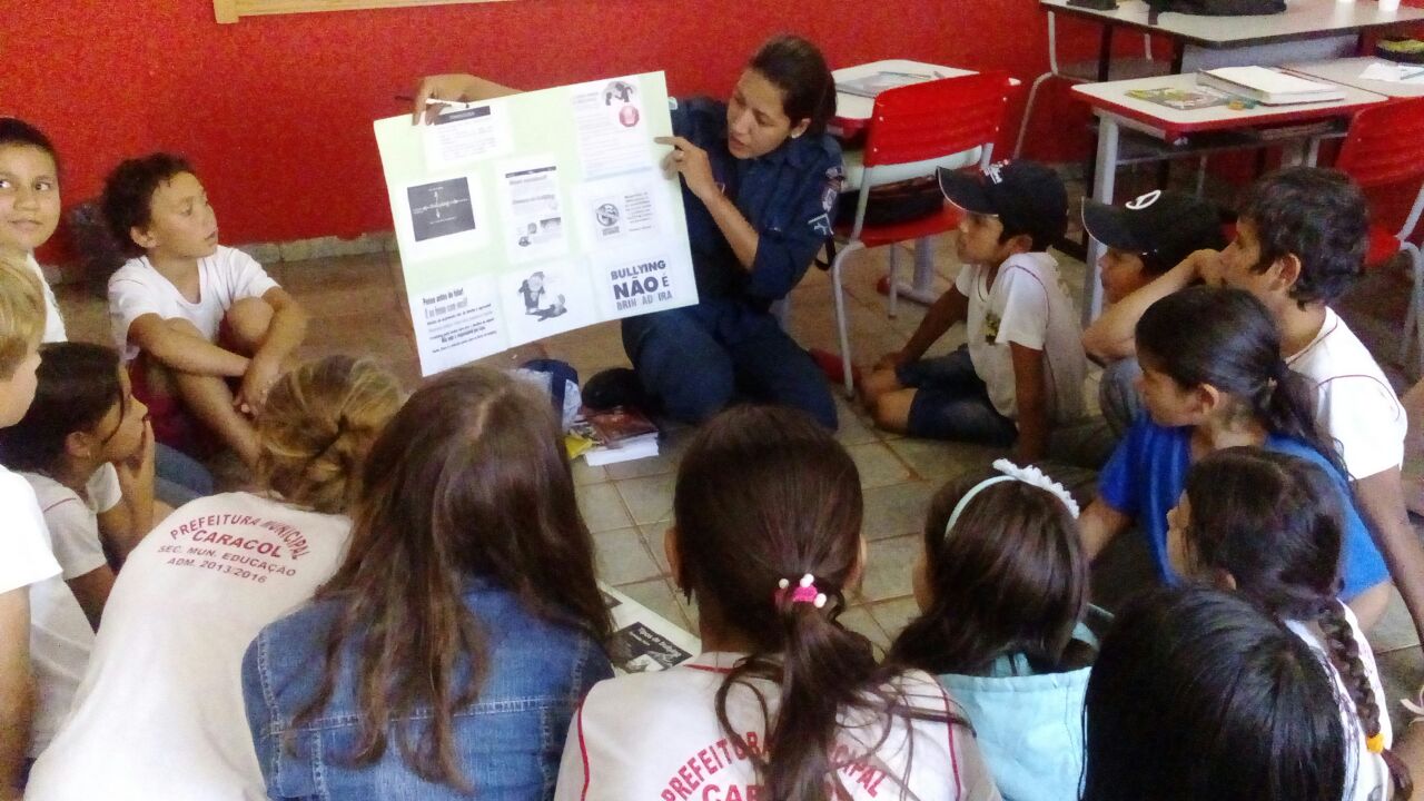 Jardim (MS) – A Soldado PM Cristina, instrutora do PROERD na Escola Rural Municipal Inácio S. Monteiro, ministrou uma palestra sobre Bullying, Cyberbullying e Crimes nas Redes Sociais para os alunos da escola.