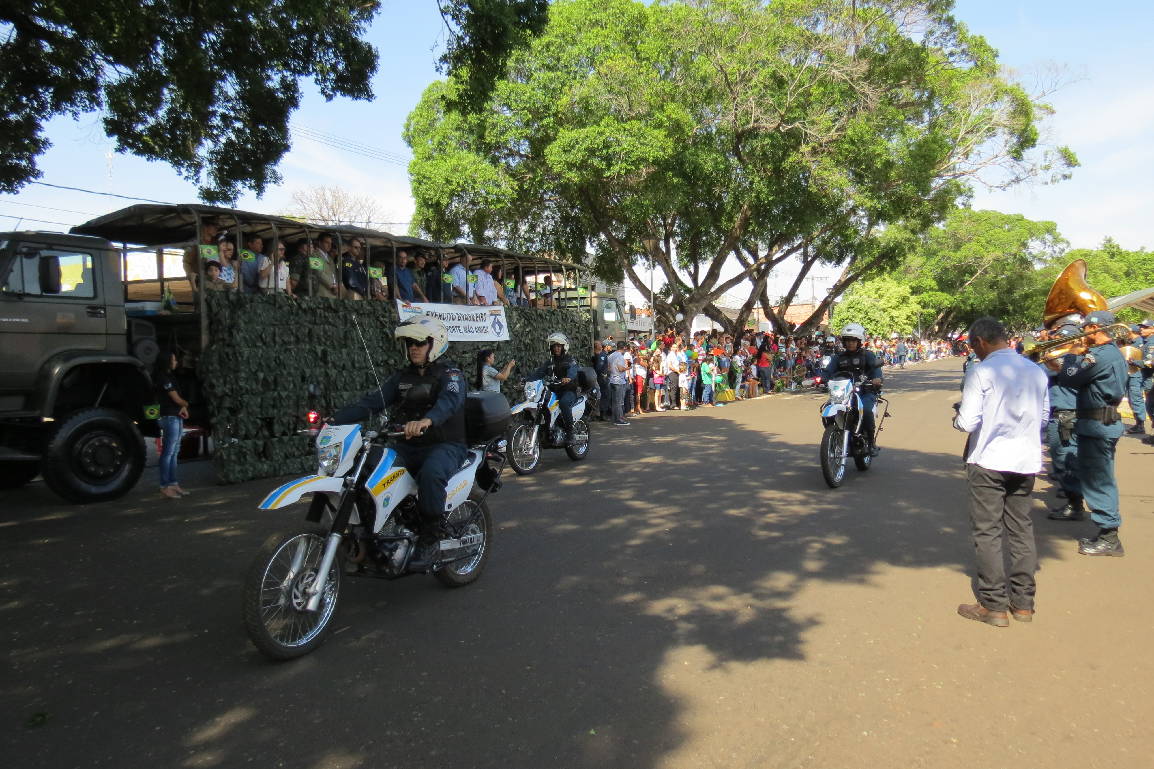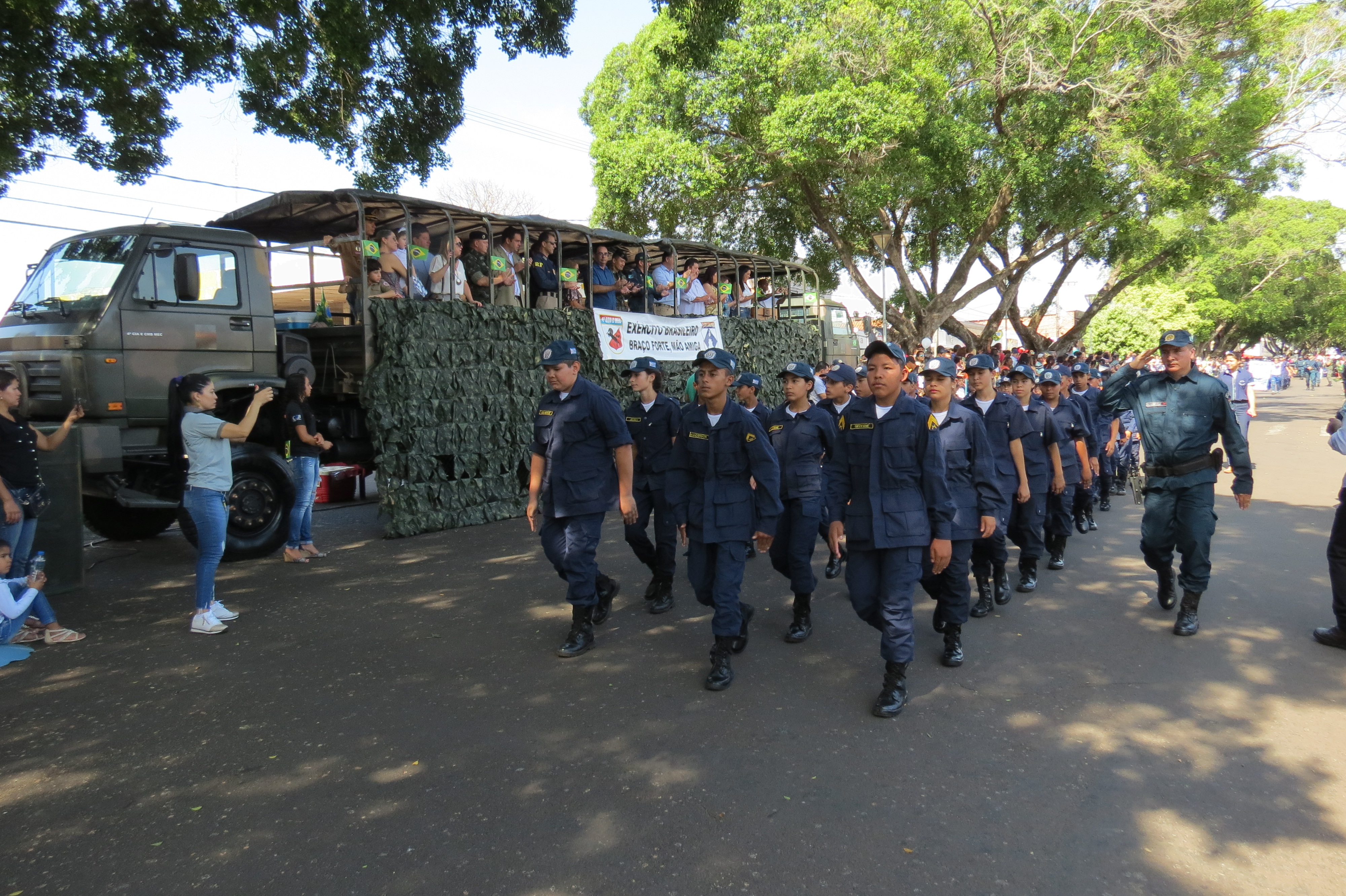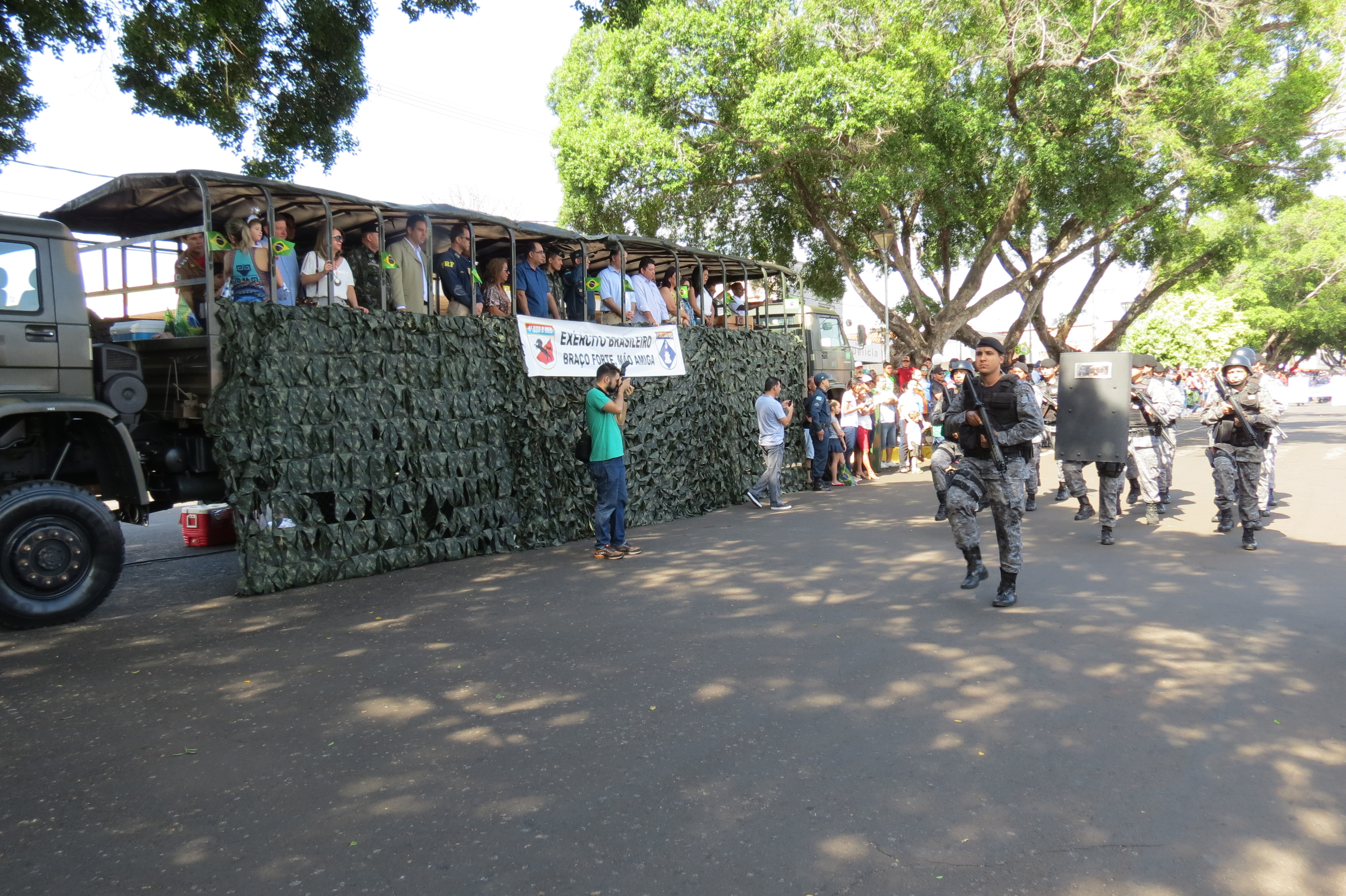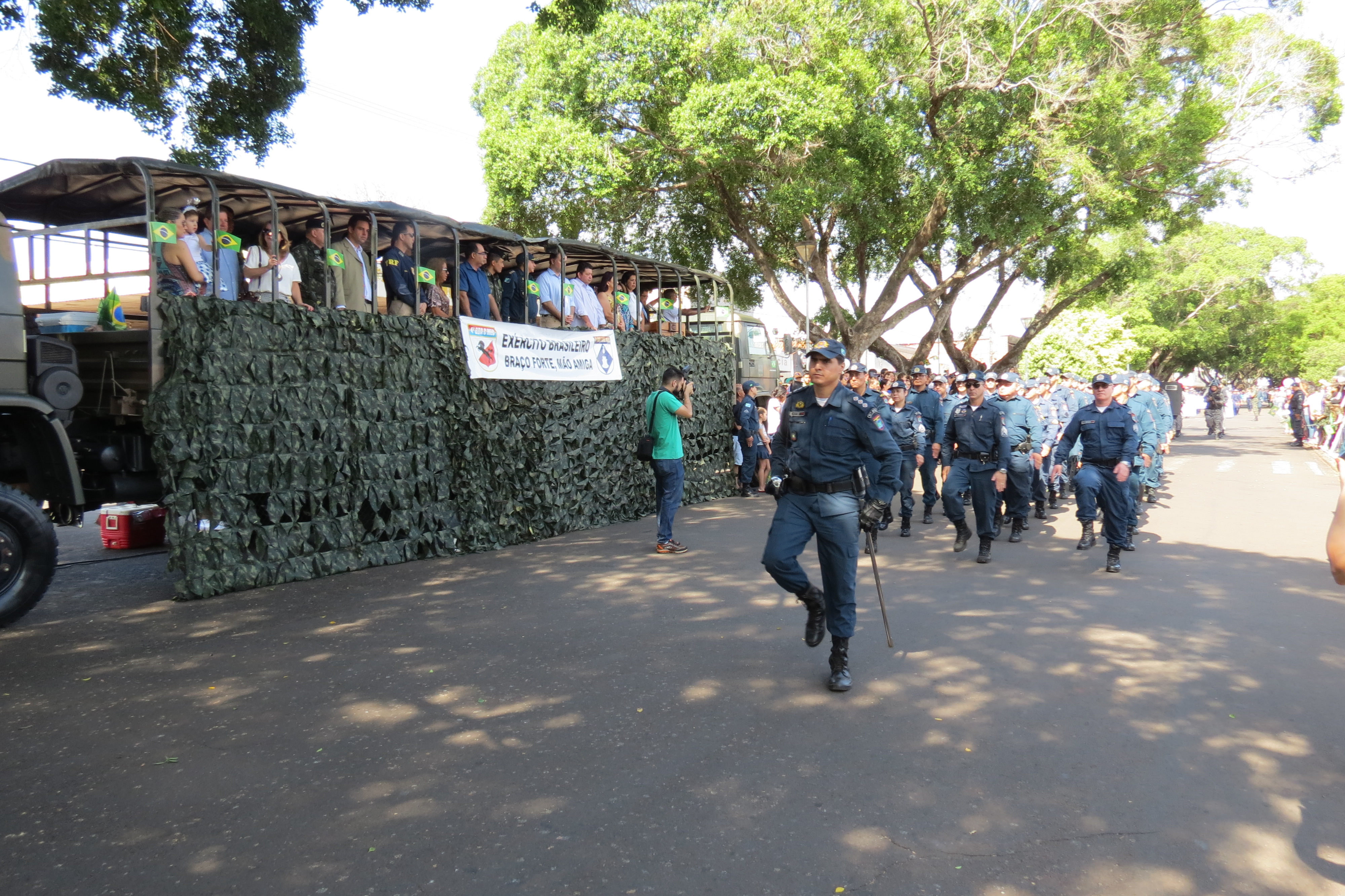 Durante todo o evento os Policiais Militares, além de garantir a segurança da cidade e do evento, desfilaram distribuídos em dois pelotões a pé e em viaturas (quatro e duas rodas). No evento os Policiais distribuíram bandeiras do Brasil aos presentes, como forma de evidenciar o patriotismo. Foi notório o contentamento e admiração dispensados pela população ao 11º BPM, que aplaudiram e tiraram diversas fotos da tropa.