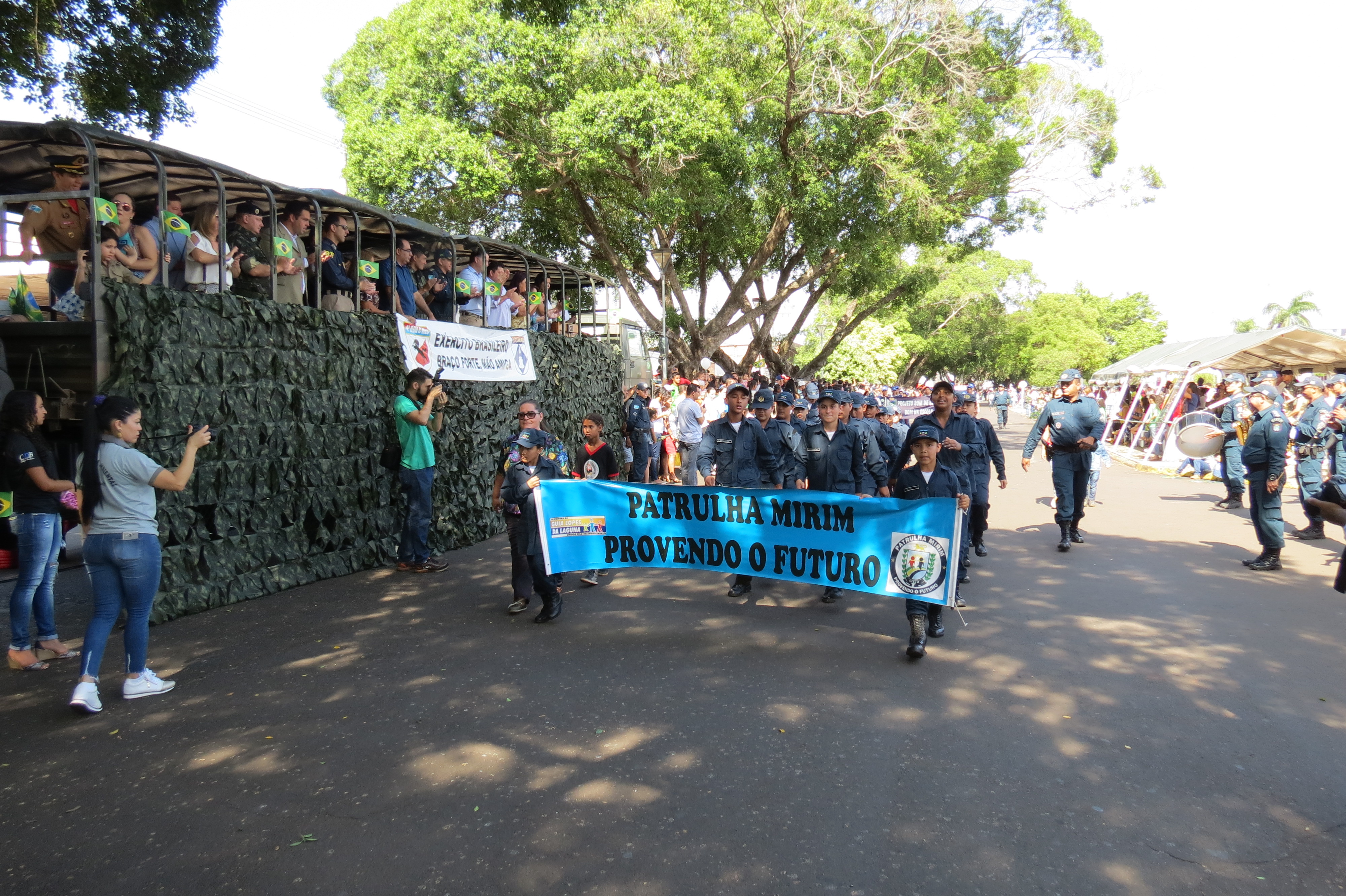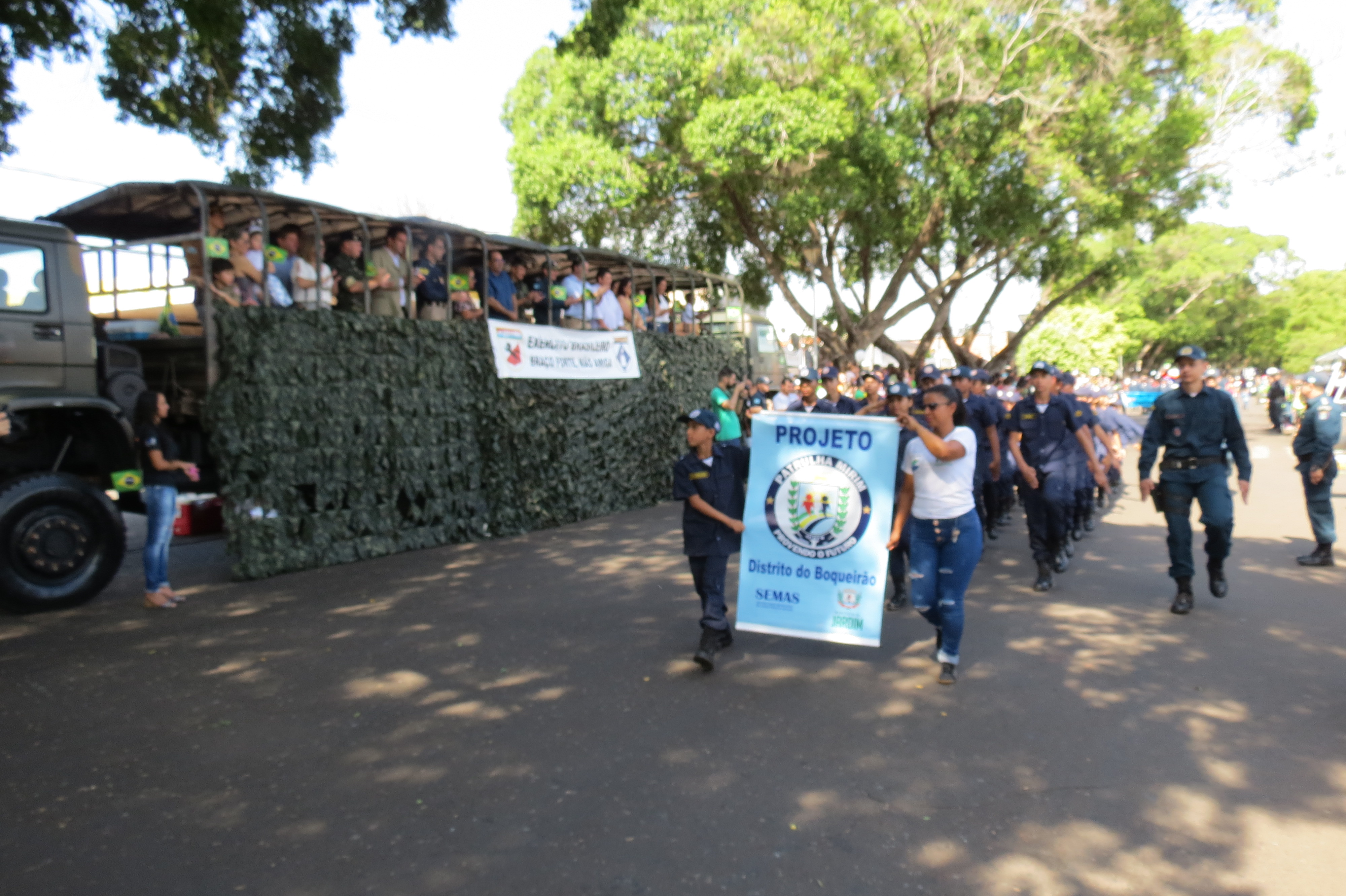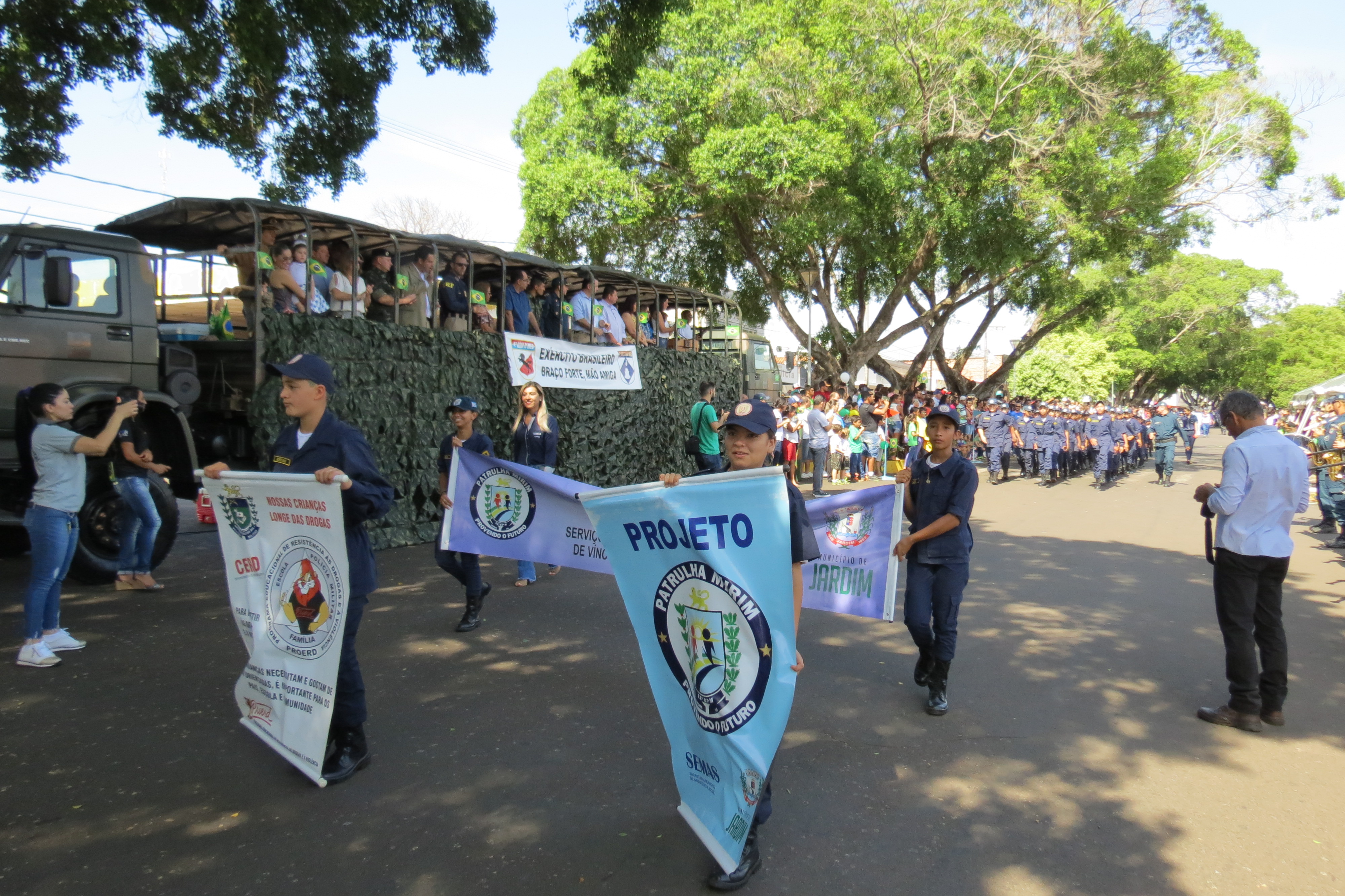 Houve, ainda, a participação dos alunos dos Projetos Sociais desenvolvidos pelo 11ºBPM (Patrulha Mirim, PROERD e Bom de Bola, Bom na Escola), além de outras entidades e instituições civis e militares.