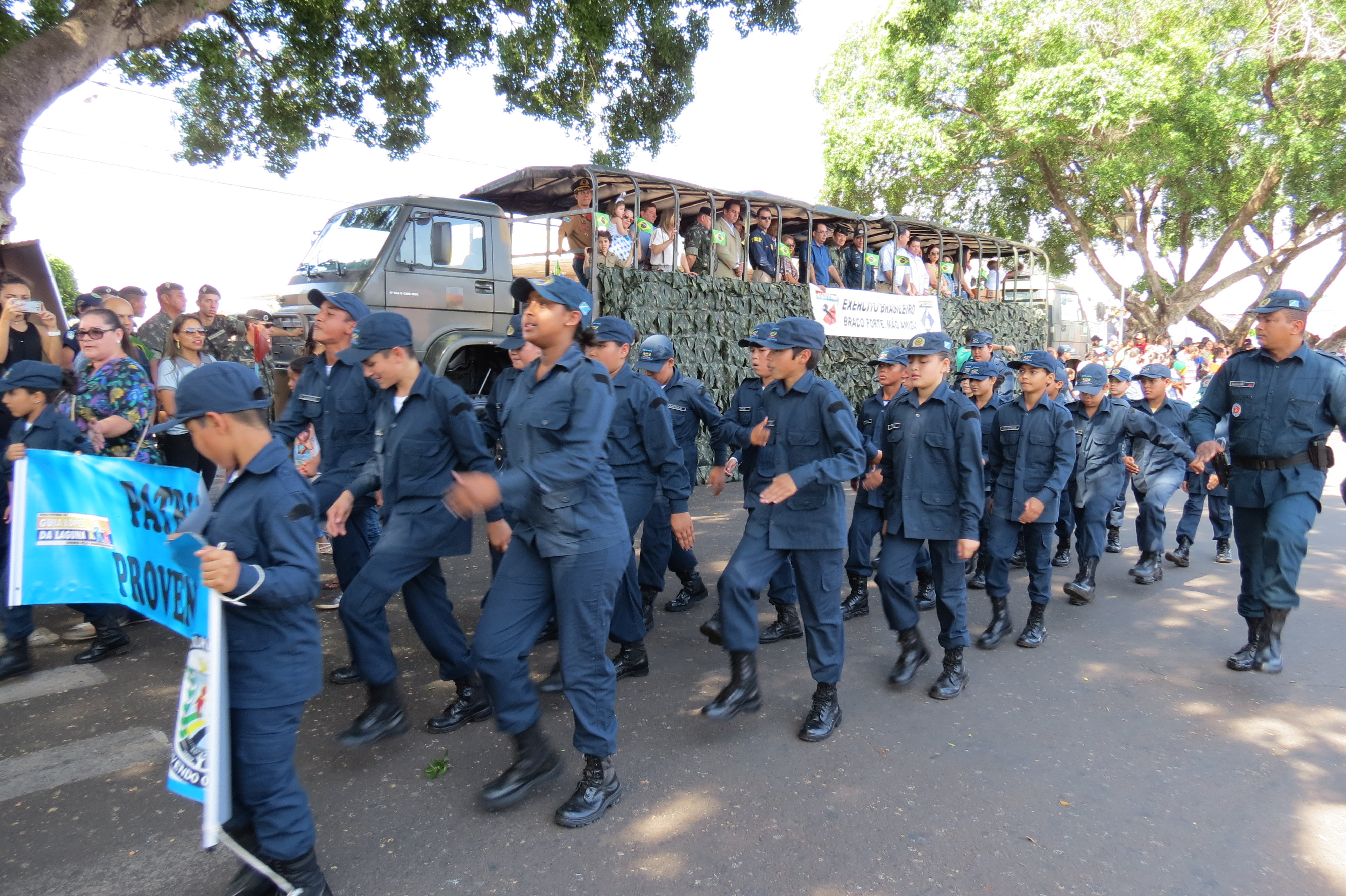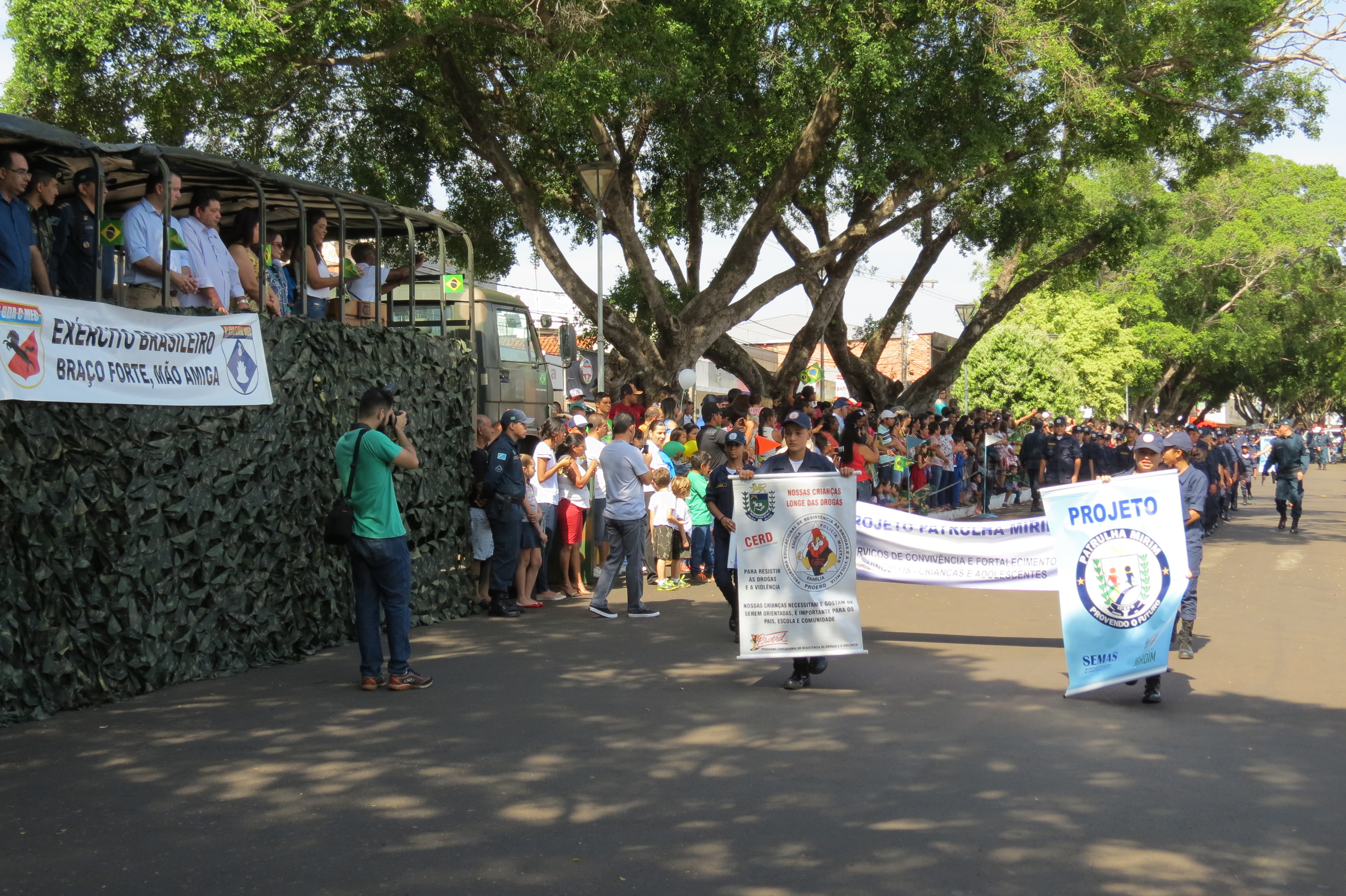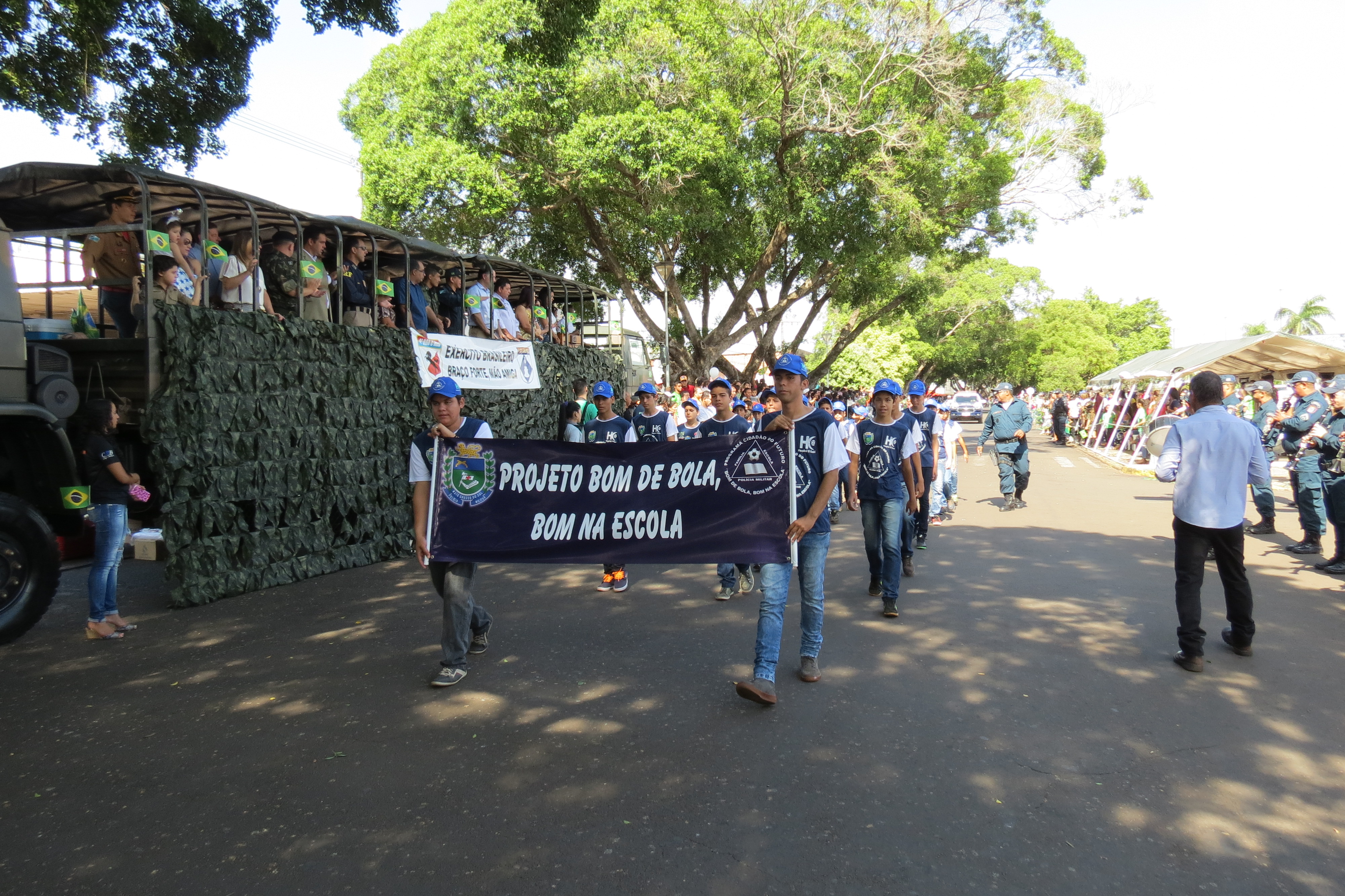 Houve, ainda, a participação dos alunos dos Projetos Sociais desenvolvidos pelo 11ºBPM (Patrulha Mirim, PROERD e Bom de Bola, Bom na Escola), além de outras entidades e instituições civis e militares.