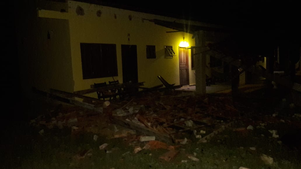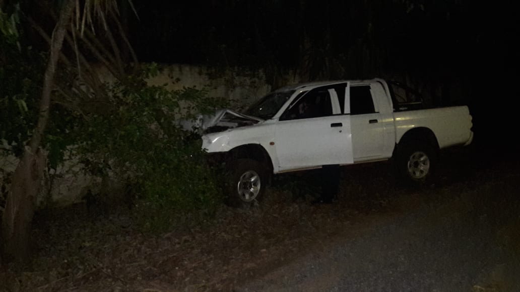 Bonito (MS) – Na madrugada dessa sexta-feira (11/01) por volta de 01h50min, a guarnição da Polícia Militar em Bonito foi atender a ocorrência em uma pousada da cidade, chegando ao local o  vigia da pousada disse  que o veículo L200 de cor branca trafegava pela via e que também estava fazendo manobras perigosas como “zerinho” e “cavalo de pau” , em dado momento o veículo adentrou na área da pousada, derrubando parte do muro de proteção, os pilares e por fim a cobertura da varanda de alguns apartamentos vindo somente a parar quando chocou- se em uma árvore.