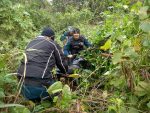 Em posse das informações, a guarnição deslocou em diligência até o local, onde foi constatada a veracidade dos fatos, localizando a moto em meio a vegetação. Ao ver os policiais no local, uma testemunha se aproximou e relatou que viu quando três indivíduos adentraram o matagal empurrando a motocicleta, acionando a Polícia Militar em seguida.