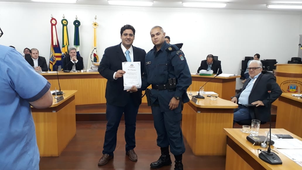 Nesta segunda-feira (18) os policiais militares CB Bonfim, SD Aragon, SD Asseff e SD Tairone, foram agraciados com a Moção de Congratulação de iniciativa do vereador e presidente da Câmara, Sr. Evander José Vendramini Duran, pelo Ato de Bravura desempenhado na ocasião da ameaça a vida de terceiros.